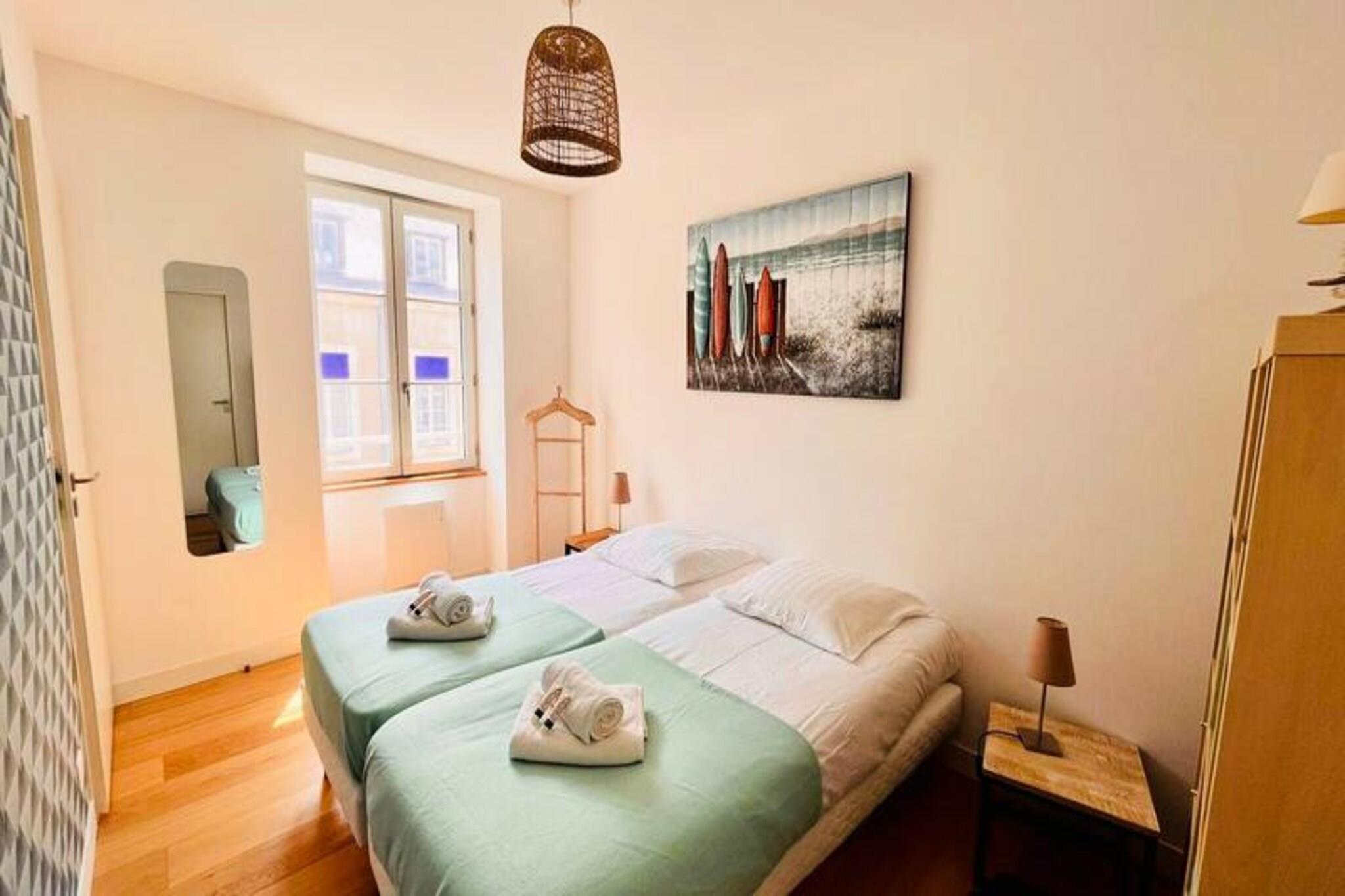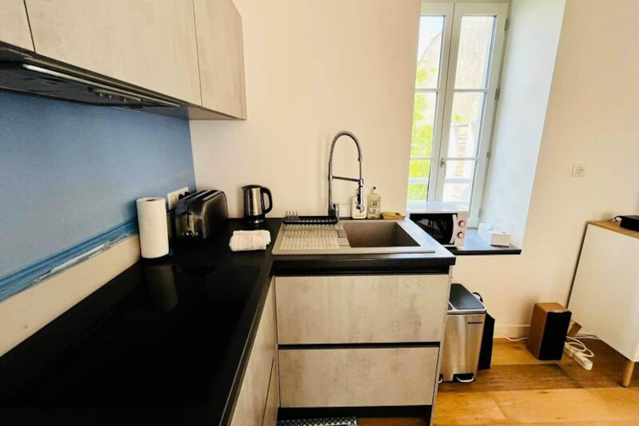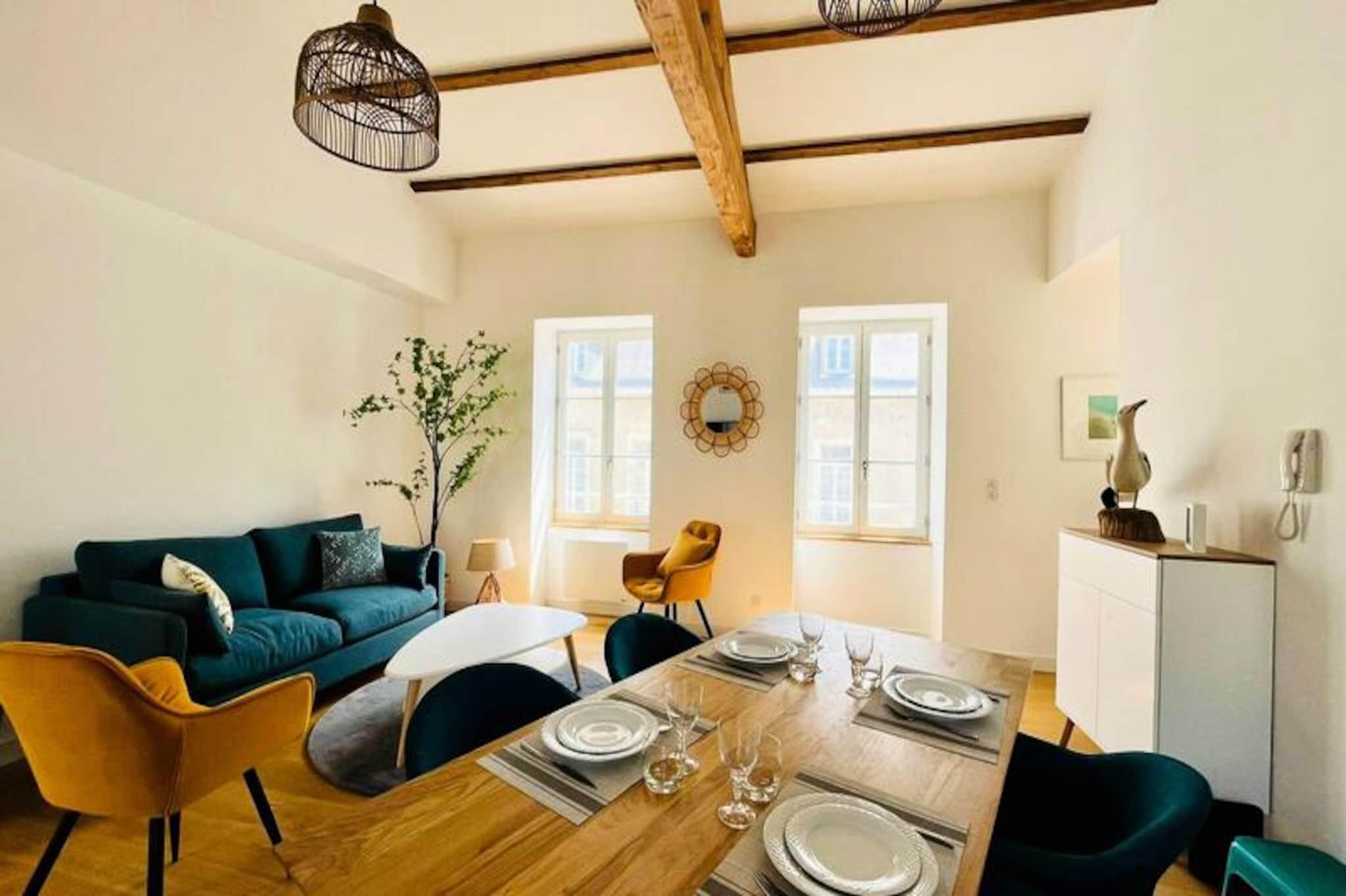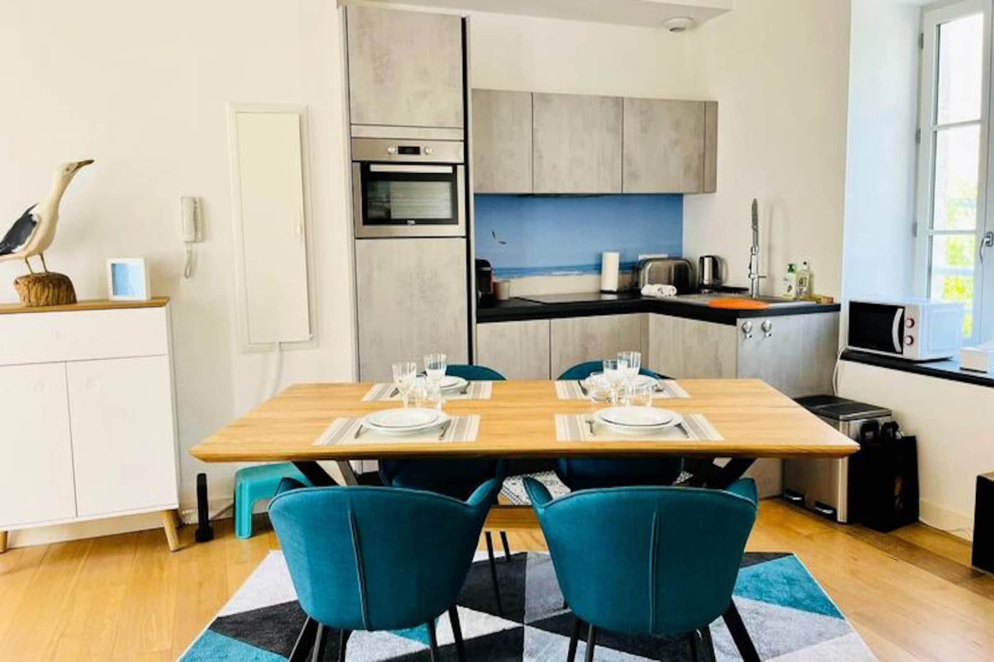 Fordyb dig i La Rochelles pulserende charme med et ophold i denne smukt renoverede lejlighed med to soveværelser, perfekt beliggende i hjertet af byen. Beliggende på anden og øverste sal i en lille ejerlejlighed, tilbyder dette fredelige tilflugtssted en dejlig blanding af moderne komfort og autentisk lokal atmosfære. Uanset om du udforsker brostensbelagte gader, forkæler dig selv med frisk fisk og skaldyr ved den gamle havn eller blot slapper af på din private terrasse, er denne lejlighed din port til en mindeværdig fransk ferie. Lejligheden er designet til at rumme op til fire gæster og har to rummelige soveværelser. Det første kan prale af en luksuriøs queensize-seng, mens det andet tilbyder to enkeltsenge, der kan sættes sammen til en anden queensize-seng efter anmodning. Et sammenhængende badeværelse med bruser, et separat toilet og en hyggelig stue udstyret med tv og Wi-Fi sikrer alle hjemmets bekvemmeligheder. Det åbne køkken er fuldt udstyret med moderne apparater, herunder køleskab, ovn, mikrobølgeovn, Nespresso-maskine og endda en vaskemaskine, hvilket gør det ideelt til længere ophold eller familieferier. Træd udenfor, og du vil befinder dig kun to minutters gang fra det travle Centrale Marked, fem minutters gåtur fra den maleriske gamle havn og inden for rækkevidde af togstationen og parkeringsfaciliteter. Ile de Ré, med sine fantastiske strande og maleriske landsbyer, ligger kun 15 minutters kørsel væk og tilbyder uendelige muligheder for udforskning. Med sin uovertrufne beliggenhed, gennemtænkte faciliteter og den personlige assistance fra Aloha Concierge Service er denne lejlighed det perfekte valg for rejsende, der søger en problemfri blanding af afslapning og eventyr i hjertet af La Rochelle. Lad charmen i denne kystby fortrylle dig, mens du skaber uforglemmelige minder i dette indbydende hjem væk fra hjemmet.