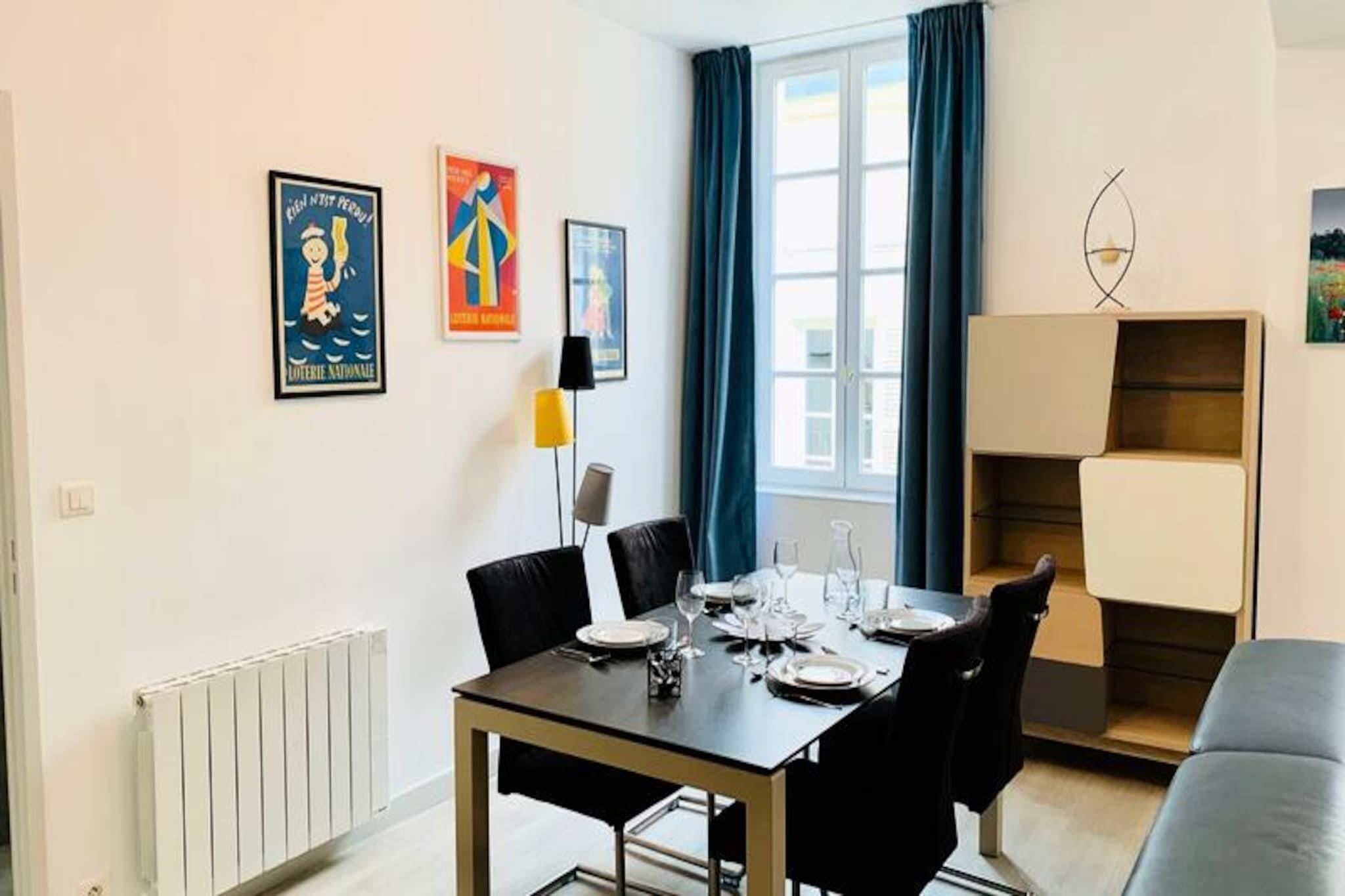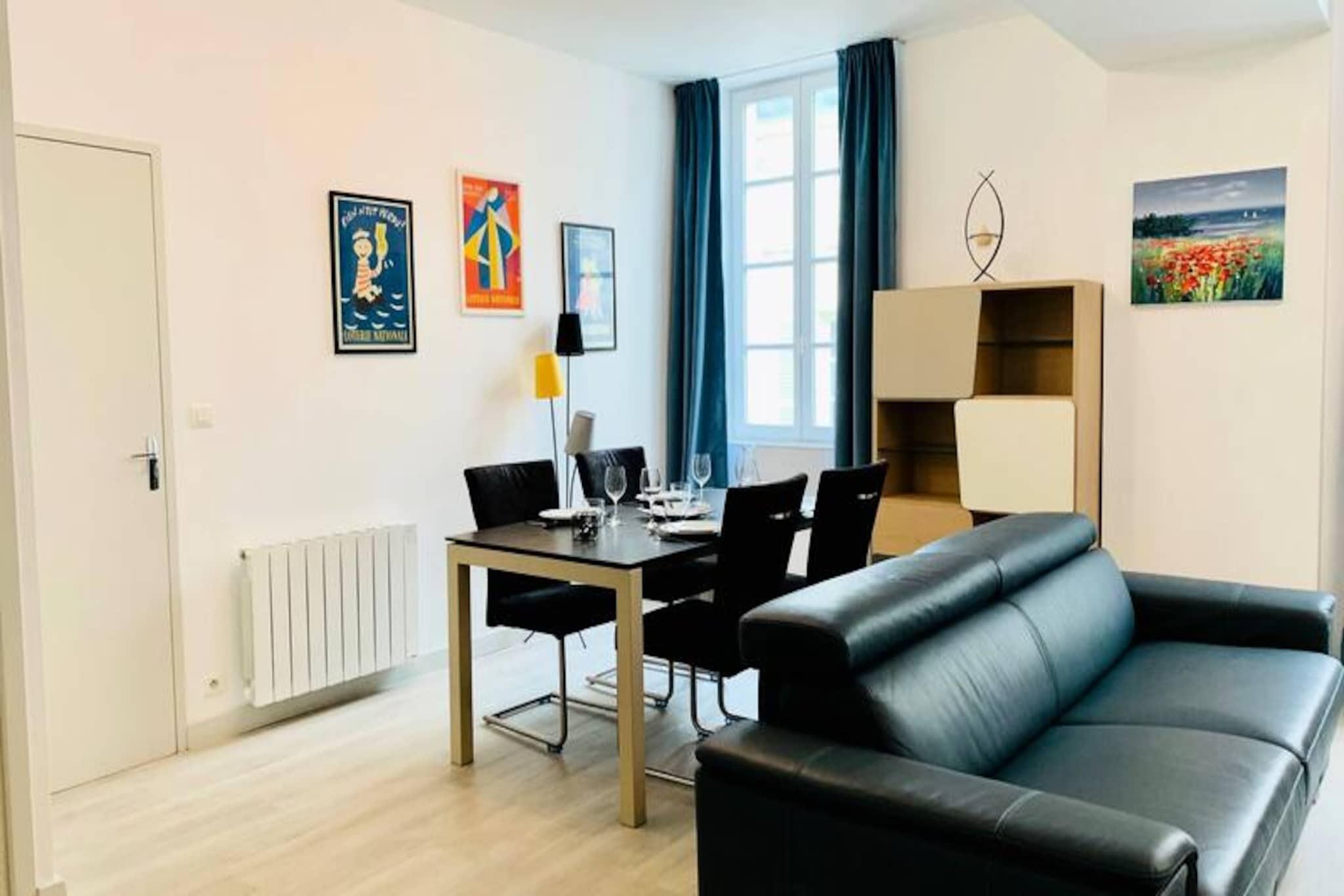 I hjertet af La Rochelles historiske distrikt inviterer denne smukt renoverede lejlighed med et soveværelse dig til at opleve charmen og livligheden i denne kystperle. Fra det øjeblik du ankommer, sætter den livlige atmosfære på det centrale marked og de omkringliggende arkader tonen for et uforglemmeligt ophold. Uanset om du planlægger en romantisk retreat, en familieferie eller en tur med vennerne, tilbyder denne lejlighed den perfekte blanding af komfort og bekvemmelighed. Træd indenfor og oplev et gennemtænkt designet rum, der kombinerer moderne bekvemmeligheder med tidløs elegance. Stuen åbner problemfrit op i spisestuen og køkkenområdet og skaber et varmt og indbydende miljø. Det fuldt udstyrede køkken har alt, hvad du behøver, fra køleskab og ovn til Nespresso-kaffemaskine og elkedel. Det separate soveværelse kan prale af en hyggelig dobbeltseng, mens sovesofaen i stuen giver ekstra soveplads. Badeværelset er udstyret med badekar, håndvask og toilet, hvilket sikrer en afslappende afslutning på din dag. Et spisekammer med opvaskemaskine, vaskemaskine og tørretumbler bidrager til lejlighedens praktiske egenskaber. Denne lejlighed ligger på første sal i en gågadebygning og ligger få skridt fra byens bedste attraktioner. Gå en tur til den gamle havn, kun 500 meter væk, hvor du kan tage på bådture til nærliggende øer. Udforsk det pulserende markedskvarter, kendt for sin autentiske charme, travle restauranter og unikke butikker. For dem, der ønsker at udforske området, tilbyder Place de Verdun, kun 200 meter væk, busforbindelser til Île de Ré og cykeludlejning til naturskønne ture. Med privat parkering i nærheden og Aloha Concierge Service, der er klar til at hjælpe dig under hele dit ophold, sikrer denne lejlighed en stressfri og mindeværdig ferie. Fordyb dig i La Rochelles skønhed og kultur, hvor hvert hjørne afslører en ny historie, der venter på at blive opdaget.