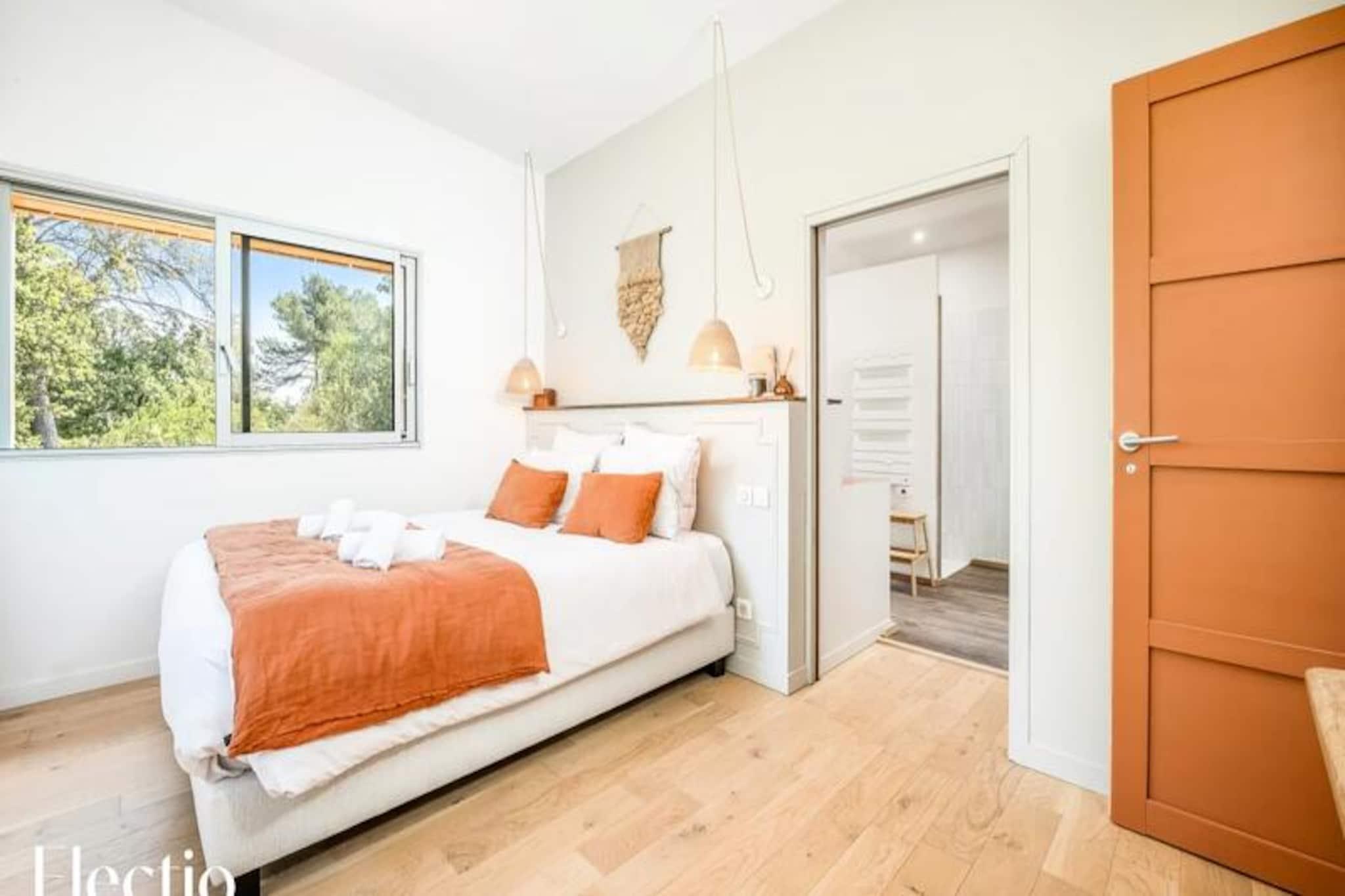 Beliggende på de fredfyldte bakker over La Roque d'Anthéron tilbyder La Cabane d'Ismou et idyllisk tilflugtssted, hvor provencalsk charme møder moderne komfort. Denne 150 m² store træhytte, omgivet af middelhavshaver, inviterer dig til at slappe af og genoprette forbindelsen til naturen. Med sin private swimmingpool, skyggefulde terrasse og nærhed til den berømte Internationale Klaverfestival er det et paradis for både afslapnings- og kulturelskere. Uanset om du nipper til kaffe under træerne eller nyder en udendørs spisning ved poolen, er hvert øjeblik her fyldt med Luberon-regionens rolige skønhed. Indenfor kan hytten prale af tre elegant designede soveværelser med plads til op til seks gæster. Stueetagen har en lys stue med store karnapvinduer, der udvisker grænsen mellem inde og ude, mens en pilleovn tilføjer et hyggeligt præg til vinteraftener. Det åbne køkken, udsmykket med håndmalede keramiske fliser, er fuldt udstyret til kulinariske eventyr, fra induktionskogeplade til elegant service. Soveværelset i stueetagen tilbyder direkte adgang til terrassen og et privat badeværelse med zellige-fliser og bruseniche. Ovenpå tilbyder to ekstra soveværelser og et arbejdsområde med en fantastisk udsigt både komfort og inspiration. La Roque d'Anthéron, en malerisk landsby beliggende ved Durance-floden, ligger kun en kort gåtur væk. Gå en tur i de charmerende gader, oplev kunsthåndværkerbutikker og nyd lokale delikatesser på hyggelige caféer. Det nærliggende Silvacane-kloster er vært for den internationale klaverfestival hver sommer, hvilket tilføjer et strejf af musikalsk magi til dit ophold. For friluftsentusiaster tilbyder Luberon-bjergene endeløse vandre- og cykelstier, mens de omkringliggende lavendelmarker og vinmarker lover uforglemmelige provencalske udsigter. Book dit ophold på La Cabane d'Ismou og fordyb dig i kunsten at leve middelhavsagtigt, hvor hver eneste detalje er omhyggeligt udvalgt for at skabe en virkelig uforglemmelig oplevelse.