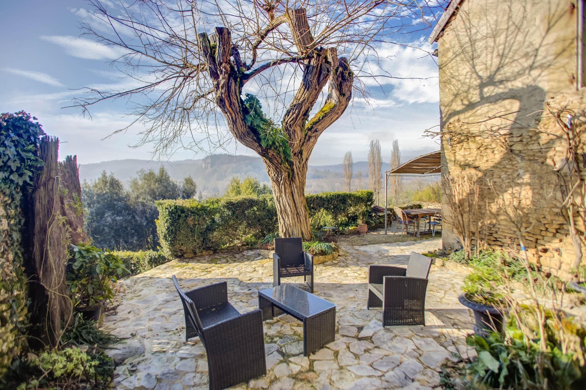 Dette feriehus kan med rette kaldes "Den Gyldne Trekant i Périgord Noir", fordi det byder på en enestående udsigt over Dordogne-dalen og slottet Castelnaud. Udsigten over luftballonturen er betagende herfra! Det er ideelt til ferie med familie og venner og har have, parkering og et dejligt område med smukke slotte. Besøg det berømte Chateau de Castelnaud og Chateau de Beynac og bliv overrasket. De karakteristiske Jardins de Marqueyssac er blændende smukke, og et besøg på Walnut Ecomuseum og AirParc Périgord er også det værd. Der er masser af hyggelige restauranter i umiddelbar nærhed.Feriehuset har en elegant og raffineret indretning. Fyr op for grillen til en hyggelig aften fuld af grillede delikatesser eller tilbered dine yndlingsretter i det veludstyrede køkken. Du kan slutte dagen af med et godt glas vin på terrassen.