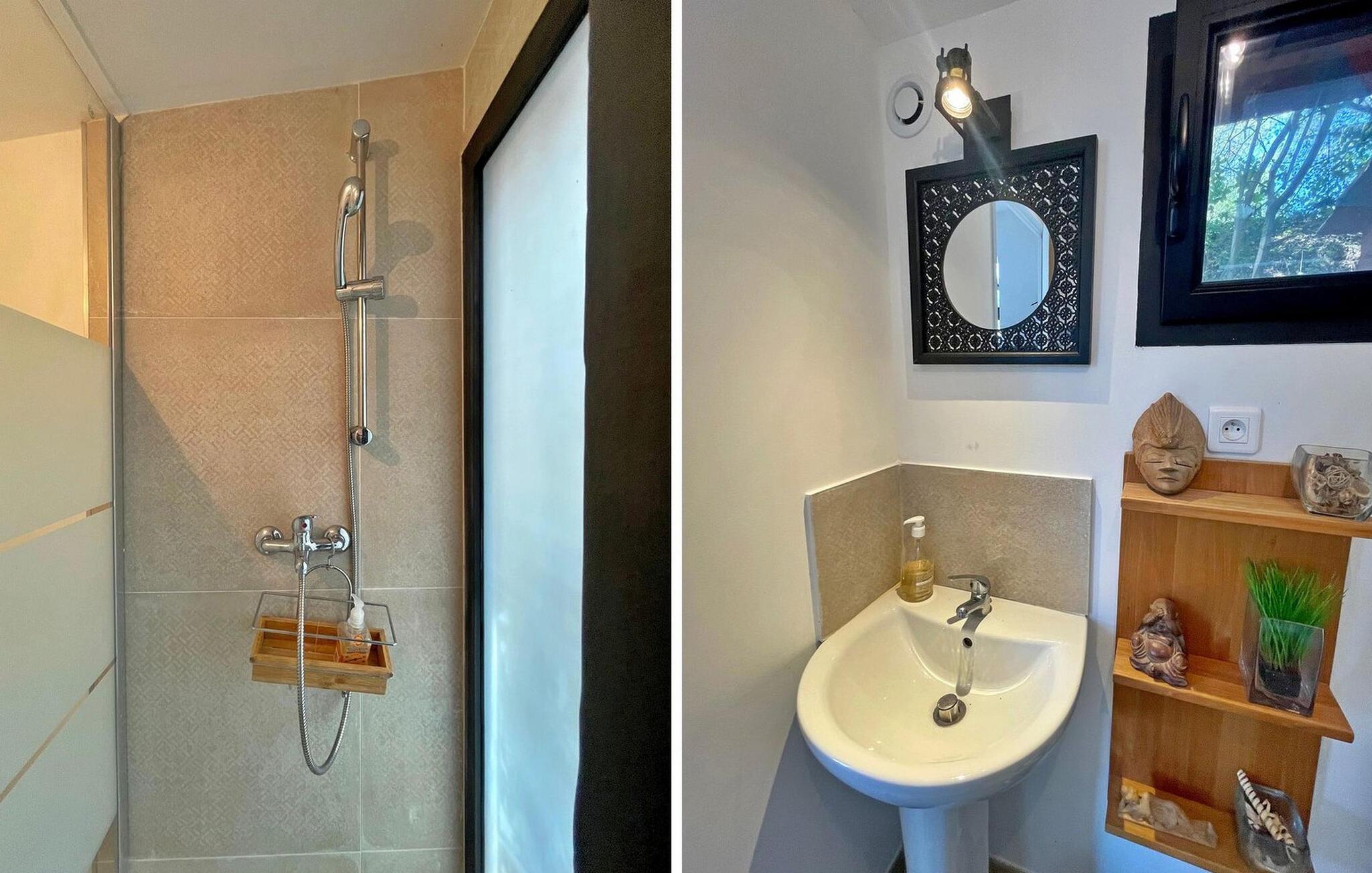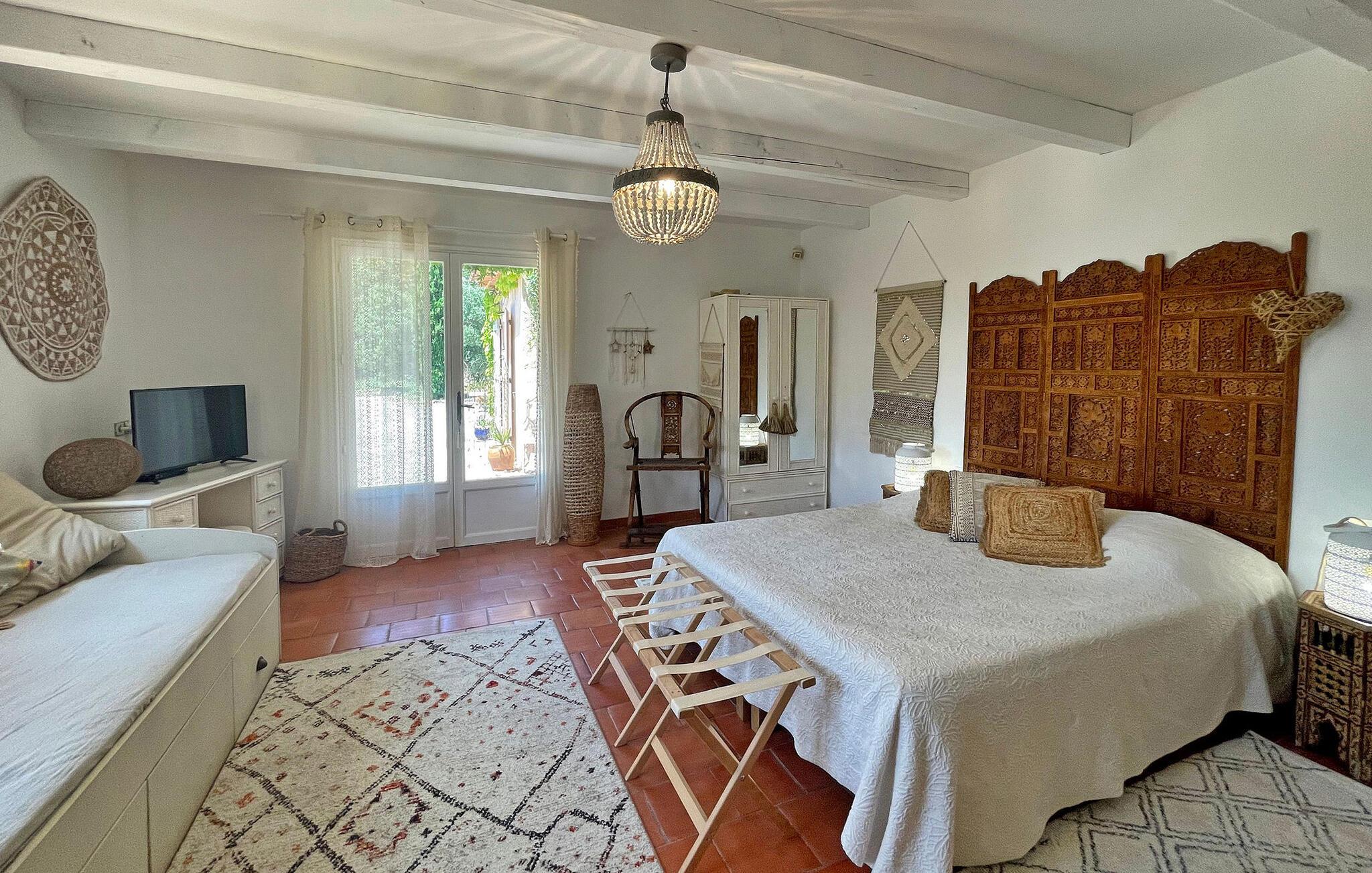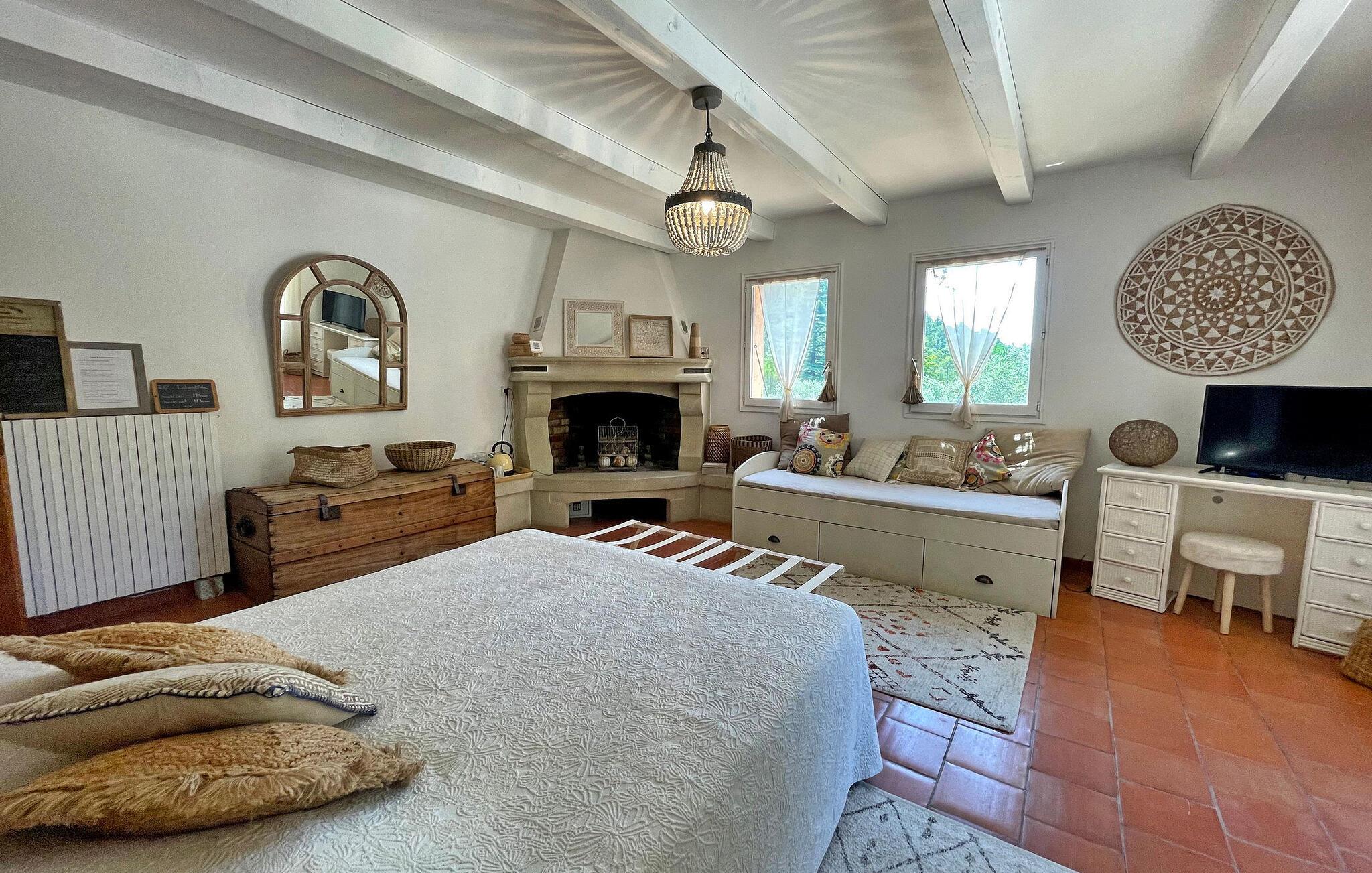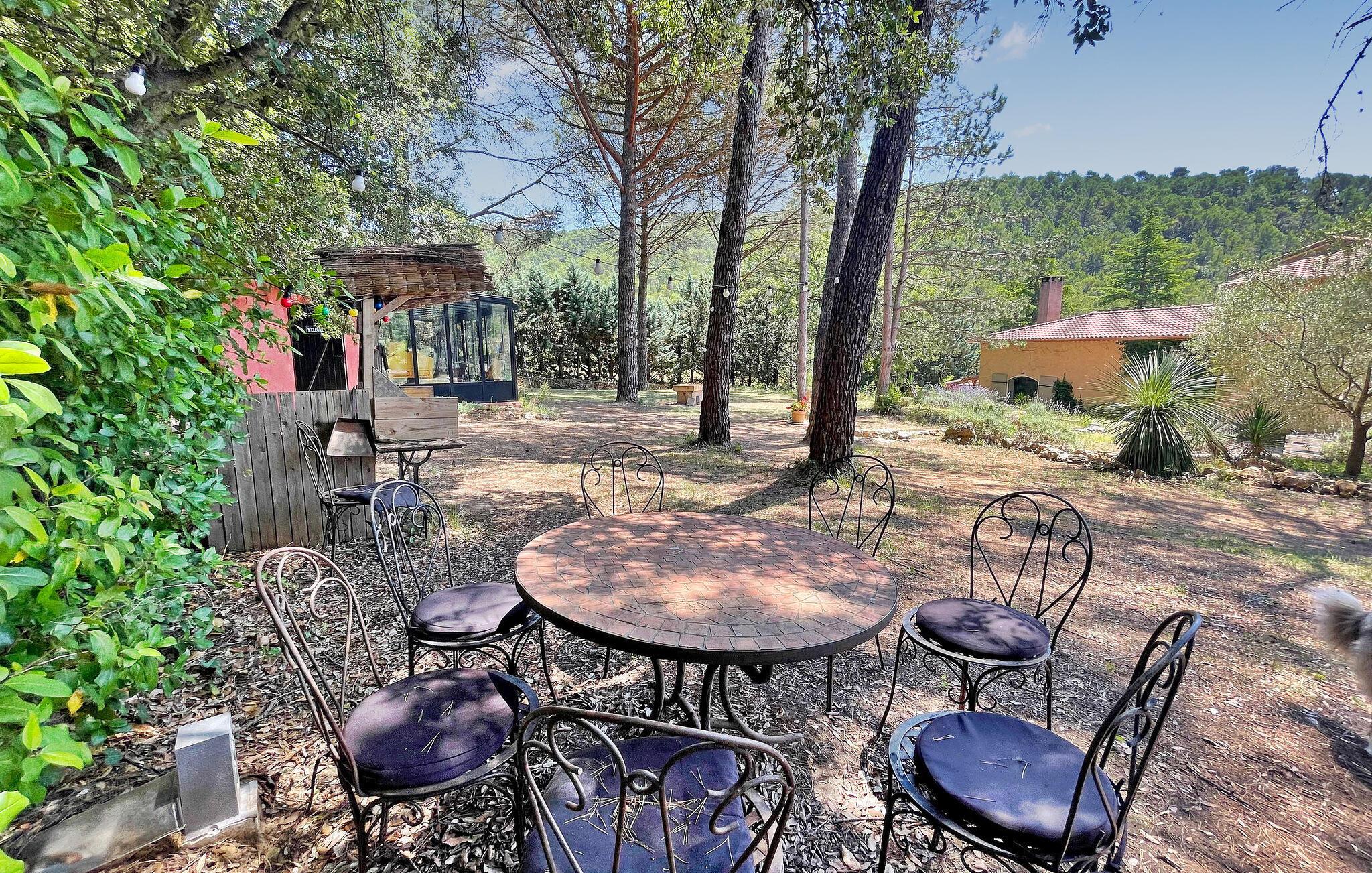 Inde i feriehuset finder I en rummelig opholdsstue med aircondition og et køkken med udsigt over den flotte grund med dens olivenlunde. Takket være den unikke indretning er de tre soveværelser i stueetagen tilgængelige fra haven. Stuehuset er en lille oase af fred i hjertet af naturparken Sainte-Baume, 1 km fra centrum af landsbyen La Roquebrussanne, hvor I kan købe ind i de lokale butikker. Med sin beliggenhed midt i den smukke natur er huset kun tilgængeligt via en lang grusvej (ikke egnet til lave biler), og det er virkelig et fredeligt og afslappende tilflugtssted væk fra hverdagens stress og jag.