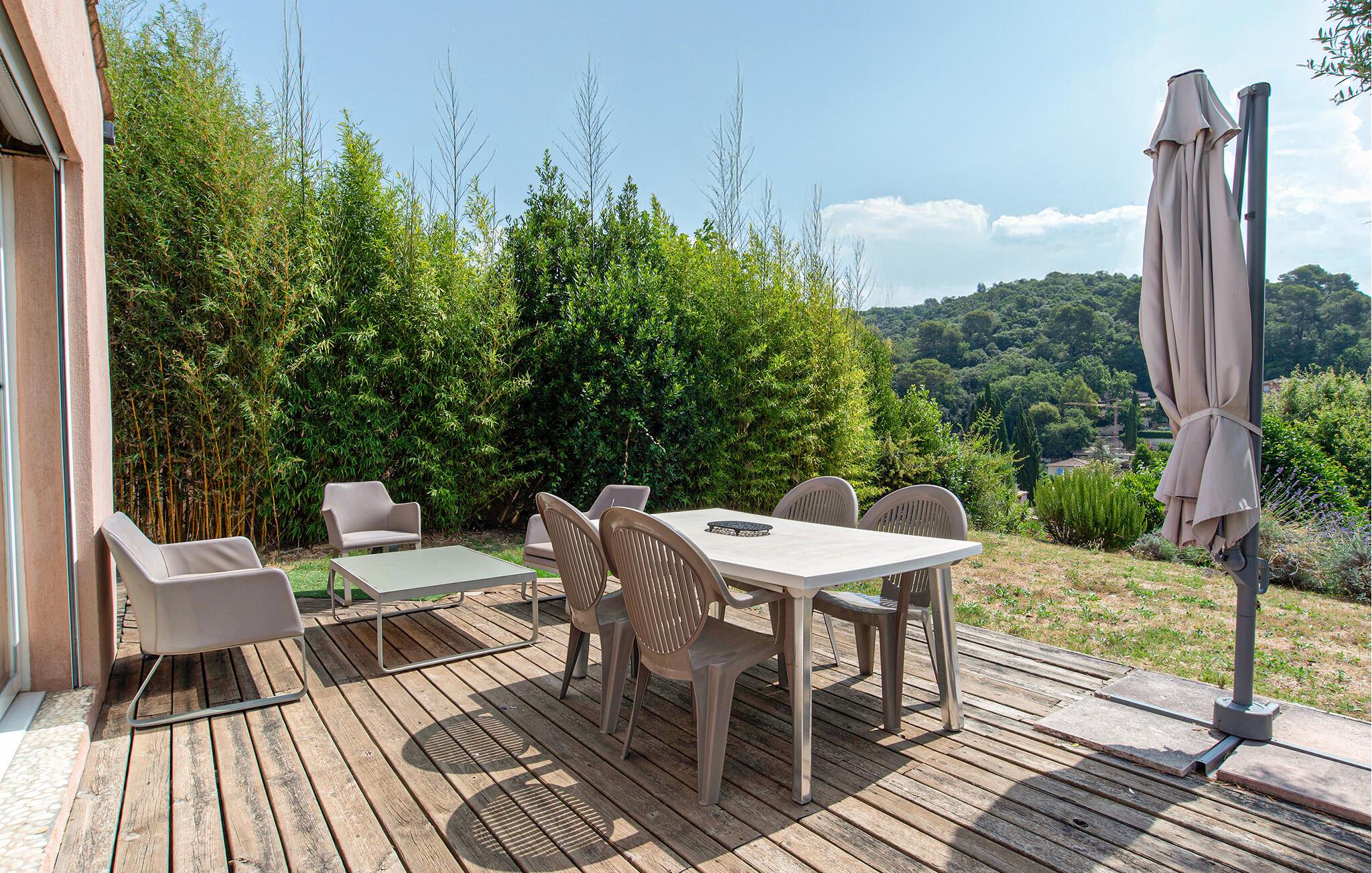 Dette charmerende studie er det ideelle sted at flygte fra hverdagen og nyde afslappende dage på Côte d'Azur i intimt selskab. Nyd jeres måltider i den lyse og velindrettede opholdsstue, tryll lækre retter frem med friske råvarer fra markedet, og snak over et glas vin, mens I beundrer det maleriske landskab.