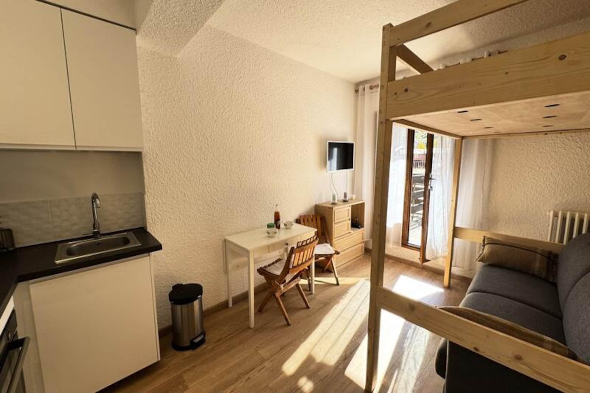 I de franske alpers fredfyldte omfavnelse tilbyder dette charmerende studie et roligt tilflugtssted for to, perfekt til dem, der søger en fredelig flugt midt i naturens skønhed. Ejendommen ligger i et roligt kvarter med hyggelige boliger og hytter, kun en kort gåtur på 500 meter fra Pontillas-svævebanen, hvilket giver nem adgang til regionens uberørte pister. Med en landsbybus, der stopper lige ved boligen, bliver det nemt at udforske nærliggende landsbyer og skiområder, så du fuldt ud kan fordybe dig i den alpine livsstil. Træd indenfor i dette hyggelige studie på 20 m², og føl dig straks hjemme. Rummet er omhyggeligt designet med et veludstyret tekøkken med køleskab, induktionskogeplade, mikrobølgeovn og Electrolux-ovn, hvilket gør det nemt at tilberede dine yndlingsmåltider. Opholdsstuen, komplet med en komfortabel sofa, inviterer dig til at slappe af efter en dag med eventyr, mens brusebadet med toilet sikrer, at alle de nødvendige ting er lige ved hånden. Store vinduer indrammer den maleriske bjergudsigt og skaber en rolig kulisse for din alpine ferie. Kun fem minutters gang væk finder du lokale butikker og faciliteter, perfekt til at købe de nødvendige ting eller nyde en afslappet spadseretur gennem landsbyen. Den nærliggende Pontillas-svævebane åbner op for en verden af ??skiløbs- og vandreture, mens det omkringliggende område tilbyder et væld af udendørsaktiviteter, der passer til enhver sæson. Uanset om du er her for at grave dig gennem frisk puddersne eller udforske frodige sommerstier, er denne beliggenhed den ideelle base for dine eventyr. Med sine fredelige omgivelser, nem adgang til vigtige faciliteter og hyggelige atmosfære er dette studie et dejligt valg for par eller solorejsende, der ønsker at slappe af og genoprette forbindelsen til naturen. Lad de majestætiske tinder og den friske alpine luft forynge din ånd, mens du skaber varige minder i dette idylliske bjergparadis.