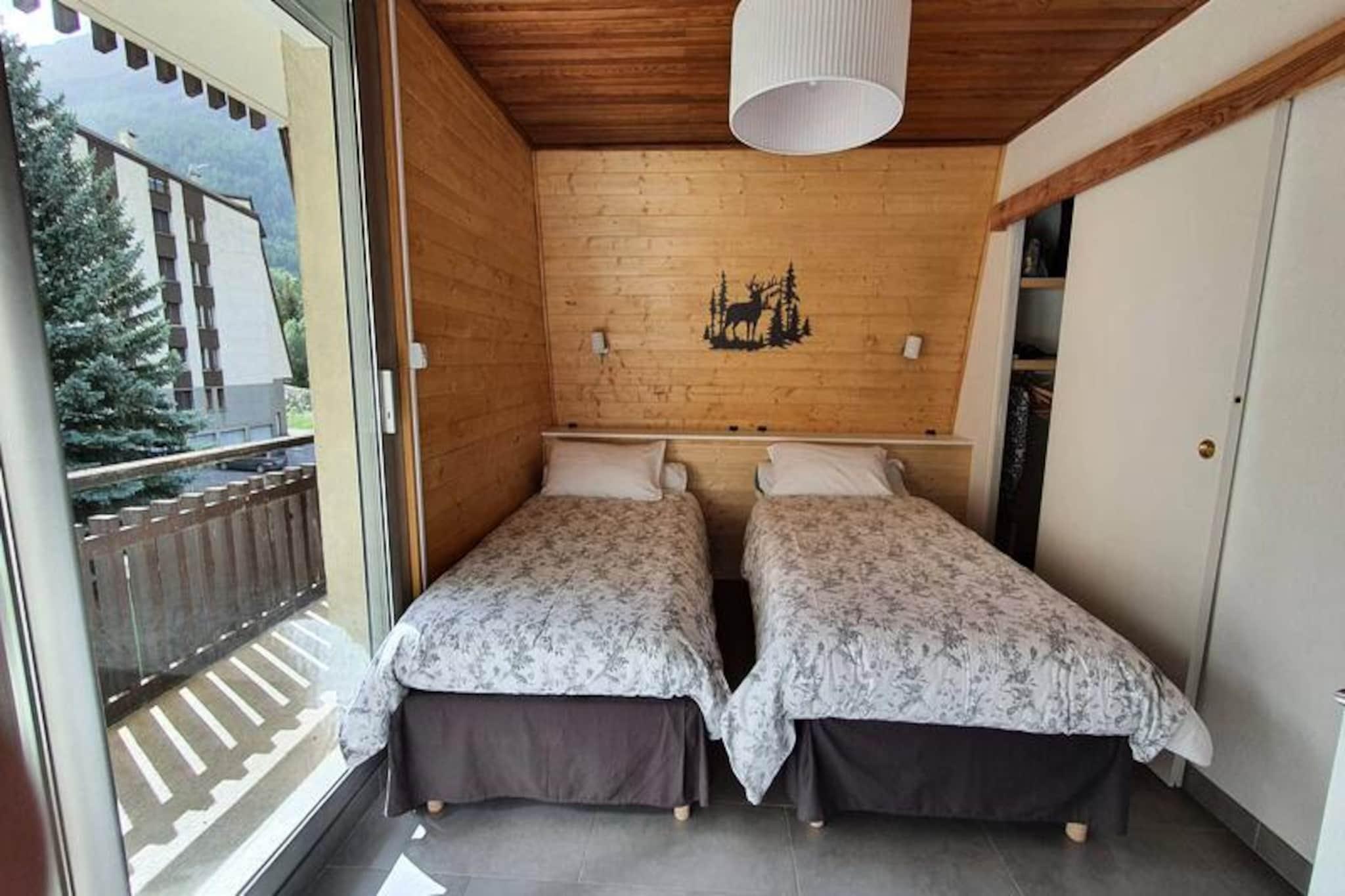 I hjertet af det charmerende Villeneuve-resort i La Salle les Alpes tilbyder denne smukt renoverede lejlighed et hyggeligt tilflugtssted for op til fire gæster. Forestil dig at vågne op til det fredfyldte syn af snedækkede pister lige uden for din terrasse, med resortets pulserende energi lige uden for døren. Uanset om du er her for spændende skieventyr eller en fredelig alpin flugt, blander denne bolig perfekt komfort og bekvemmelighed. \n\nTræd indenfor for at opdage et gennemtænkt designet rum på 58 m² med en varm og indbydende stue med sovesofa og tv, perfekt til afslapning efter en dag på pisterne. Det fuldt udstyrede tekøkken med induktionskogeplade, køleskab, opvaskemaskine, miniovn og mikrobølgeovn gør madlavning til en leg. Soveværelset med to alsidige enkeltsenge, der kan sættes sammen, tilbyder en afslappende oase, mens omklædningsrummet tilføjer et strejf af praktisk anvendelighed. Et moderne brusebad og separat toilet fuldender planløsningen og sikrer et behageligt ophold for alle.\n\nDenne lejlighed ligger kun 200 meter fra butikker og skilifter og placerer dig i hjertet af begivenhedernes centrum. Tilbring dine dage med at sno dig gennem de uberørte skråninger, udforske den charmerende landsby eller forkæl dig selv med lokal mad på nærliggende restauranter. Om sommeren forvandles området til et paradis for vandrere og naturelskere med betagende stier og alpine enge, der venter på at blive udforsket.\n\nUanset om du søger vinterspænding eller sommerro, er denne bolig i Villeneuve din port til uforglemmelige alpine minder. Med sin førsteklasses beliggenhed og hyggelige atmosfære er det det perfekte valg til en afslappende ferie i de franske alper.
