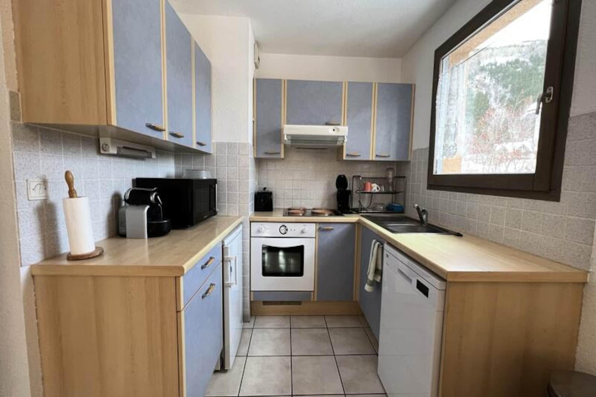 Ved kanten af ??en fredfyldt alpin flodbred tilbyder denne indbydende lejlighed et roligt tilflugtssted omgivet af de franske alpers majestætiske skønhed. Med sin sydvendte balkon kan gæsterne nyde uforstyrret udsigt over bjergene, mens de nyder naturens beroligende lyde. Ejendommen er perfekt beliggende i et fredeligt boligområde, kun 300 meter fra Pontillas-svævebanen, hvilket gør den til en ideel base for at udforske pisterne om vinteren eller de frodige stier og søer om sommeren. Uanset om du søger eventyr eller afslapning, tilbyder denne beliggenhed det bedste fra begge verdener. \n\nLejligheden er på 70 kvadratmeter og har komfortabel plads til op til otte gæster fordelt på tre gennemtænkt designede soveværelser. Stuen har en hyggelig sovesofa, mens det fuldt udstyrede køkken inkluderer moderne apparater såsom espressomaskine, opvaskemaskine og vaskemaskine/tørretumbler, hvilket sikrer alle hjemmets bekvemmeligheder. Indretningen inkluderer også et brusebad, et badeværelse og et separat toilet for ekstra bekvemmelighed. Gæsterne vil sætte pris på det private skirum og parkering på stedet, samt landsbyens shuttlebusnetværk, der stopper i nærheden for nem adgang til lokale attraktioner.\n\nUd over boligen kan området prale af en række aktiviteter, der passer til enhver sæson. Vintergæster kan nyde langrend, sneskovandring og den nærliggende indendørs swimmingpool, mens sommereventyrere kan udforske mountainbike-stier, Biotope naturreservat og den rolige sø. De charmerende landsbybutikker, kun 900 meter væk, tilbyder en smagsprøve på lokal kultur og gastronomi.\n\nUanset om du er tiltrukket af spændingen ved alpin sport eller naturens ro, lover denne lejlighed en uforglemmelig ferieoplevelse i hjertet af Alperne.