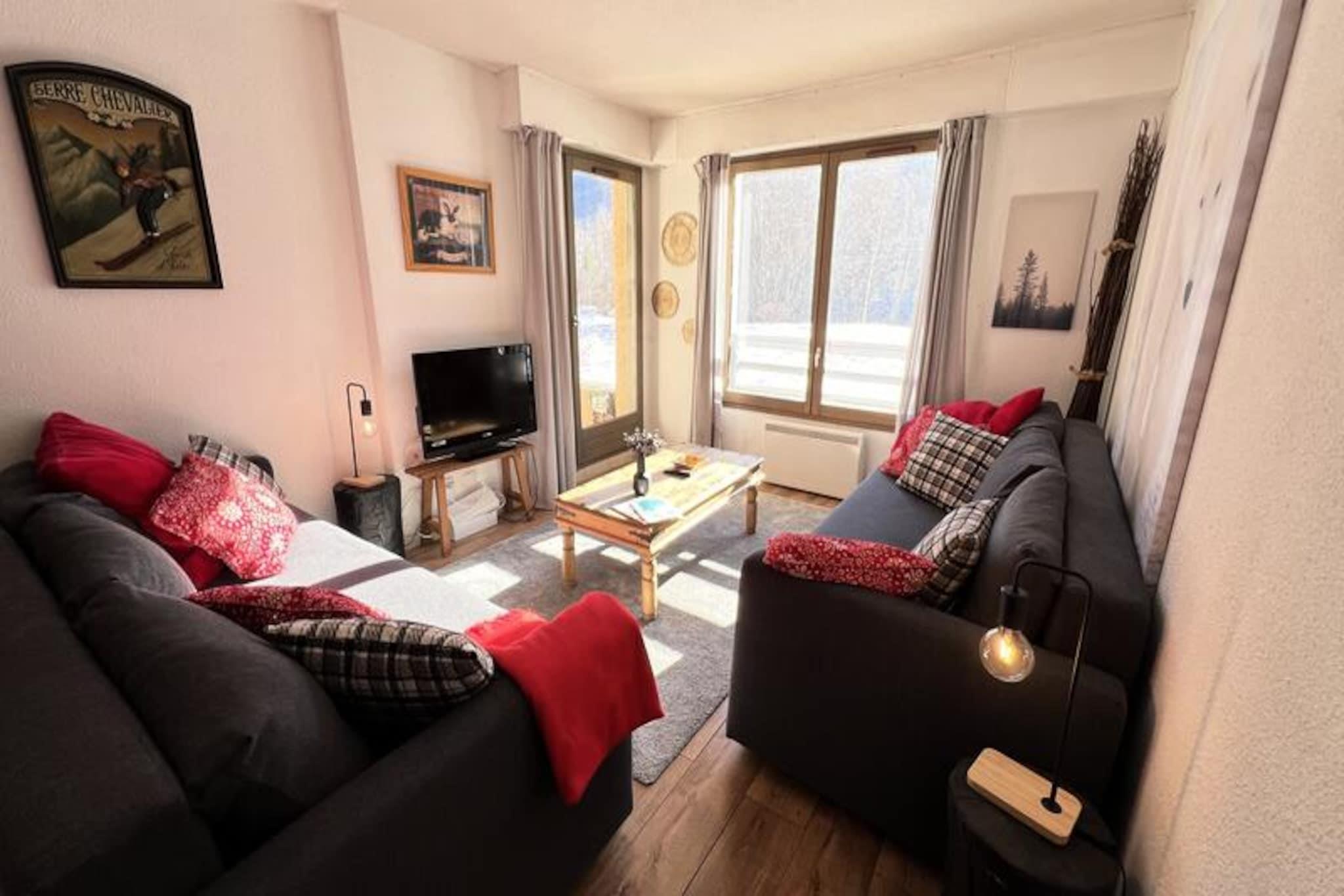 I de franske alpers fredfyldte omfavnelse tilbyder denne charmerende lejlighed i Jardin Alpin Anémone et roligt tilflugtssted omgivet af frodigt grønt og en betagende udsigt over bjergene. Med en perfekt beliggenhed til både afslapning og eventyr ligger boligen kun 300 meter fra Pontillas-svævebanen, hvilket gør den til en ideel base for at udforske pisterne om vinteren eller de naturskønne stier om sommeren. Den fredelige beliggenhed ved floden og nærheden til naturreservatet Biotope skaber et paradis for naturelskere, der søger en foryngende ferie. Denne lejlighed på 58 m² er omhyggeligt designet til at rumme op til seks gæster og har to hyggelige soveværelser med dobbeltsenge og en komfortabel sovesofa i stuen. Det fuldt udstyrede køkken med Krups-kaffemaskine, induktionskogeplade og opvaskemaskine inviterer dig til at tilberede lækre måltider, som du kan nyde på den sydvendte terrasse. Med et brusebad, et badeværelse og et separat toilet sikrer planløsningen bekvemmelighed og privatliv for alle gæster. Yderligere faciliteter inkluderer et privat skirum og parkering lige foran boligen, hvilket gør dit ophold så problemfrit som muligt. Ud over lejlighedens komfort finder du et væld af aktiviteter lige uden for døren. Uanset om det er skiløb, sneskovandring eller langrendsløjper om vinteren, eller mountainbiking og gåture langs søen om sommeren, byder området på uendelige muligheder for friluftsentusiaster. Den nærliggende landsbybus sikrer nem adgang til butikker, restauranter og lokale attraktioner, mens Biotopsøen og naturreservatet tilbyder en rolig flugt ind i hjertet af alpin skønhed. Uanset om du søger spændende eventyr eller fredelige øjeblikke midt i naturen, er denne lejlighed det perfekte valg til en uforglemmelig ferie i Alperne. Lad den friske bjergluft og de fantastiske landskaber inspirere din næste ferie.