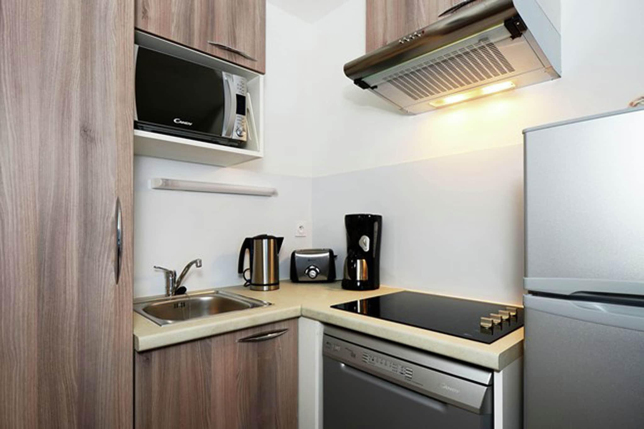 Stue(dobbeltsovesofa, Fjernsyn), tekøkken(combi-mikroovn, opvaskemaskine ), soveværelse(dobbeltseng), badeværelse(badekar eller bruser, toilet), fitnessrum(deles med andre gæster), skiopbevaring, swimmingpool(deles med andre gæster, opvarmet)