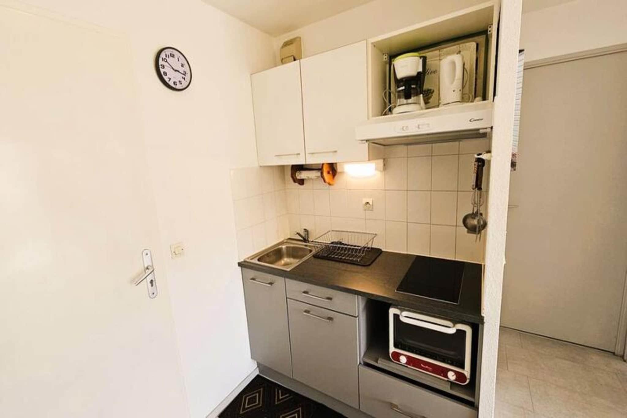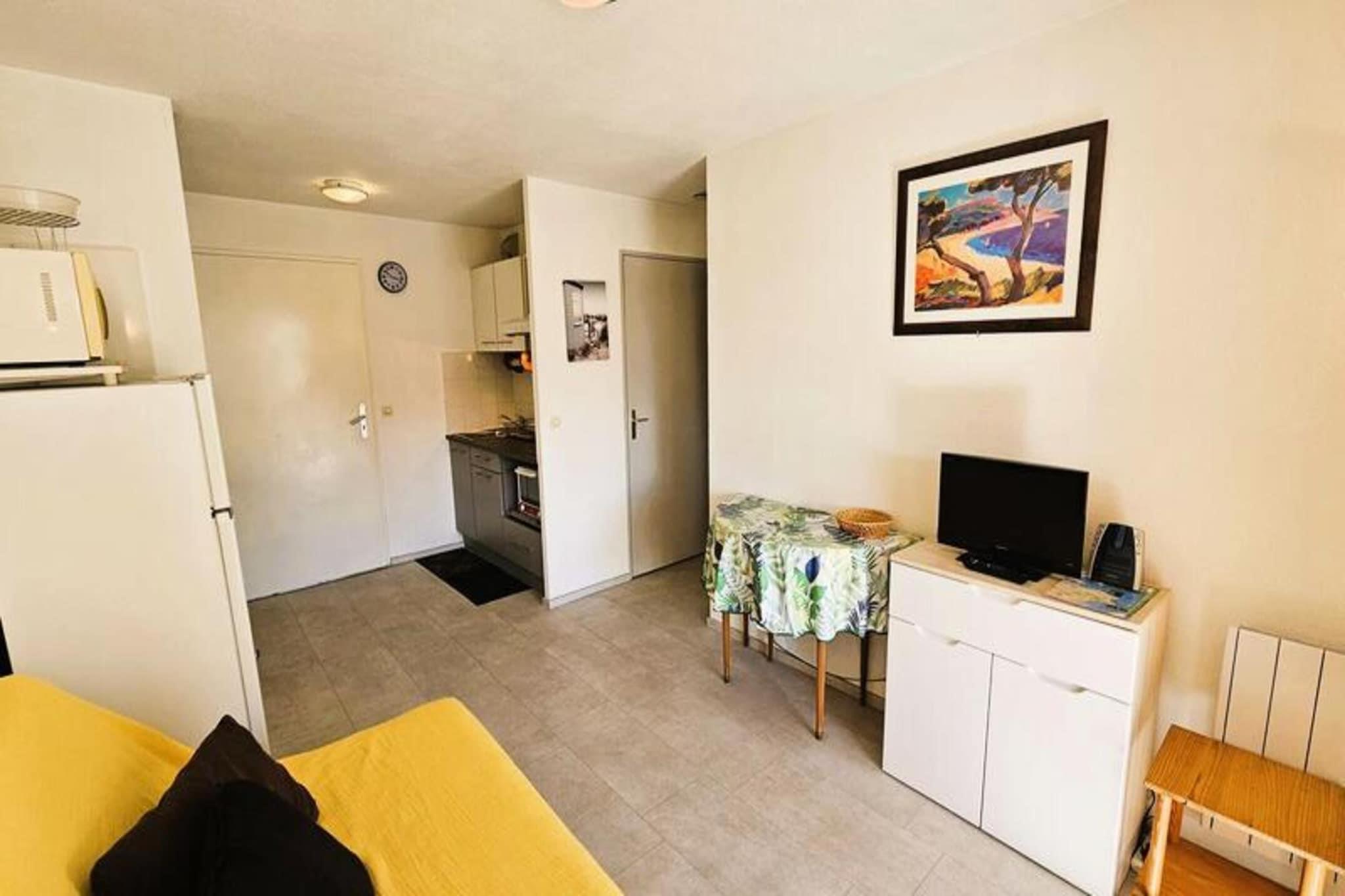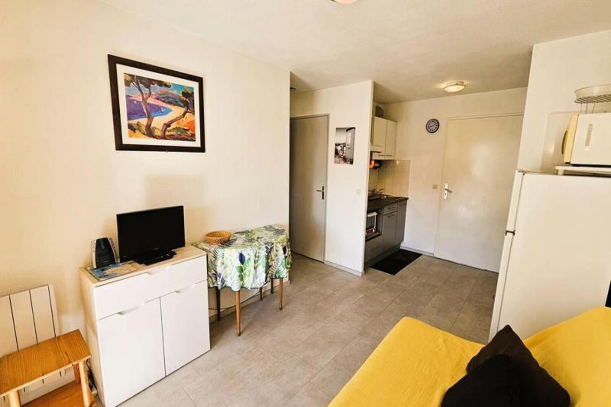 Denne dejlige ferielejlighed ligger i en privat bolig kun 100 meter fra havet, og tilbyder et fredeligt og afslappende tilflugtssted. Lejligheden indeholder en lys stue med et køkkenområde i åben forbindelse med opholdsrummet og et separat soveværelse. For et behageligt ophold er lejligheden fuldt udstyret med moderne bekvemmeligheder, herunder et tv, internet, miniovn, elektrisk kogeplade, køleskab med topfryser, mikroovn, elektrisk kaffemaskine, brødrister, vaskemaskine, strygejern og strygebræt. Soveværelset har en hyggelig 140 cm seng, og stuen har en 2-personers sovesofa til ekstra soveplads. Til lejligheden hører også en privat parkeringsplads. Boligen er ideelt beliggende kun 1100 meter fra Sablettes Beach, en af ??regionens smukkeste sandstrande, og tilbyder gratis adgang til en swimmingpool. Butikker, restauranter og underholdning er inden for gåafstand, med en kort 15-minutters gang til stranden. Denne beliggenhed giver en fremragende mulighed for at nyde kystlivsstilen med bekvemmeligheden af ??nærliggende faciliteter og roen ved at være tæt på havet. Lejligheden har også en privat balkon med udsigt over swimmingpoolen, komplet med havemøbler, perfekt til at slappe af udendørs. Mens sengelinned, håndklæder og slutrengøring ikke er inkluderet, har gæsterne mulighed for at tilføje disse tjenester for et mere bekvemt ophold. Kæledyr er velkomne mod et tillægsgebyr, og boligen er ikke-ryger.