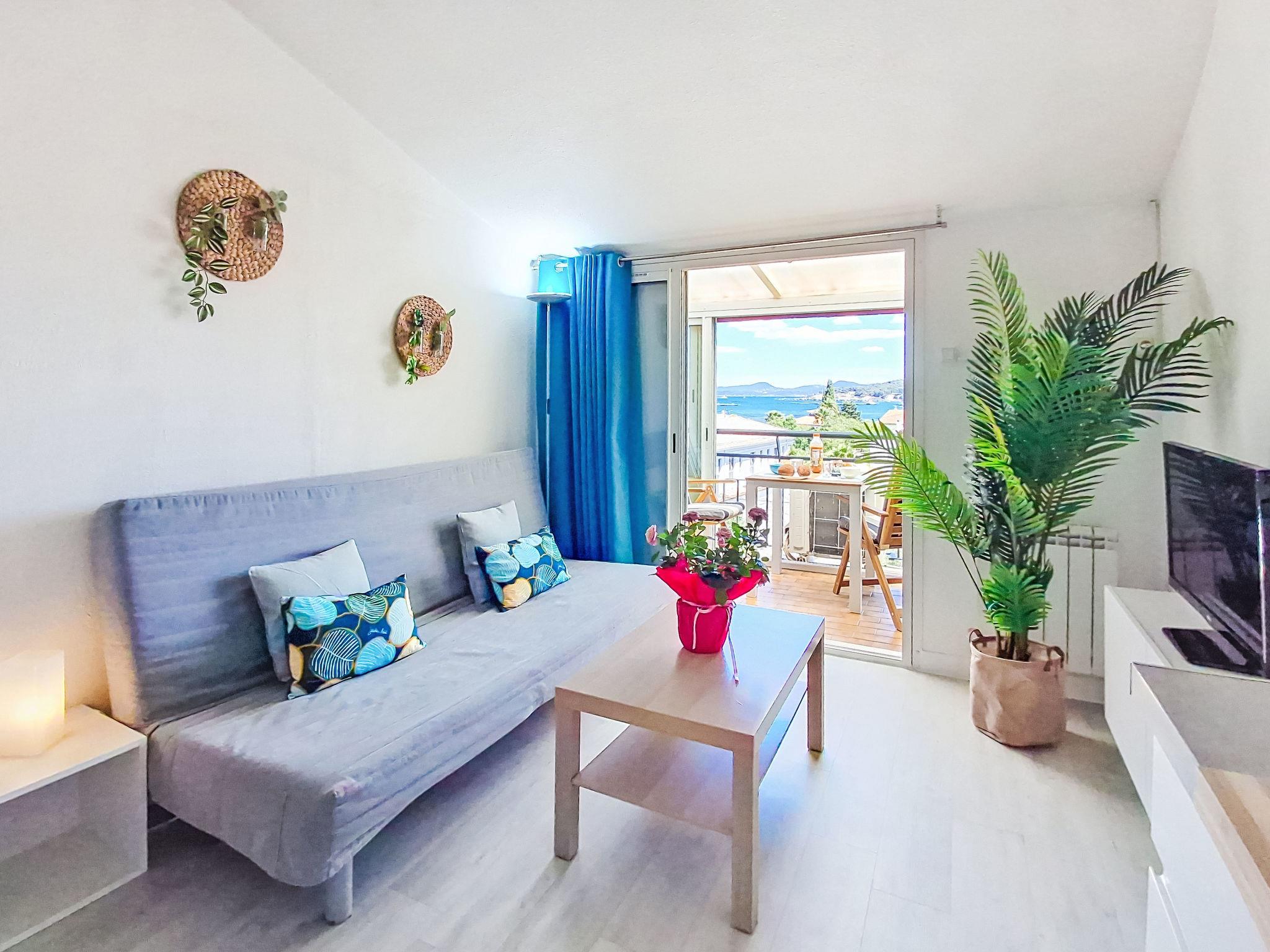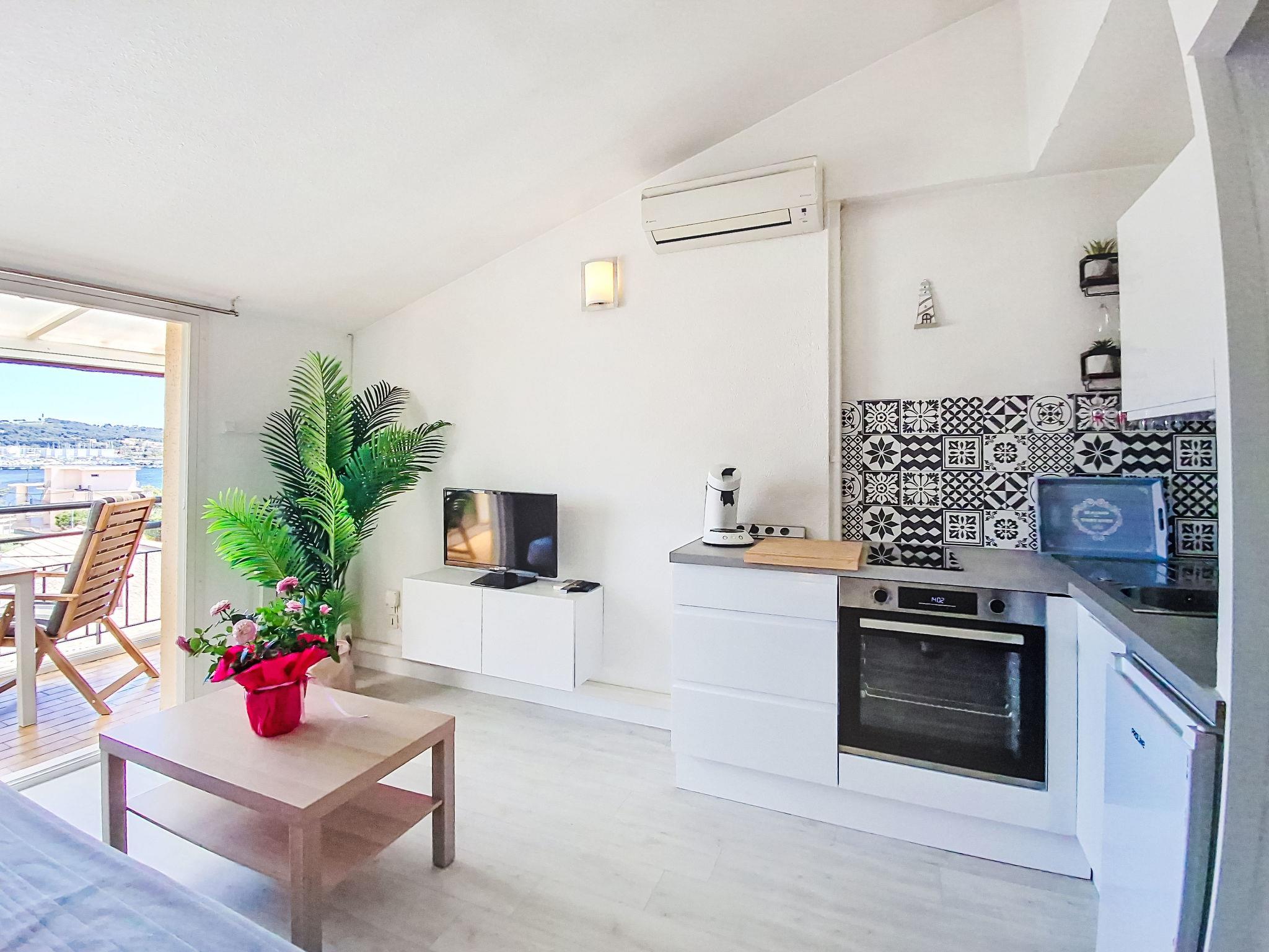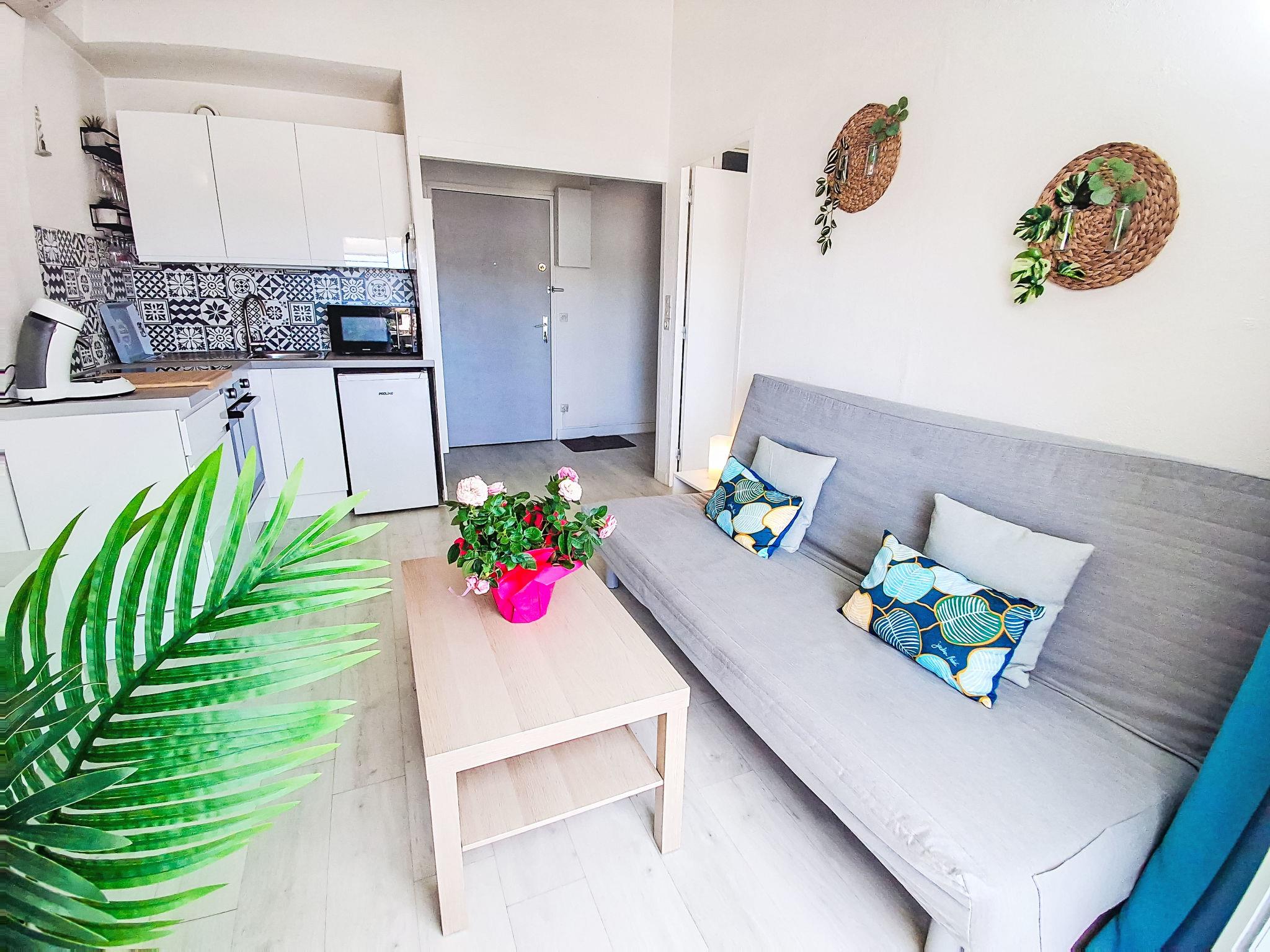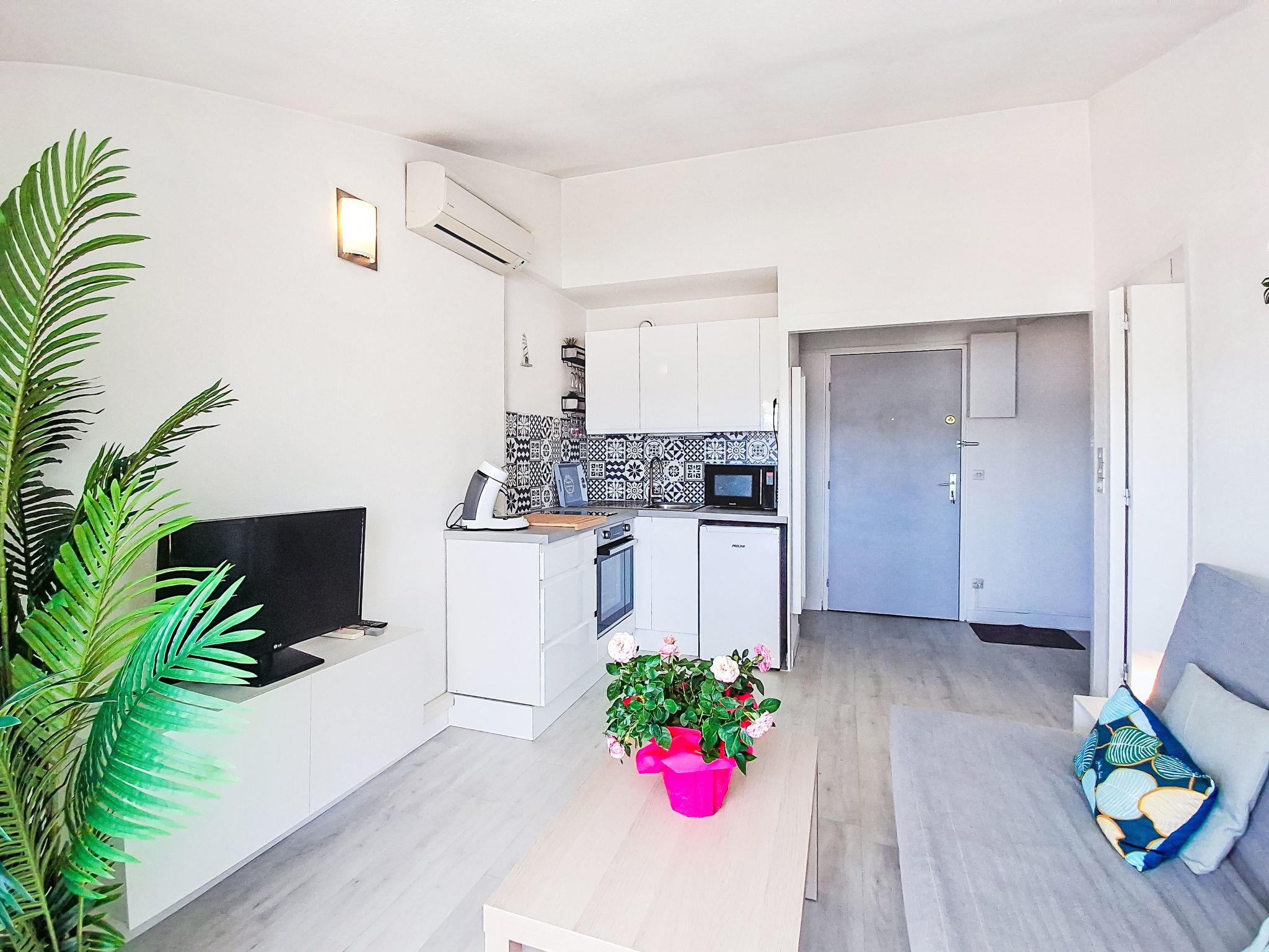 2-room apartment 30 m2 on 3rd floor. Bright, comfortable and modern furnishings: living/dining room with TV (flat screen), air conditioning. Exit to the veranda. 1 room 8 m2 with 1 french bed (140 cm, length 190 cm). Kitchenette (oven, 2 induction hot plates, toaster, microwave, electric coffee machine). Shower/WC. Electric heating. Marvellous view of the sea. Facilities: Internet (WiFi, free). Garage space n 29 (1 car), height 170 cm, width 230 cm. Please note: non-smokers only. TV only FR. Smoke alarm, no lift. Offer by a private individual according to Art. 155, IV of CGI.