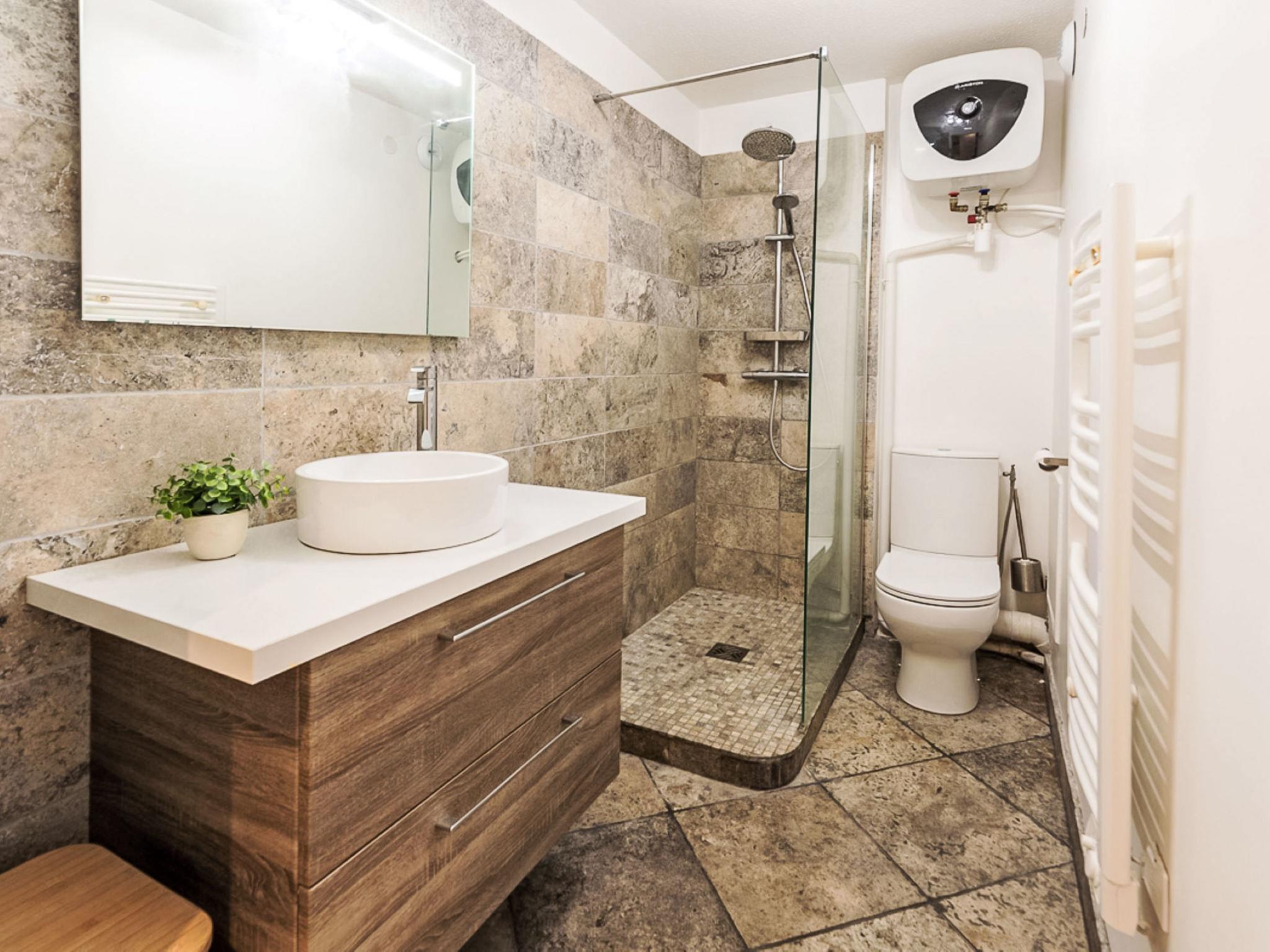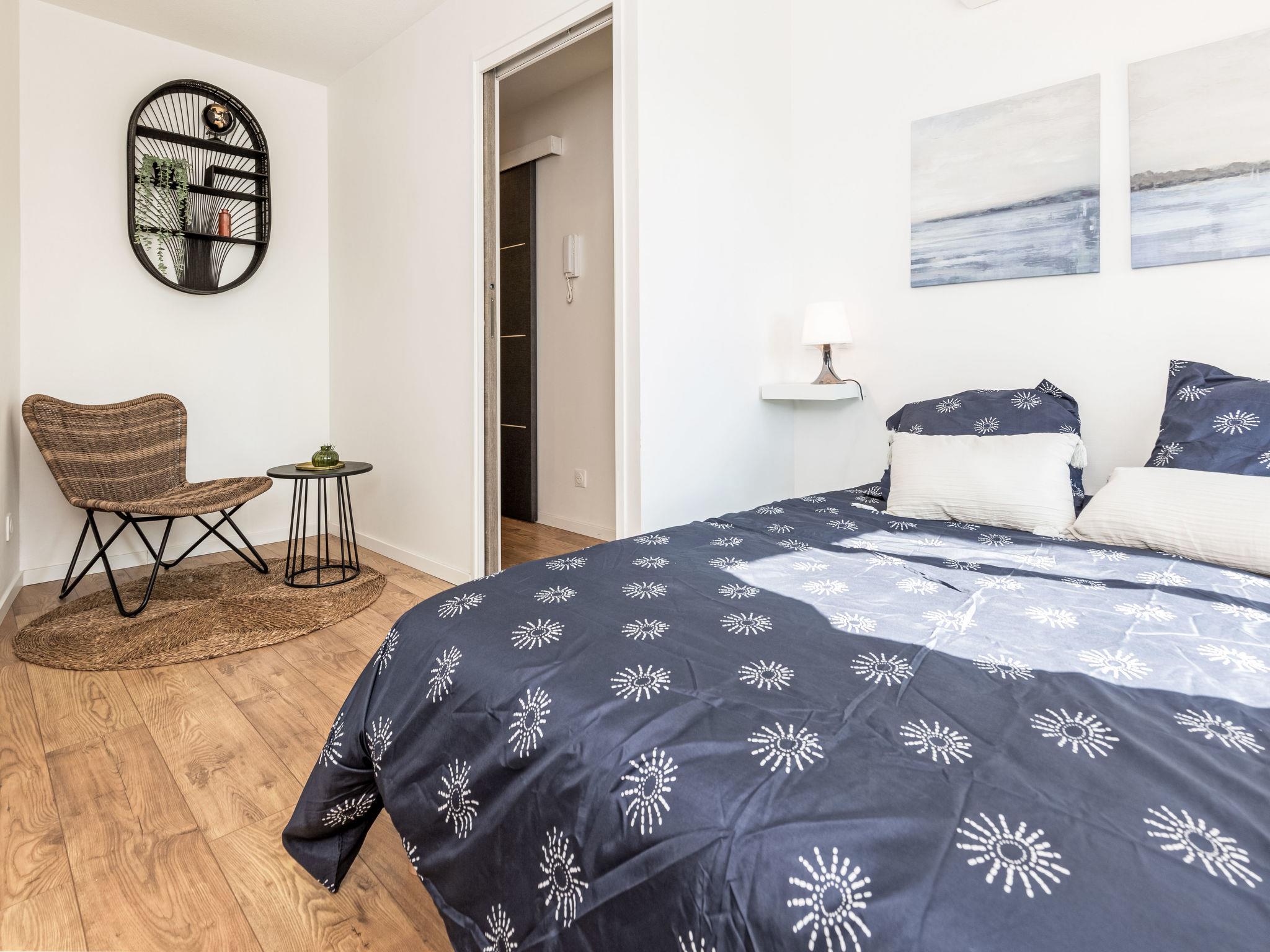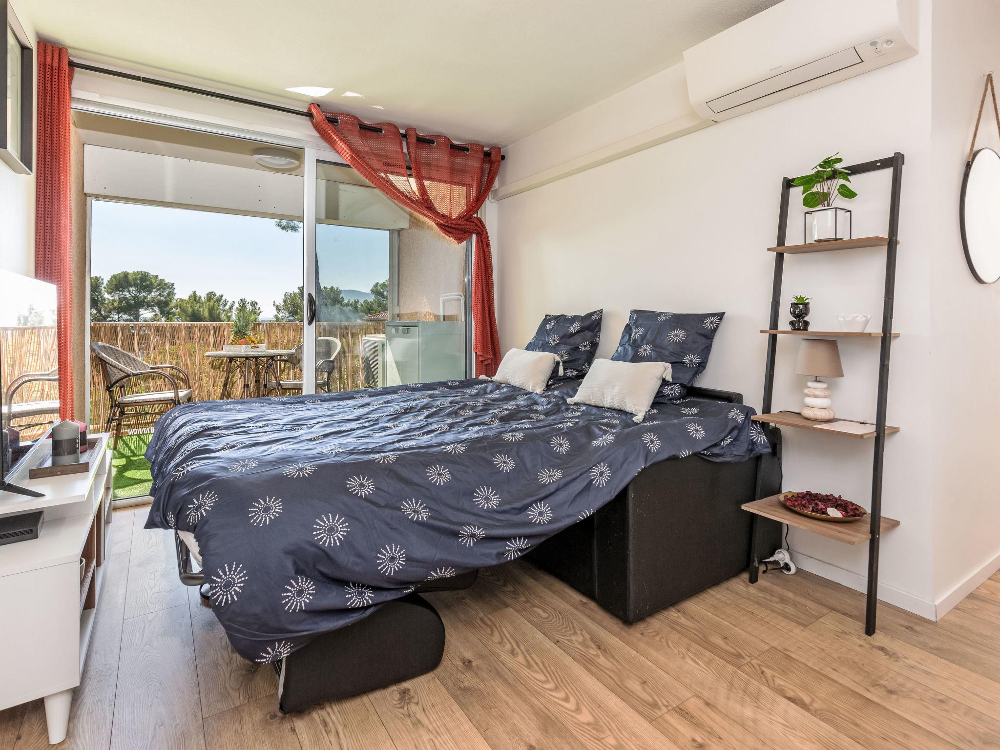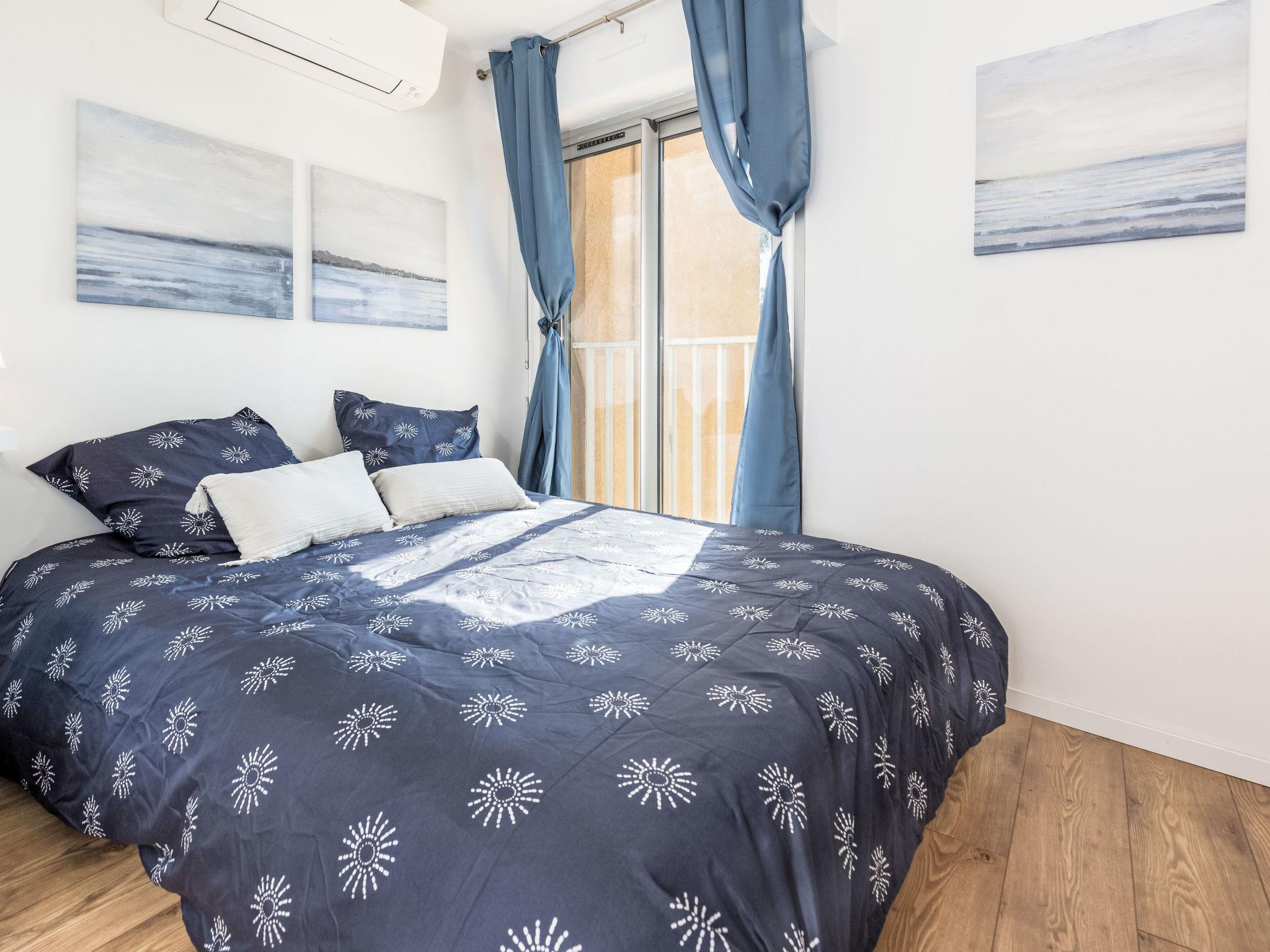 2-room apartment 35 m2 on 1st floor. Beautiful furnishings: living/dining room with 1 double sofabed (140 cm, length 190 cm), TV (flat screen). Exit to the balcony. 1 room with 1 french bed (140 cm, length 190 cm). Kitchenette (dishwasher, 1 induction hot plates, 2 gas rings, toaster, kettle, microwave, electric coffee machine, Capsules for coffee machine (Dolce gusto) extra). Shower/WC. Electric heating, air-conditioning. Terrace 5 m2, roofed, south facing position and west facing position. Partial view of the sea. Facilities: washing machine, hair dryer. Internet (WiFi, free). Parking space n 10 (1 car) at 100 m. Please note: non-smokers only, parking space for small car only. TV only FR. Smoke alarm, no lift. Offer by a private individual according to Art. 155, IV of CGI.