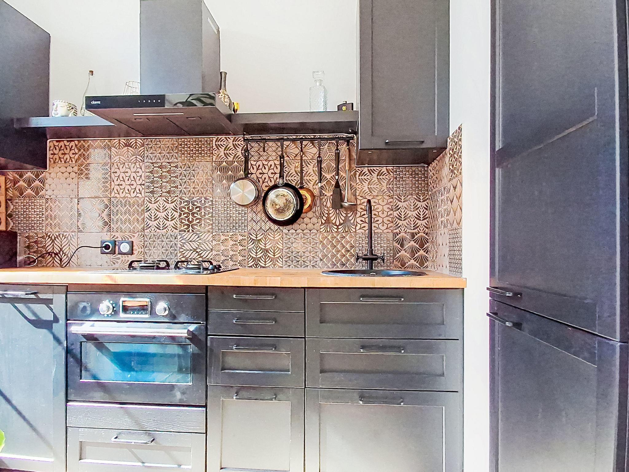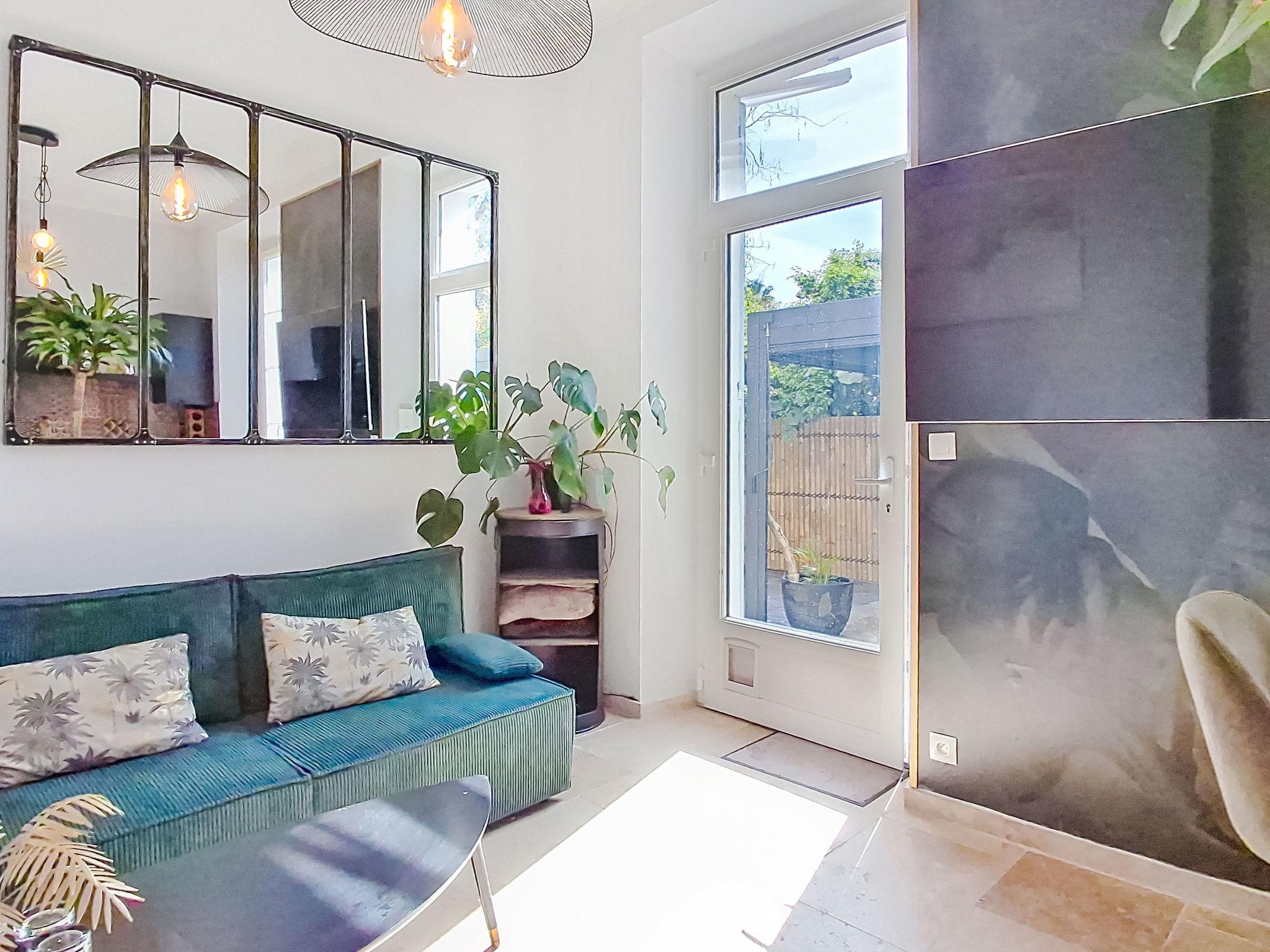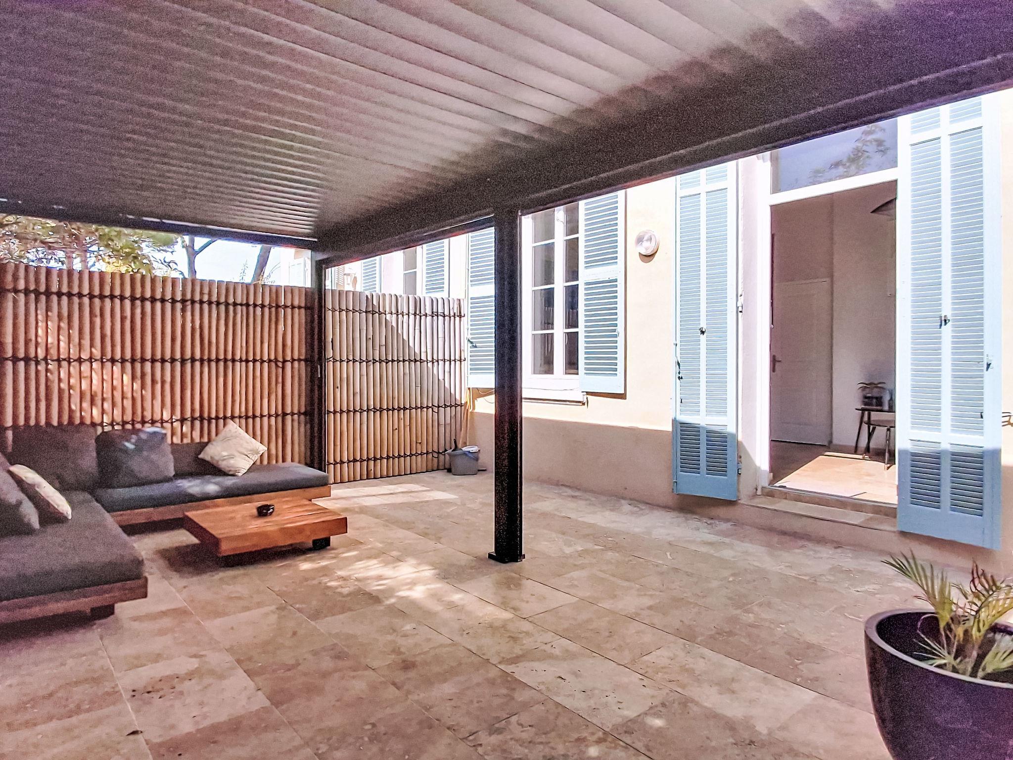 2-room apartment 30 m2, on the ground floor. Comfortable and modern furnishings: living/dining room with TV (flat screen). Exit to the garden. 1 room with 1 french bed (140 cm, length 190 cm). Kitchen (oven, dishwasher, 1 induction hot plates, 4 gas rings, toaster, kettle, microwave, freezer, electric coffee machine, Capsules for coffee machine (NESPRESSO) extra) with dining nook. Shower/WC. Electric heating. Large terrace 70 m2, south facing position and west facing position, small patio 60 m2. Terrace furniture. Facilities: washing machine. Internet (WiFi, extra). Parking (2 cars). Please note: TV only FR. Smoke alarm. Offer by a private individual according to Art. 155, IV of CGI.