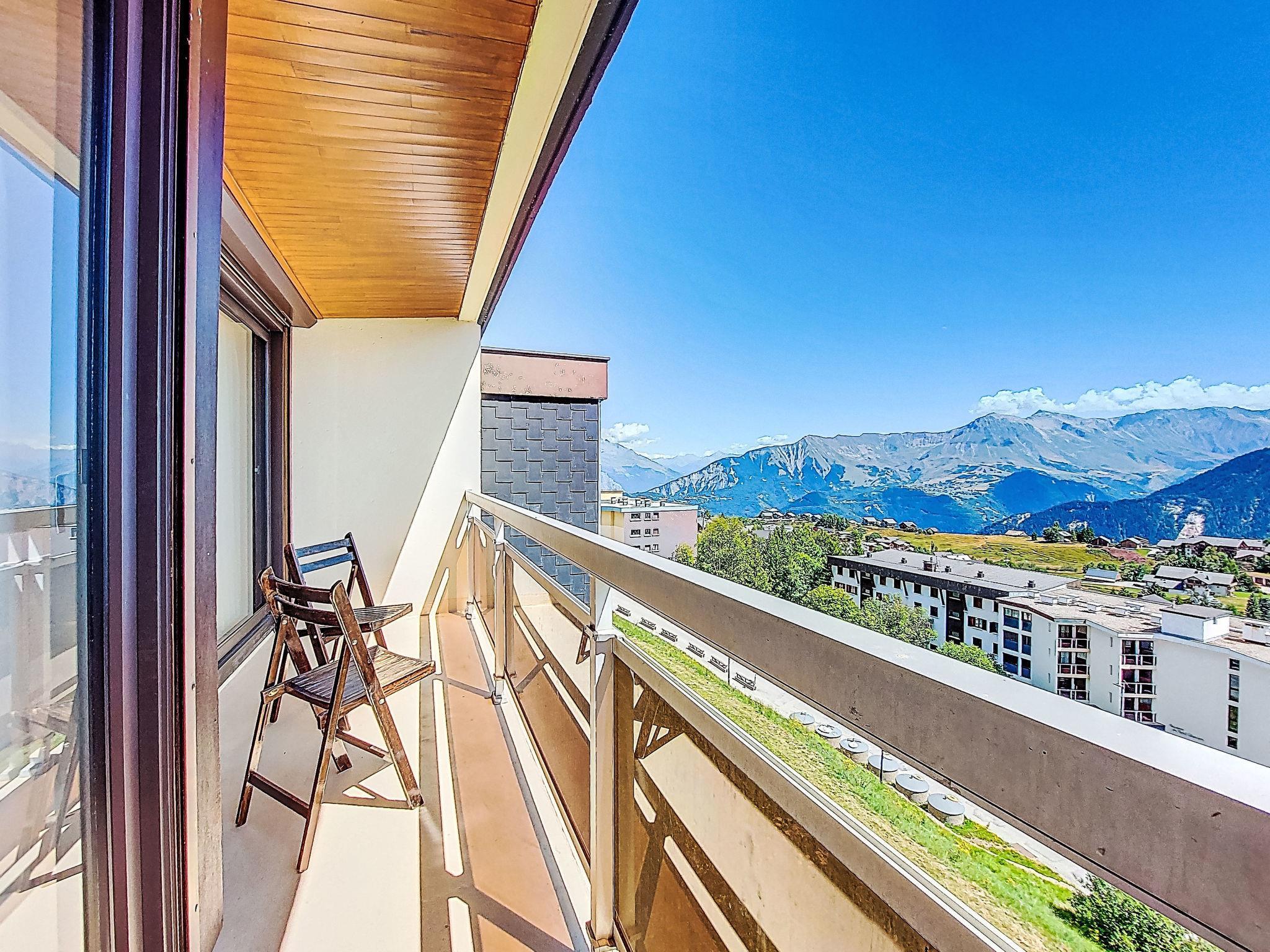 1-room apartment 32 m2 on 3rd floor, south facing position. Simple furnishings: living/dining room with curtain with 1 x 2 bunk beds (80 cm, length 190 cm), TV and DVD. Exit to the balcony, south facing position. Alcove with curtain with 1 french bed (140 cm, length 200 cm), electric shutters. Exit to the balcony, south facing position. Small kitchen (dishwasher, 2 induction hot plates, toaster, kettle, microwave, electric coffee machine, fondue Set (cheese)). Bathroom, sep. WC. Heating. Carpet. Large balcony 6 m2, south facing position. Beautiful view of the mountains and the resort. Facilities: hair dryer. Internet (WiFi, extra). Please note: non-smokers only. Smoke alarm. Instead of an enclosed bedroom, some sleeping areas are located in an open-plan area (gallery, alcove, etc.). Offer by a private individual according to Art. 155, IV of CGI.