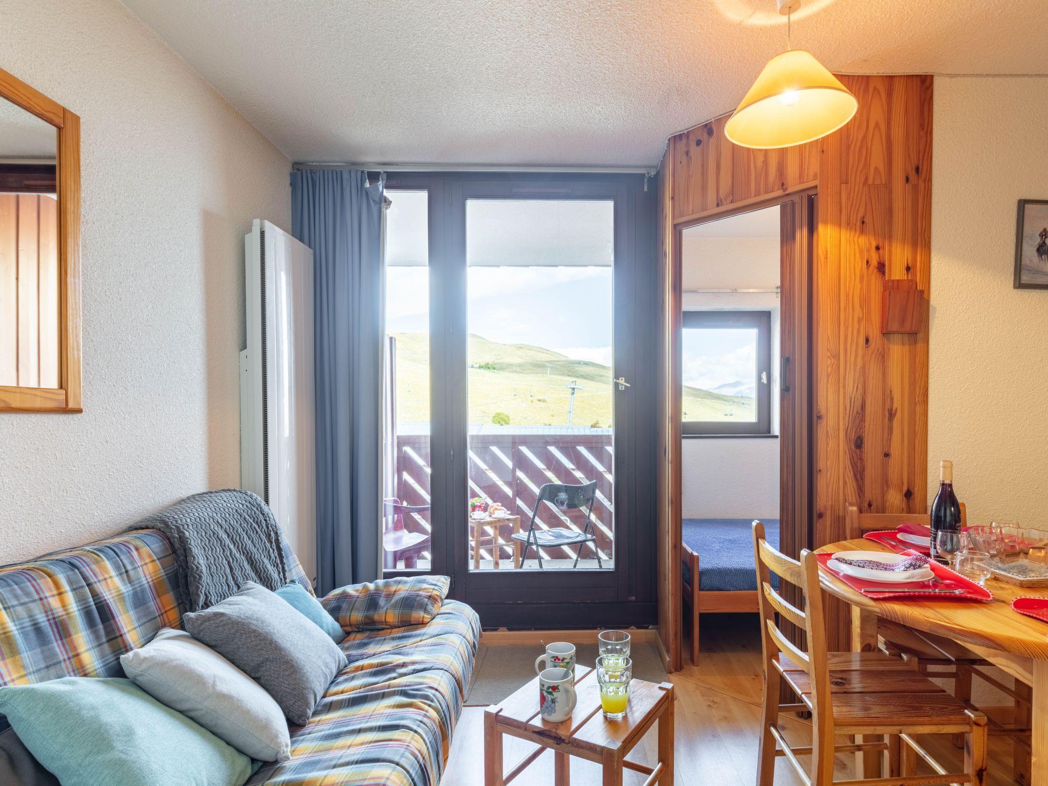 2-room apartment 25 m2 on 1st floor. Simple and practical furnishings: living/dining room with TV (flat screen). Exit to the balcony, north facing position. Entrance hall with 1 x 2 bunk beds (70 cm, length 190 cm). 1 room with sliding door with 1 french bed (140 cm, length 190 cm). Kitchenette (oven, 2 ceramic glass hob hotplates, kettle, microwave, electric coffee machine). Bathroom, sep. WC. Electric heating, boiler. Parquet floors. Balcony 3 m2, north facing position. Partial view of the mountains. Facilities: hair dryer. Internet (WiFi, extra). Please note: apartment carpark side. Non-smokers only. Maximum 1 pet/ dog allowed. Smoke alarm, no lift. Apartment in the building B. NOTE: for the Toussuire apartments, the key collection will take place in the Interhome office at Corbier, 4 km away. For the guests arriving by bus, please contact us 48 hrs in advance to arrange key collection. ADDITIONAL SERVICE FEE POSSIBLE 30 €. Instead of an enclosed bedroom, some sleeping areas are located in an open-plan area (gallery, alcove, etc.). Offer by a private individual according to Art. 155, IV of CGI. 6820A