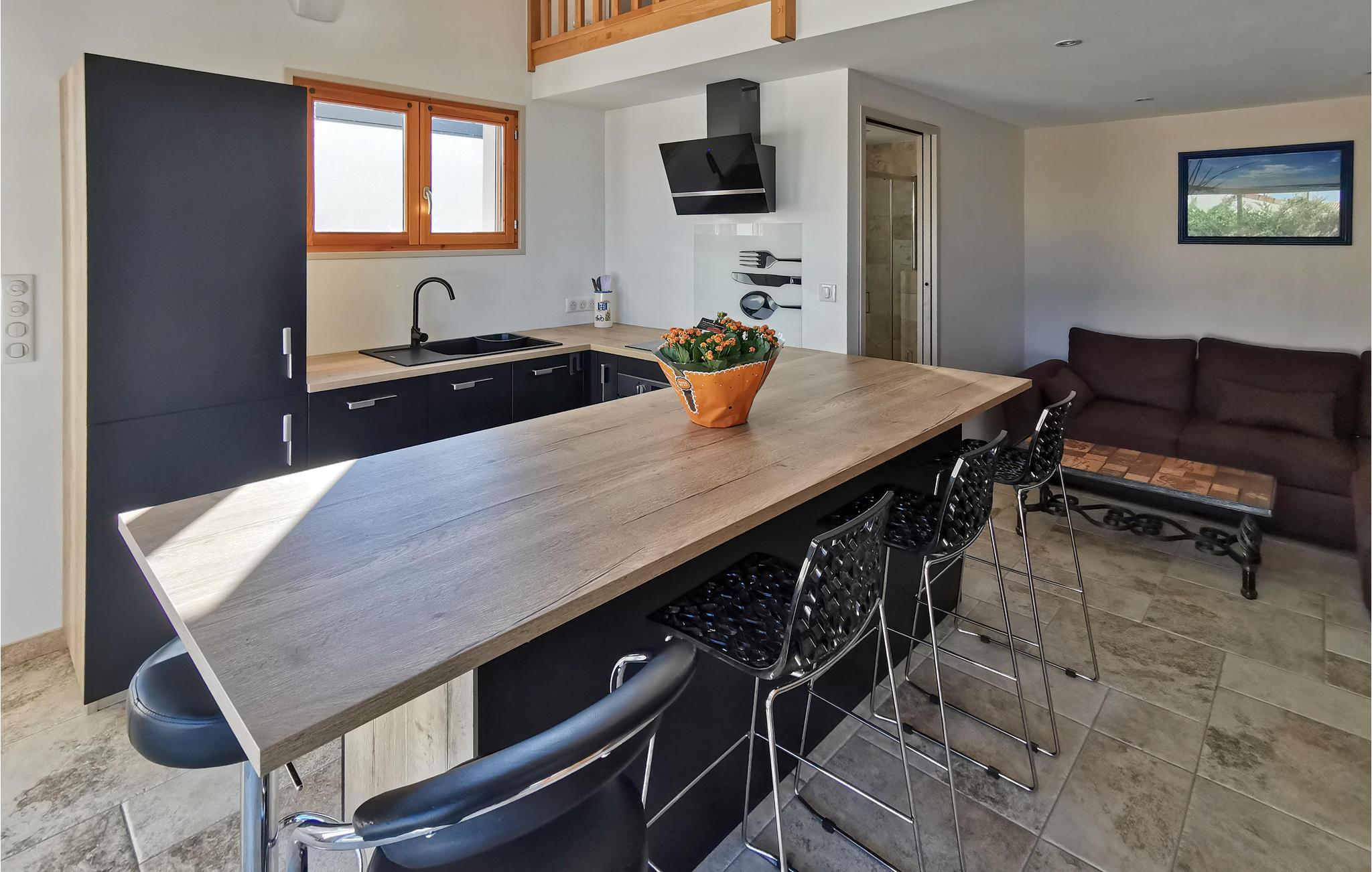 Nyd en pause i denne bolig, der imponerer med sin enkle indretning og bekvemme beliggenhed. Brug feriehuset som en bekvem base for at udforske Atlanterhavskysten og dens mangfoldige tilbud. Opholdsstuen er forbundet med det åbne køkken. Tilbered jeres måltider i det moderne tekøkken, og brug den store spisebordsdisk med barstole til fælles måltider eller sociale aftener.
