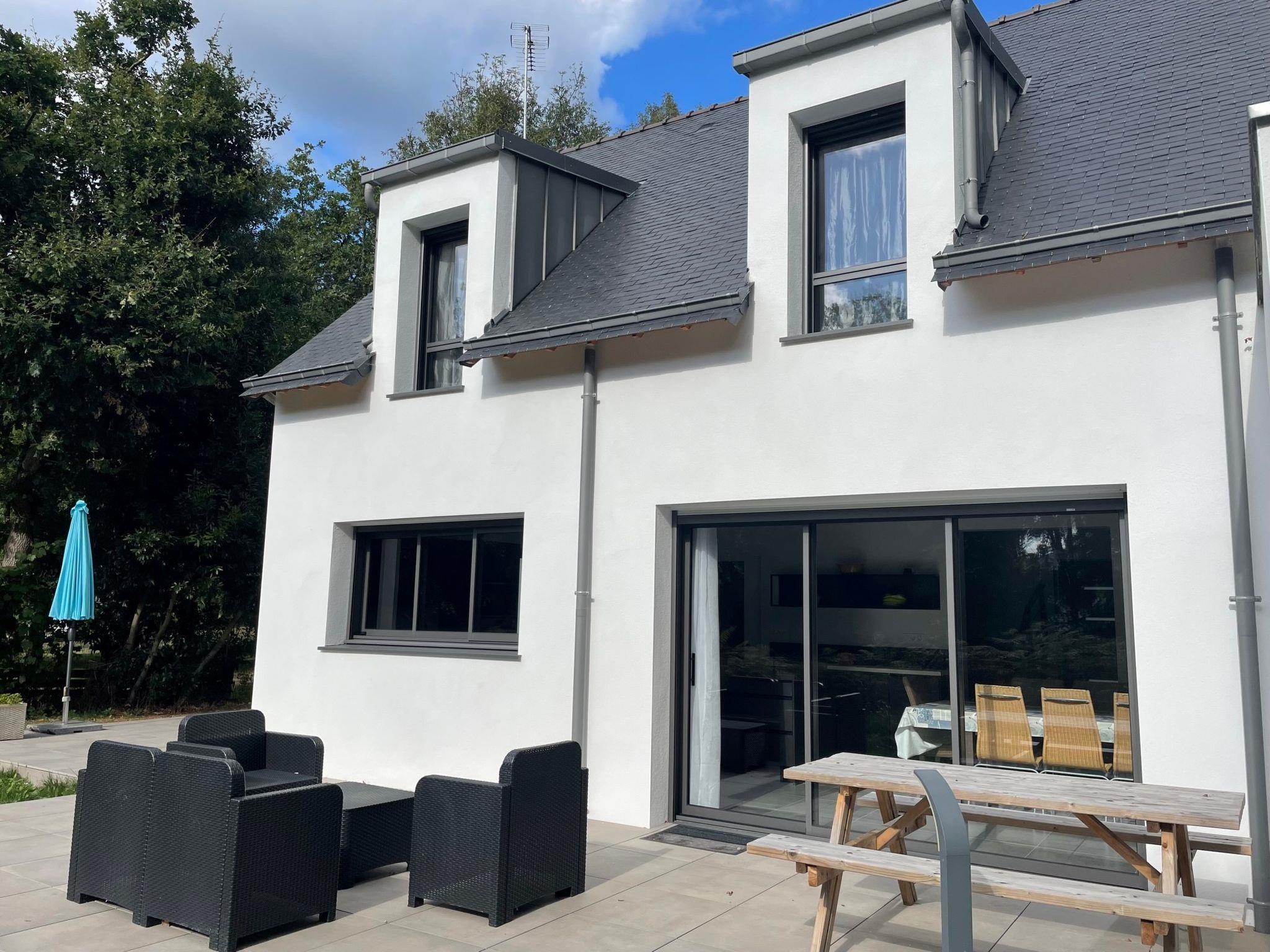 5-room house 170 m2 on 2 levels. Spacious, beautiful furnishings: large living/dining room with TV (flat screen). Exit to the garden, to the terrace. 1 room with 1 french bed (1 x 160 cm, length 200 cm), hand-basin and shower. Exit to the garden. Open kitchen (oven, dishwasher, 3 induction hot plates, toaster, kettle, microwave, freezer, electric coffee machine, Capsules for coffee machine (Nespresso) extra) with dining nook. Exit to the terrace. Sep. WC. Upper floor: 1 room with 1 french bed (1 x 160 cm, length 200 cm). 2 rooms, each room with 2 beds (80 cm, length 200 cm). Bathroom, shower, sep. WC. Electric heating. Terrace 40 m2. Terrace furniture, barbecue, deck chairs (4). View of the garden. Facilities: washing machine, dryer, hair dryer. Internet (WiFi, free). Parking, garage (2 cars). Please note: non-smoking house. Maximum 1 pet/ dog allowed. Smoke alarm. Garage for boat shelter available, central vacuum, quality service. Garden in progress. Offer by a private individual according to Art. 155, IV of CGI. 56258000160LT