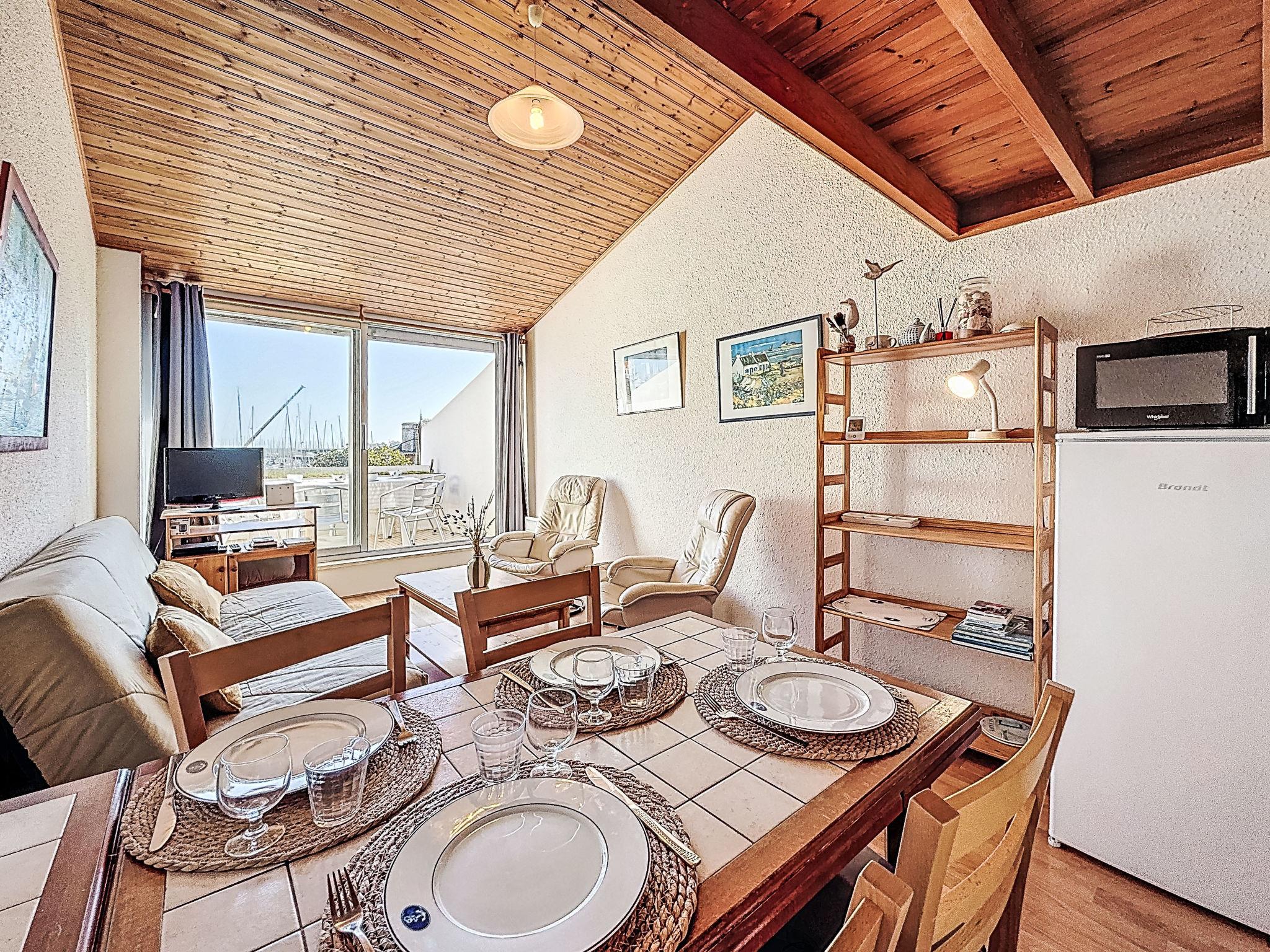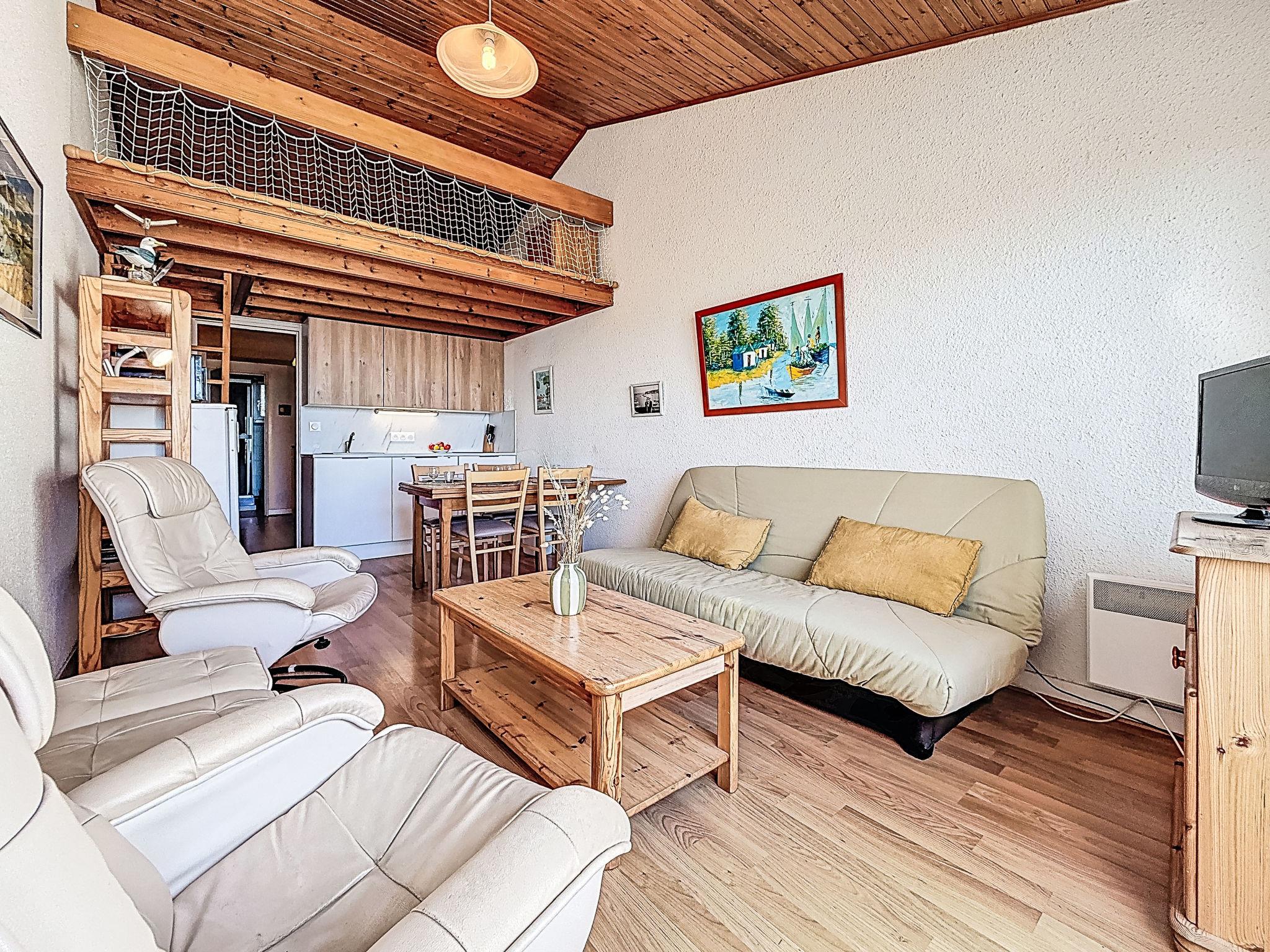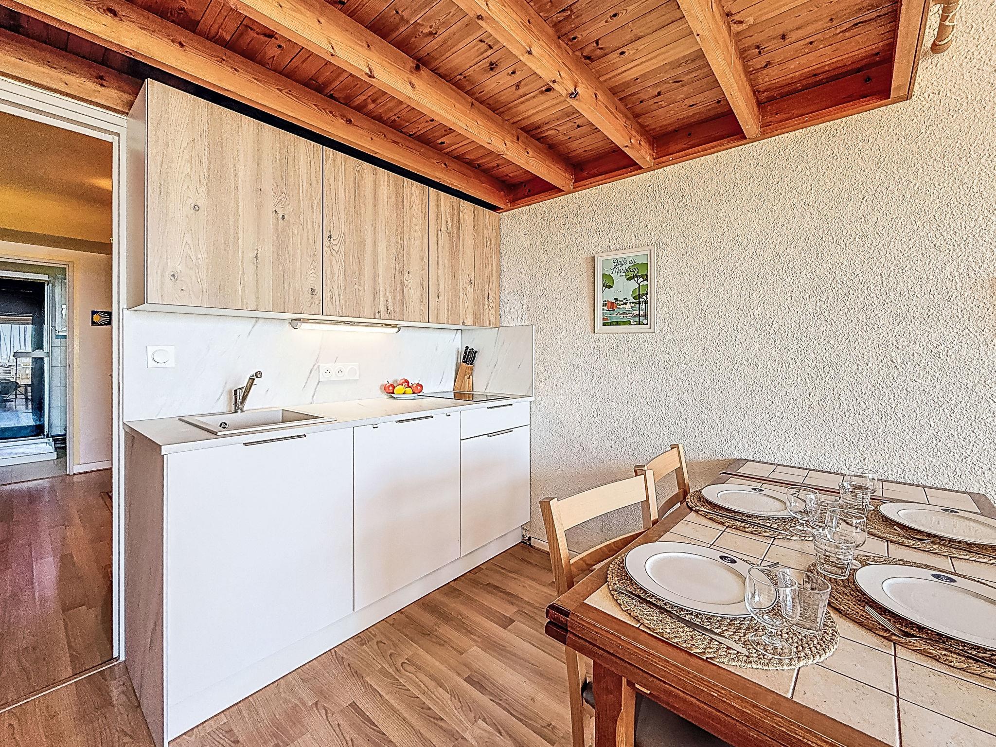 2-room apartment 45 m2 on 3 levels on 1st floor. Comfortable furnishings: 1 room with 1 bed (90 cm, length 190 cm), 1 x 2 bunk beds (90 cm, length 190 cm). Upper floor: (spiral staircase) living/dining room with TV (flat screen). Exit to the balcony. Open kitchen (2 induction hot plates, toaster, kettle, microwave, electric coffee machine). Shower, sep. WC. 2nd upper floor: (steep stair), 1 open small room with sloping ceilings with 1 french bed (1 x 140 cm, length 190 cm). Balcony 6 m2, south facing position. Balcony furniture. Partial view of the sea. Facilities: washing machine, iron, hair dryer. Internet (WiFi, free). Garage space n 14 (1 car). Please note: non-smokers only. Smoke alarm. Offer by a private individual according to Art. 155, IV of CGI. 56258000053LB
