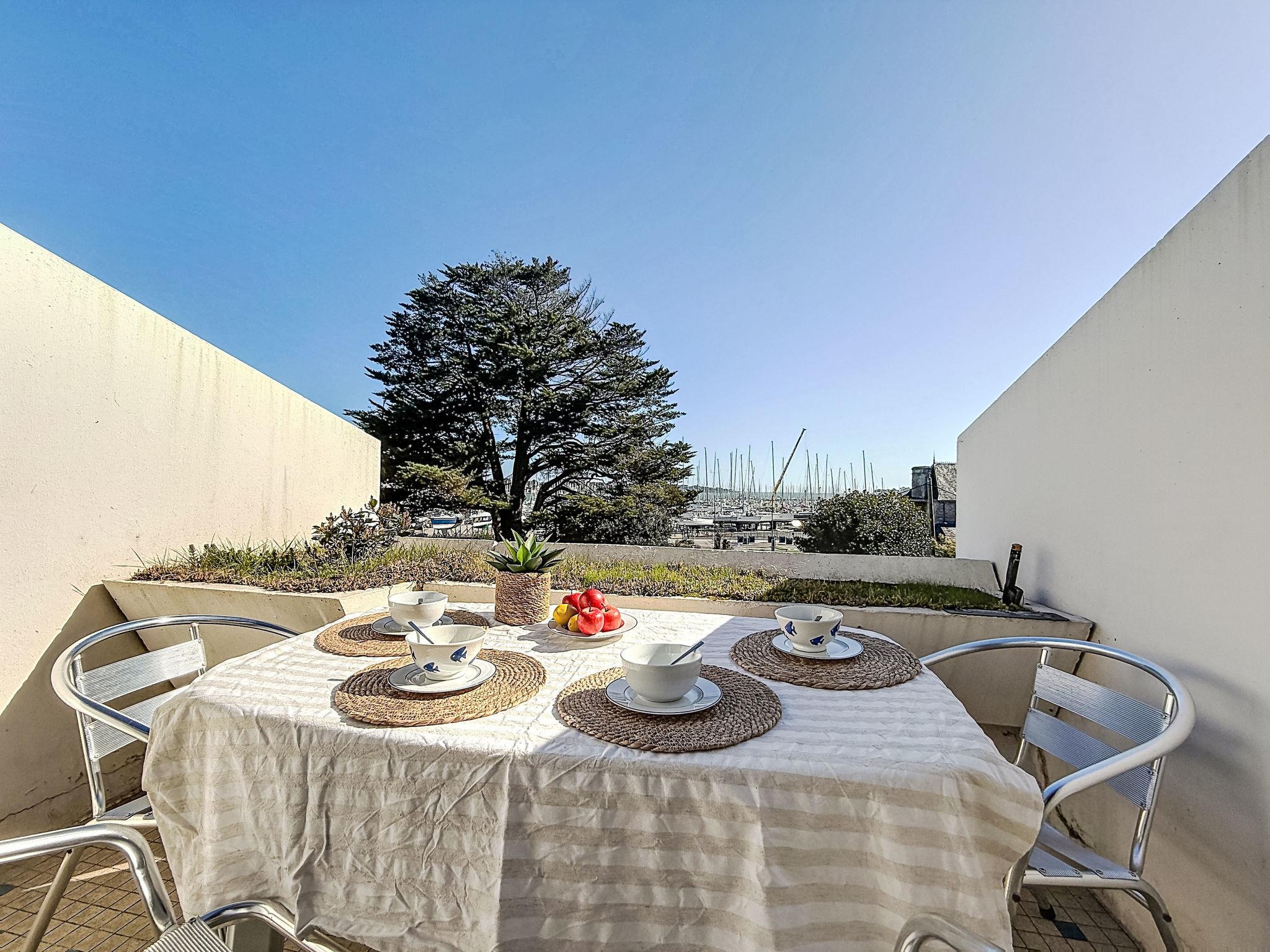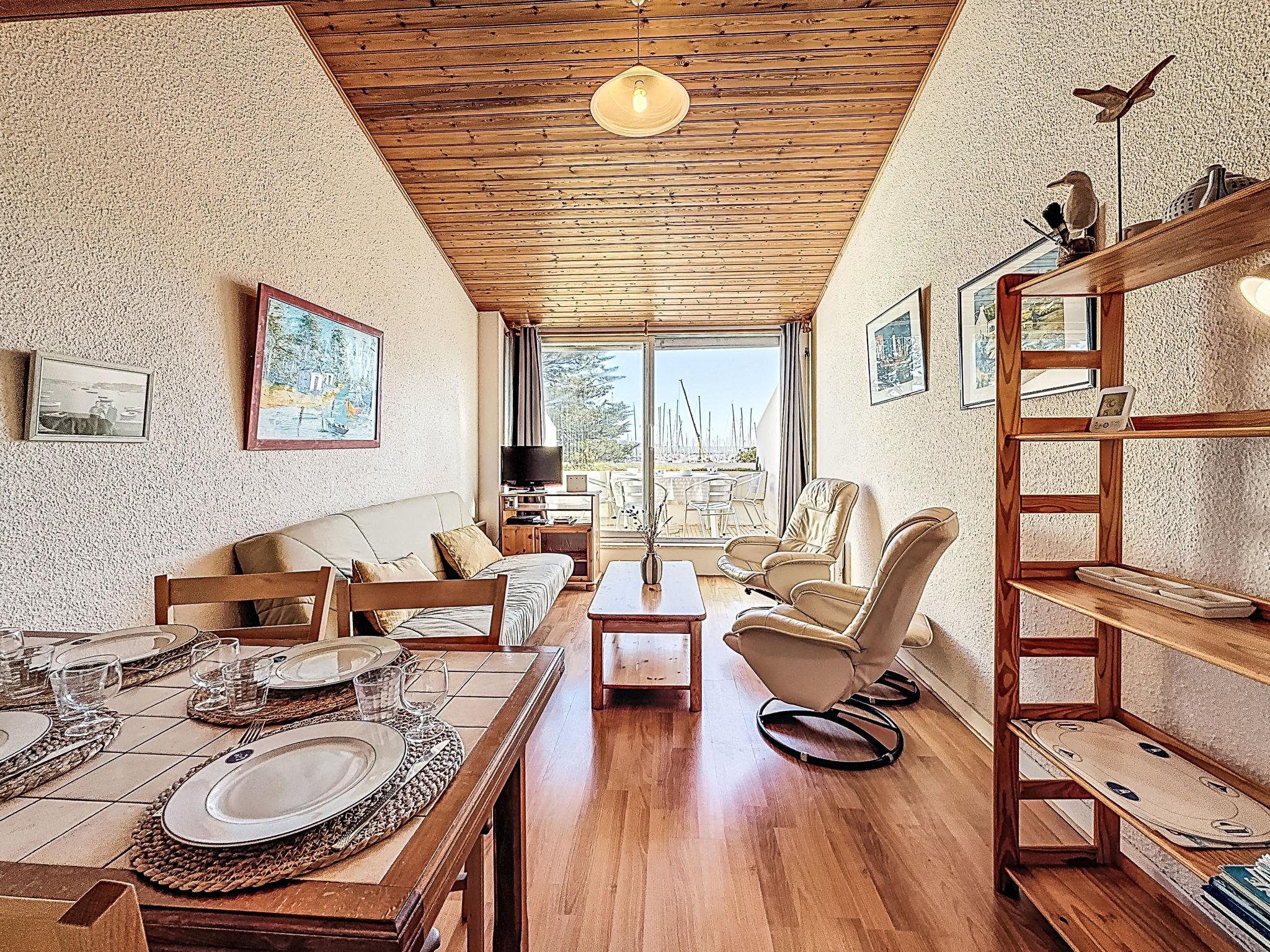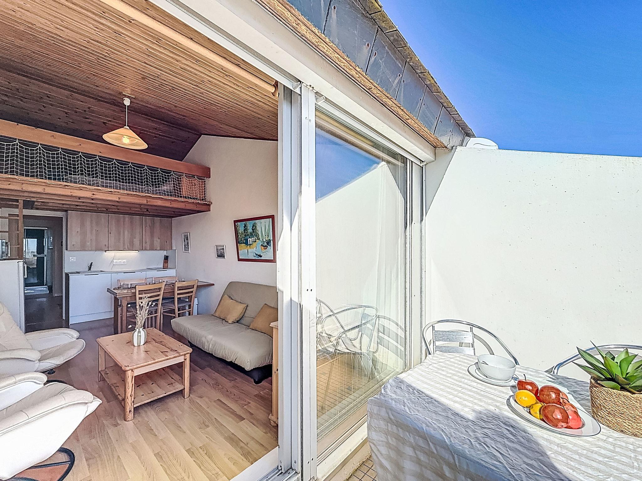 2-room apartment 45 m2 on 3 levels on 1st floor. Comfortable furnishings: 1 room with 1 bed (90 cm, length 190 cm), 1 x 2 bunk beds (90 cm, length 190 cm). Upper floor: (spiral staircase) living/dining room with TV (flat screen). Exit to the balcony. Open kitchen (2 induction hot plates, toaster, kettle, microwave, electric coffee machine). Shower, sep. WC. 2nd upper floor: (steep stair), 1 open small room with sloping ceilings with 1 french bed (1 x 140 cm, length 190 cm). Balcony 6 m2, south facing position. Balcony furniture. Partial view of the sea. Facilities: washing machine, iron, hair dryer. Internet (WiFi, free). Garage space n 14 (1 car). Please note: non-smokers only. Smoke alarm. Offer by a private individual according to Art. 155, IV of CGI. 56258000053LB