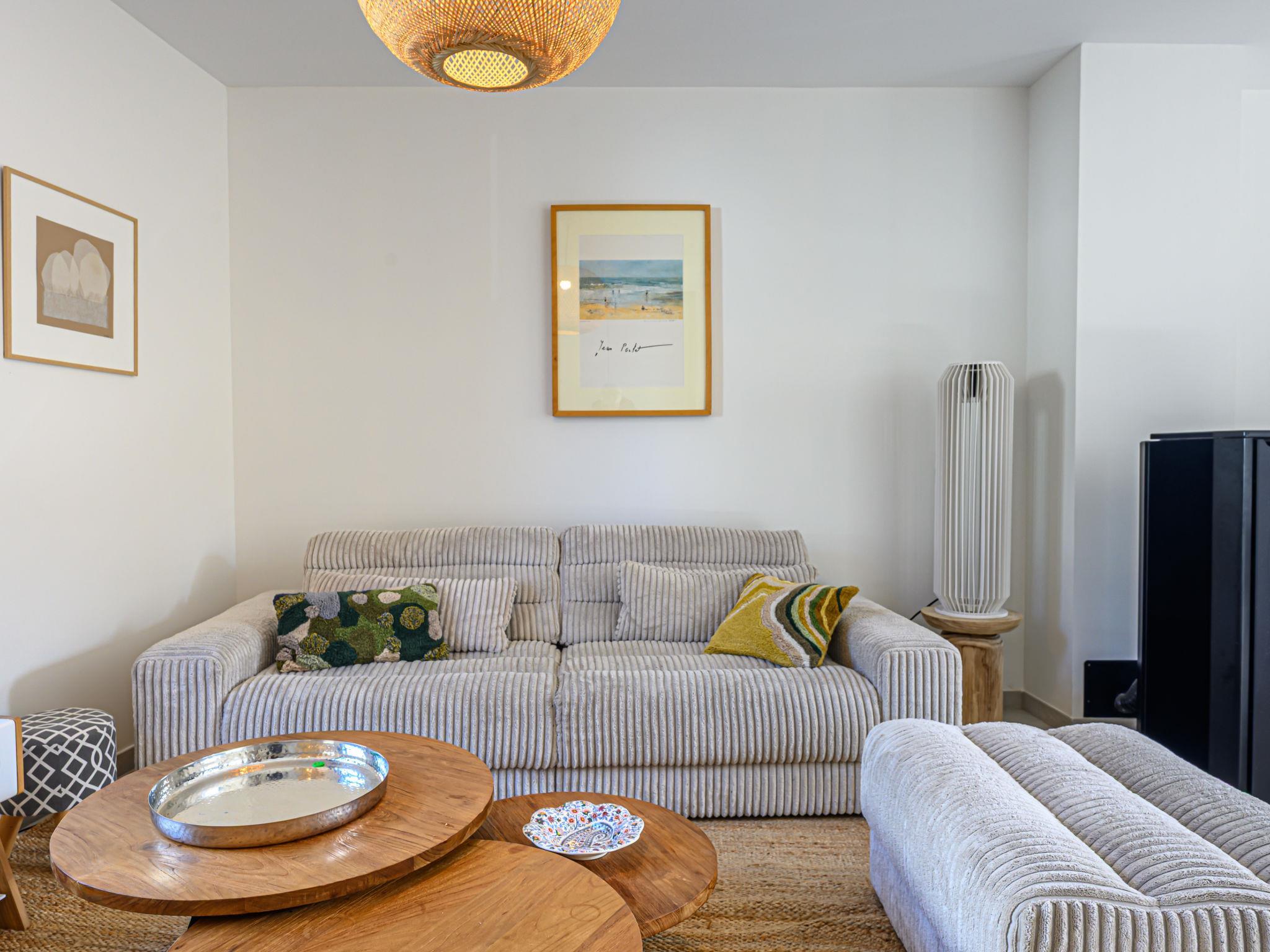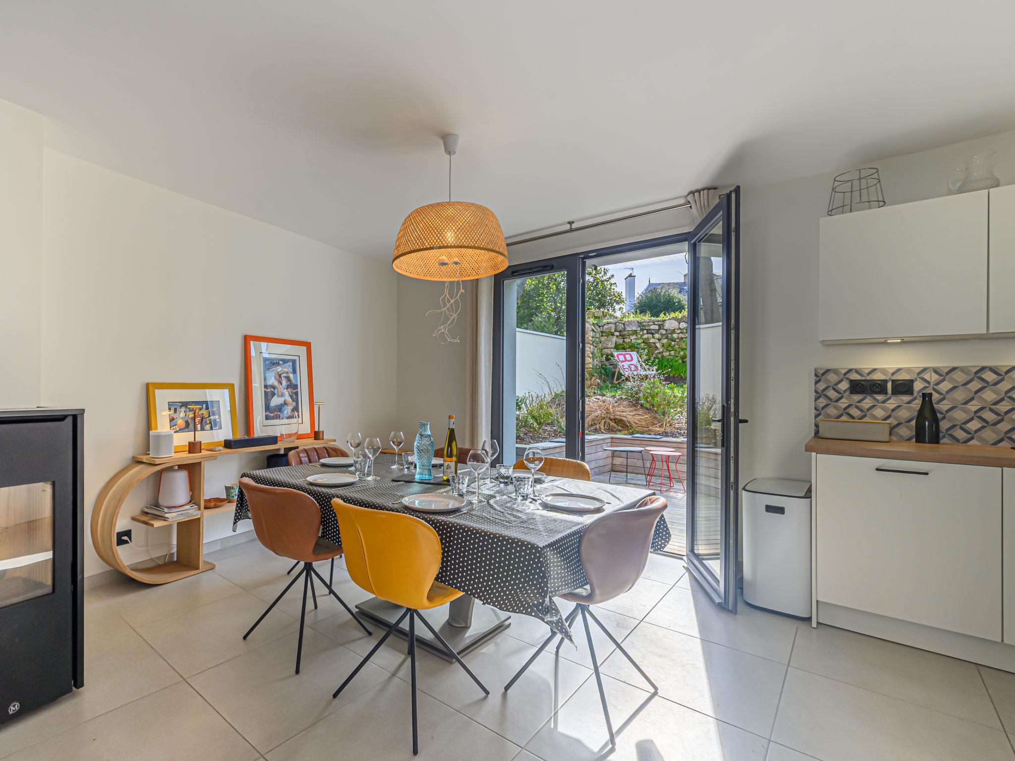 4-room house 102 m2 on 3 levels. Comfortable furnishings: living/dining room with Scandinavian wood stove. Open kitchen (oven, dishwasher, 4 ceramic glass hob hotplates, toaster, kettle, electric coffee machine). Sep. WC. Upper floor: 1 room with 1 french bed (1 x 140 cm, length 190 cm). 1 room with 2 beds (90 cm, length 190 cm). Bathroom, sep. WC. 2nd upper floor: lounge with TV (flat screen) with 1 french bed (1 x 140 cm, length 190 cm), shower. Terrace 20 m2, west facing position. Terrace furniture, barbecue, deck chairs (2). Facilities: washing machine, iron, hair dryer. Internet (WiFi, free). Please note: 1 small pet/ dog allowed. Smoke alarm. Offer by a private individual according to Art. 155, IV of CGI. 56258000036FQ