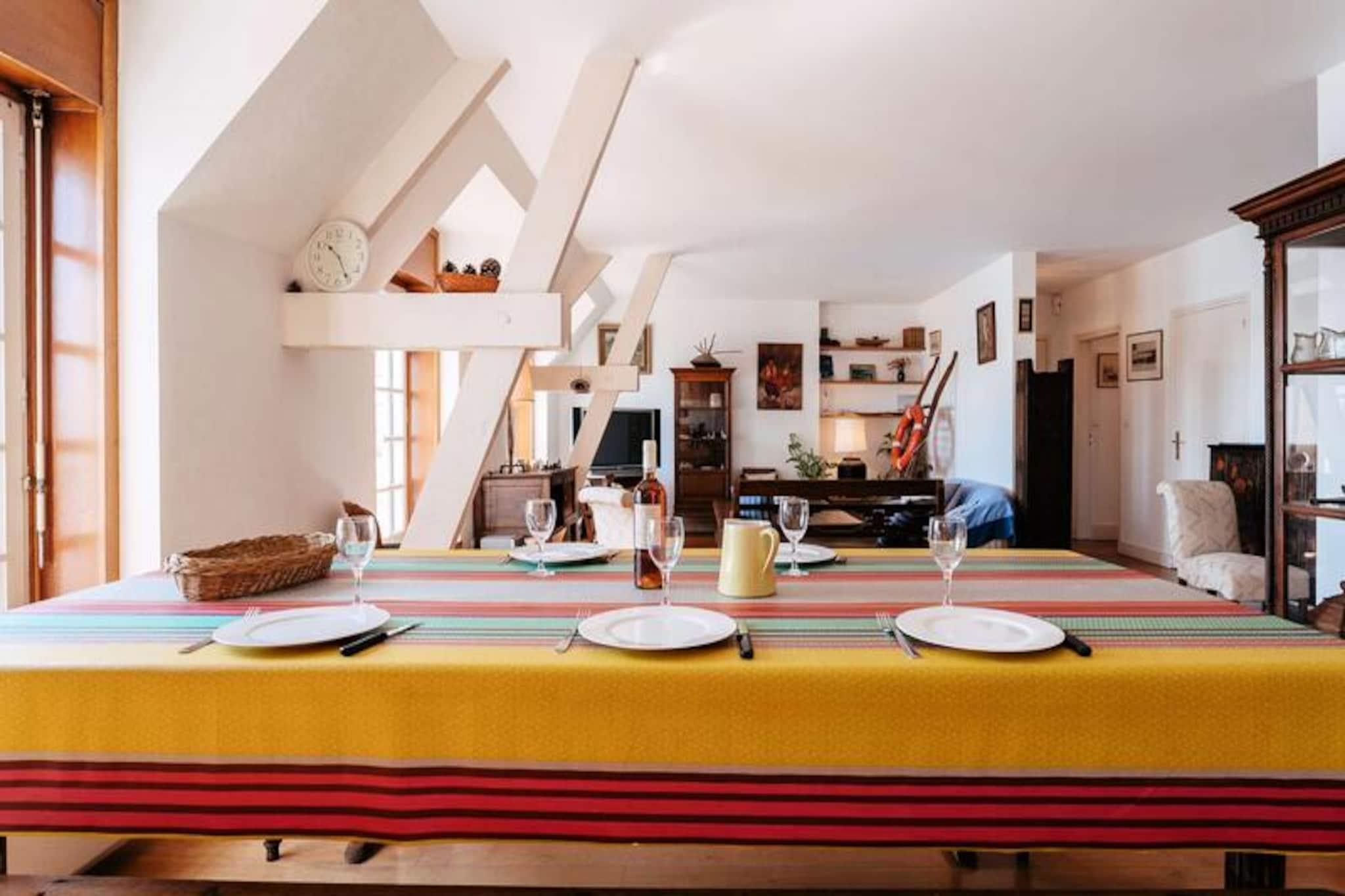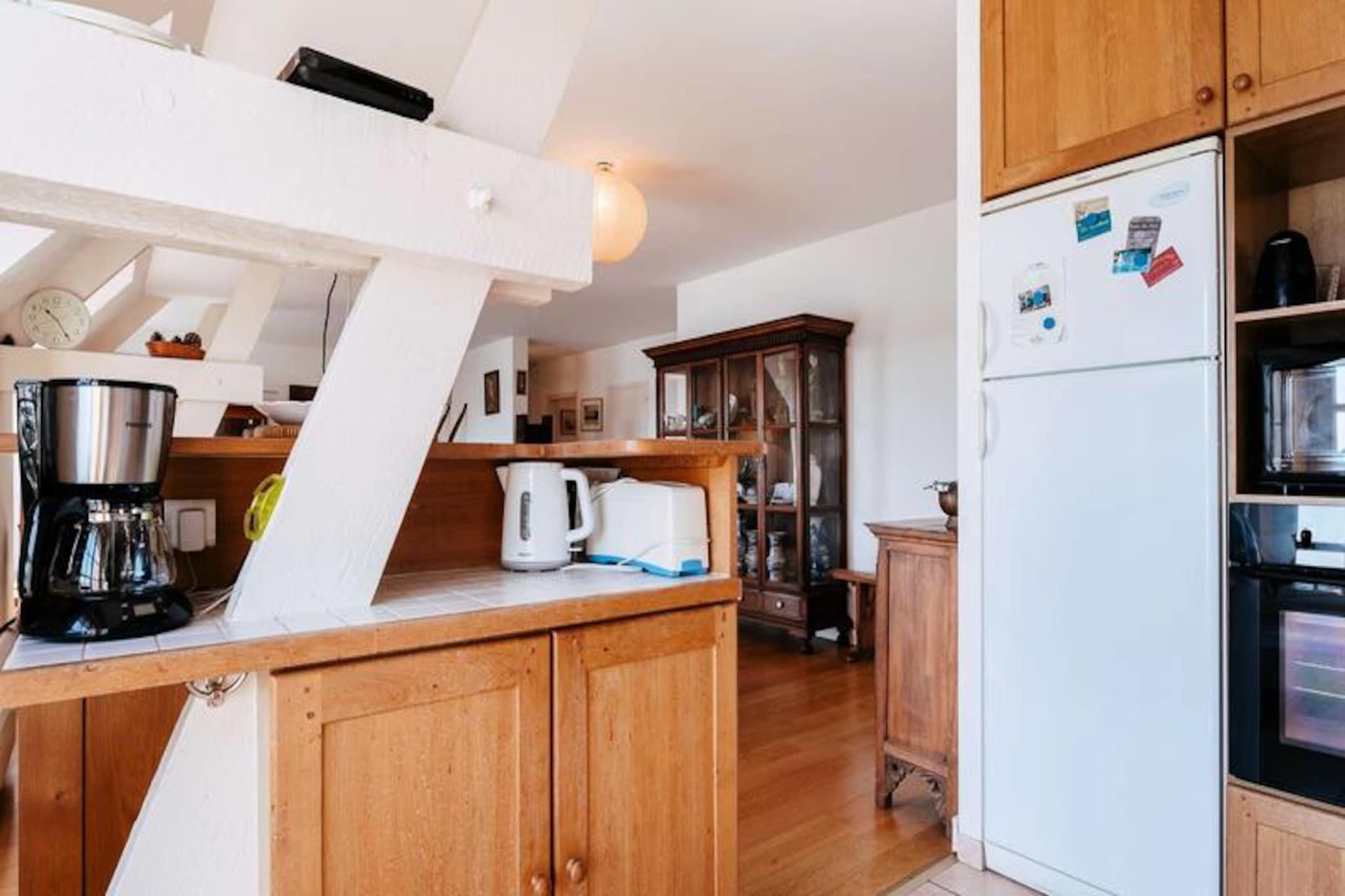 Denne rummelige 4-værelses lejlighed er beliggende i HOTEL LE ROUZIC-boligen og tilbyder en førsteklasses beliggenhed ud mod havnen i La Trinité-sur-Mer. Det kan rumme op til 5 personer, hvilket gør det ideelt for familier eller små grupper. Lejligheden indeholder en stor stue med spiseplads og et opholdsrum, perfekt til at slappe af, mens du nyder udsigten over havnen. Det åbne køkken er fuldt udstyret med moderne faciliteter, herunder køleskab med fryser, ovn, induktions- og gaskomfurer, opvaskemaskine og mikroovn. Der er tre komfortable soveværelser, herunder en dobbeltseng og to enkeltsengsværelser, og to badeværelser med badekar og et separat toilet. Gratis Wi-Fi er tilgængelig for din bekvemmelighed. Boligen er ideelt beliggende med butikker ved foden af ??bygningen og Plage du Port kun 600 meter væk. Det omkringliggende område byder på adskillige muligheder for udforskning og fritid, uanset om du ønsker at nyde stranden, slentre langs havnen eller besøge nærliggende attraktioner. Offentlig parkering er tilgængelig, og boligen er let tilgængelig med elevator. Et kæledyr er tilladt mod et ekstra gebyr, hvilket gør det til et indbydende sted for kæledyrsejere. Udover de komfortable opholdsrum byder lejligheden på et fælles vaskerum med vaskemaskine og tørretumbler. Varme- og energiomkostningerne er inkluderet i lejeprisen i visse perioder, og en valgfri slutrengøring er tilgængelig for ekstra bekvemmelighed. Lejligheden er udstyret med alle de nødvendige faciliteter for et afslappende og behageligt ophold, herunder leje af sengetøj og udstyr til børnepasning efter anmodning.