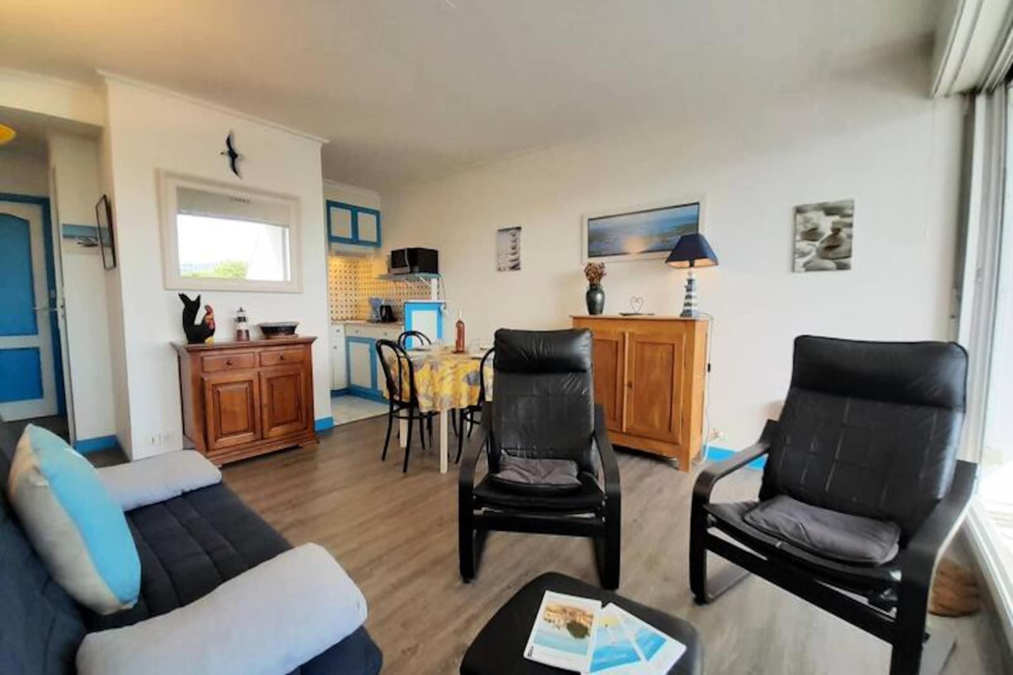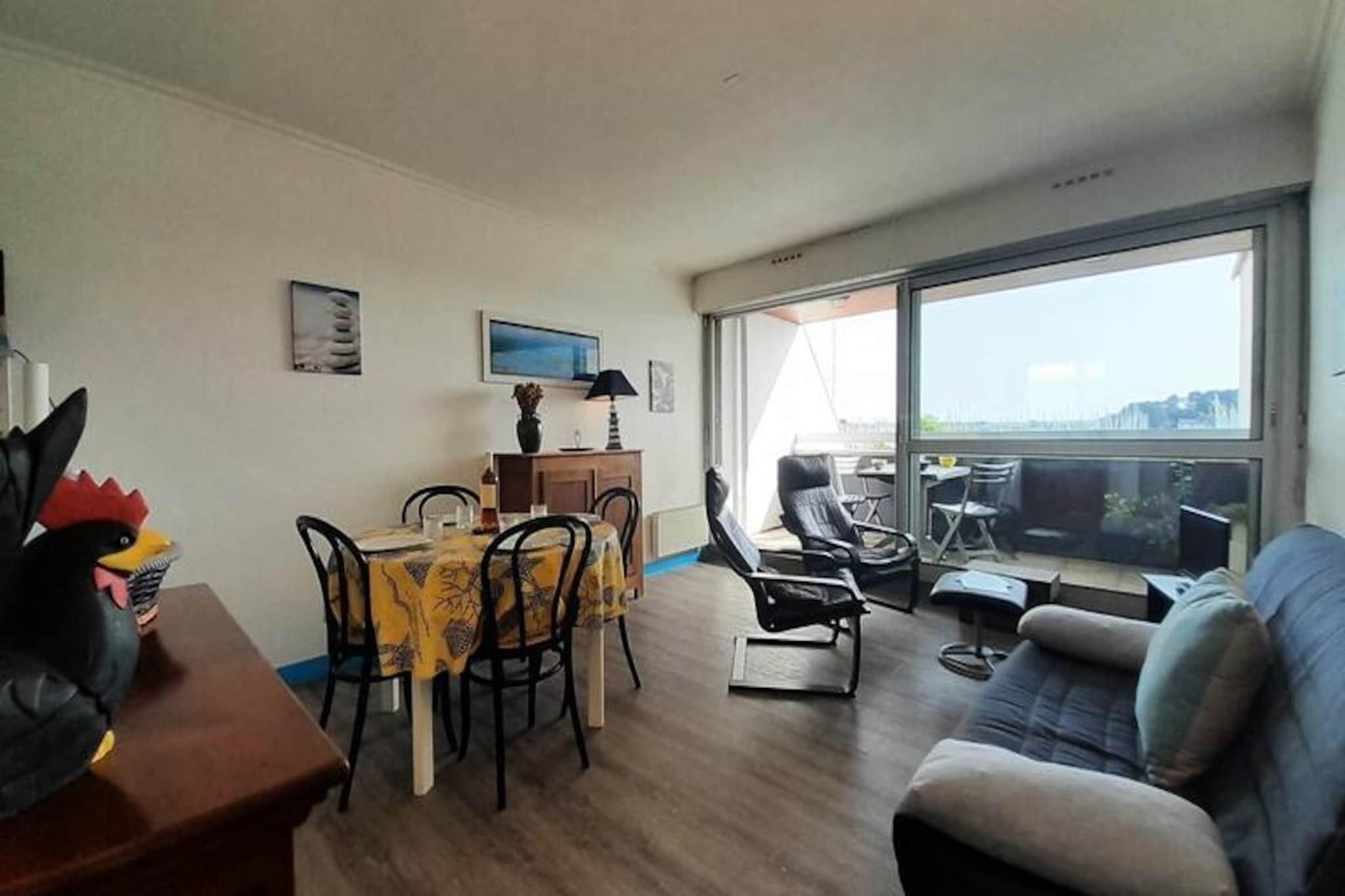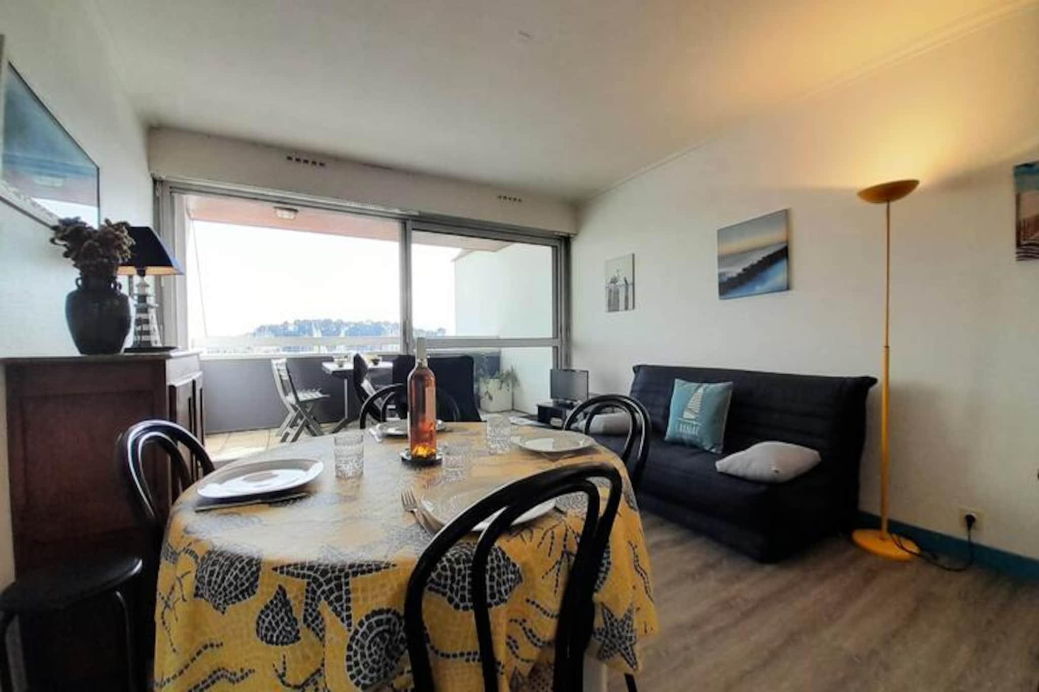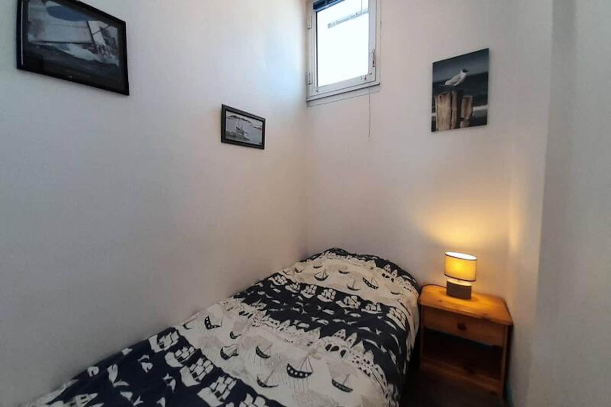 Denne hyggelige 3-værelses lejlighed er ideel til op til 4 personer, og byder på et komfortabelt soveværelse med en dobbeltseng (140 cm) og et kabineværelse med en enkeltseng (90 cm). Stuen byder på en spiseplads og et opholdsområde med et tv og en BZ-sofa, der kan rumme 2 ekstra gæster. Lejligheden er kæledyrsvenlig og tillader et dyr mod et lille tillæg. Et lille badeværelse med toilet er inkluderet, hvilket giver bekvemmelighed for dit ophold. Beliggende i hjertet af Trinité-sur-Mer, tilbyder lejligheden en direkte udsigt over den pulserende havn, hvilket tilføjer et strejf af sindsro og maritim charme til dit ophold. Kun 700 meter fra Plage du Port kan du nemt nyde stranden, mens nærliggende butikker giver mulighed for ubesværet adgang til lokale varer. Uanset om du udforsker havnen eller slentrer gennem de charmerende gader, byder området på et dejligt udvalg af caféer, markeder og restauranter. Lejligheden er veludstyret til et selvforsynende ophold med et effektivt køkken med en 4-brænder elektrisk kogeplade, mikroovn, køleskab, opvaskemaskine og lille fryser. En loggia tilbyder et udendørs rum til at slappe af, mens du nyder udsigten. Yderligere faciliteter inkluderer parkering, valgfri slutrengøring, leje af sengetøj, udstyr til børnepasning og en Wi-Fi-miniboks for ekstra bekvemmelighed.