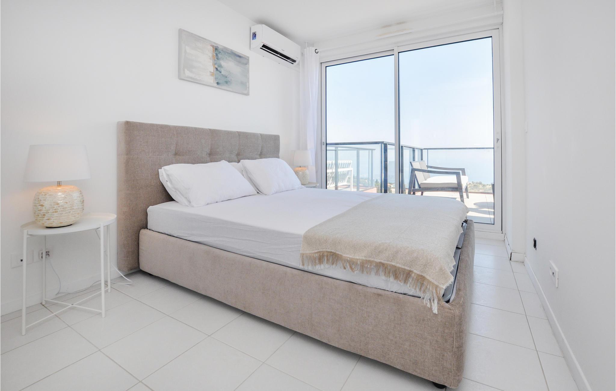 Lejligheden ligger i landregionen til Cote d'Azur og byder på en storslået udsigt over havet. Her kan I slappe af i en stilfuld atmosfære, som er præget af en lys og moderne indretning. Efter en lang dag på farten kan I læne jer tilbage i sofaen og snakke om dagens bedste oplevelser.
