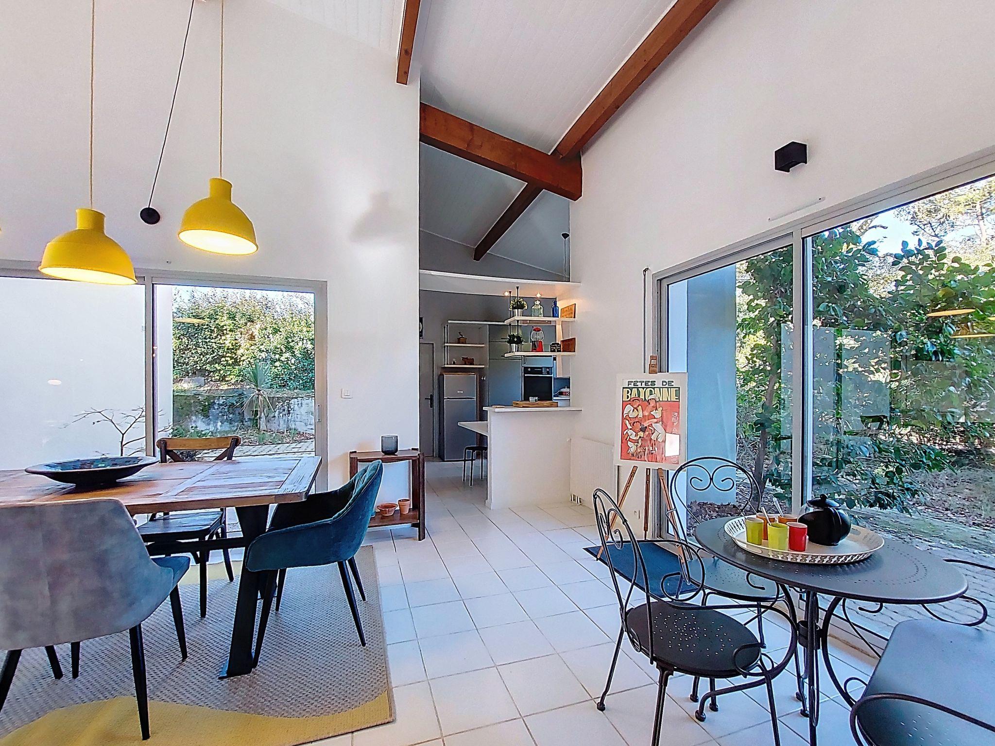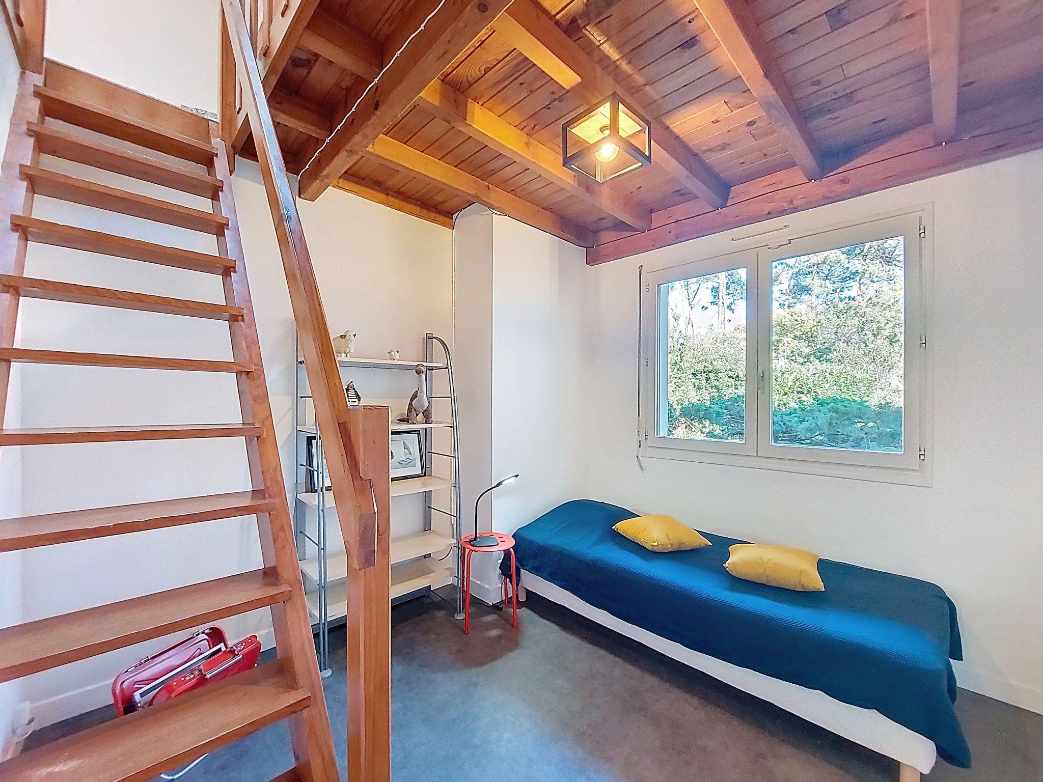 3-room house 120 m2. Comfortable and beautiful furnishings: living/dining room 45 m2. 1 room with 1 bed (90 cm, length 190 cm). Walk-through room with 2 beds (90 cm, length 190 cm). Gallery with 2 beds (90 cm, length 190 cm). Exit to the terrace. Kitchen 17 m2 (oven, dishwasher, 4 induction hot plates, microwave, electric coffee machine). Bathroom, sep. WC. Upper floor: gallery, ceiling height 170 - 190 cm. Large terrace 50 m2, south facing position terrace 20 m2, west facing position. Terrace furniture, deck chairs (3). View of the forest. Facilities: washing machine. Internet (WiFi, extra). Please note: non-smoking house. Smoke alarm. Offer by a private individual according to Art. 155, IV of CGI. 40133 000383 78