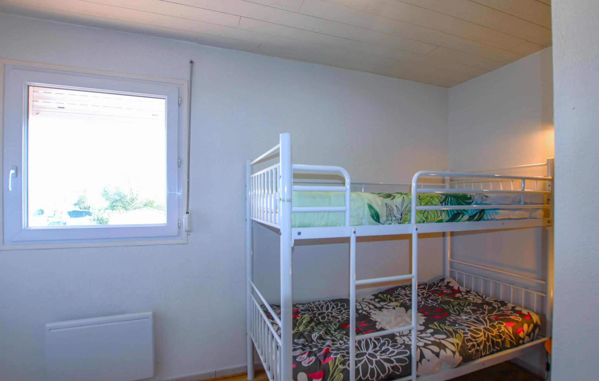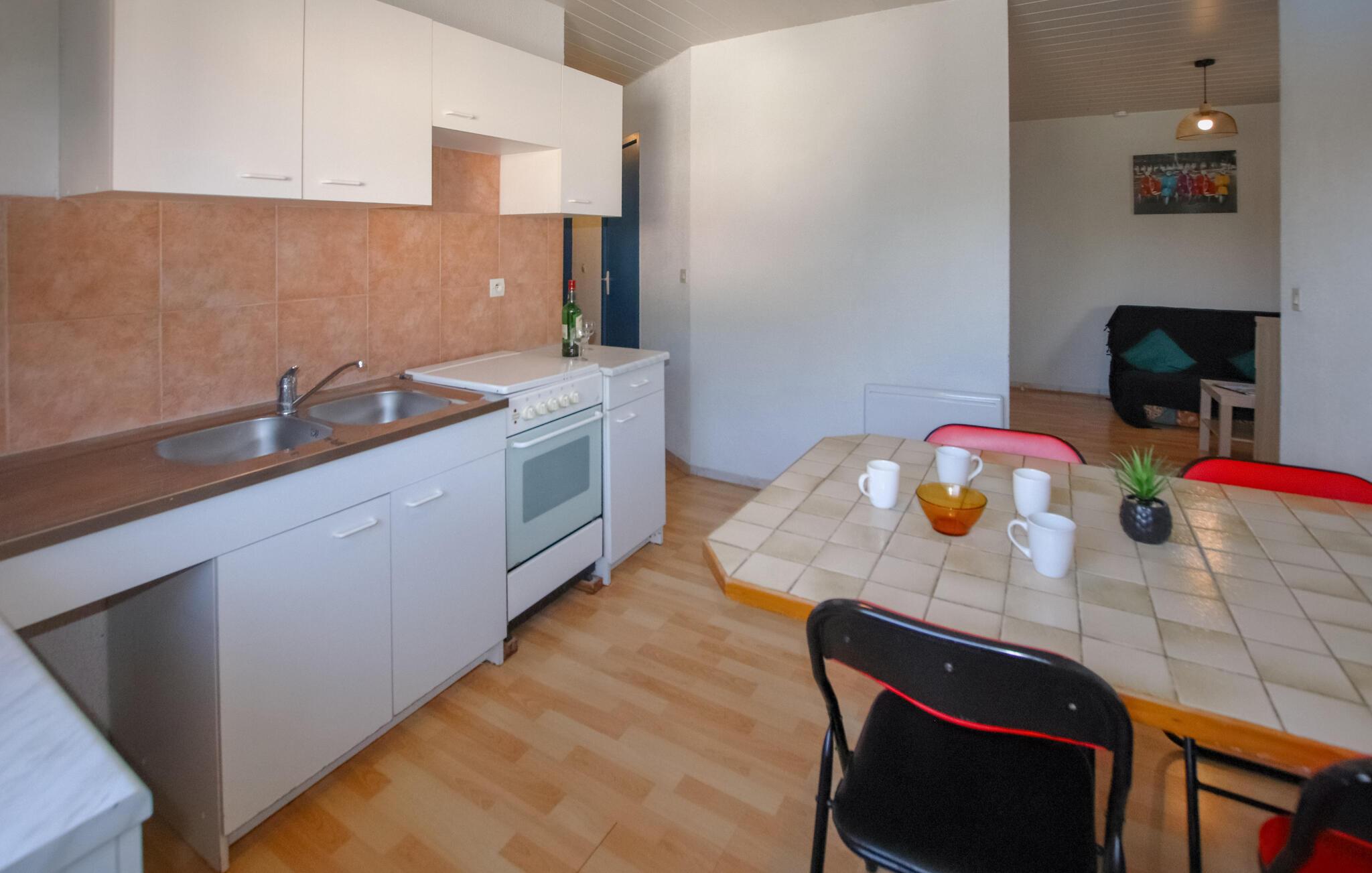 Dette lyse og enkelt møblerede feriehus byder jer velkommen i hjertet af Monts d'Ardèche Regional Naturpark og tilbyder den ideelle base for sjove dage med familien. Tilbered jeres yndlingsretter og planlæg jeres aktiviteter under afslappede måltider. Brug spisebordet til en spilleaften eller forkæl jer selv med et glas vin på sofaen.