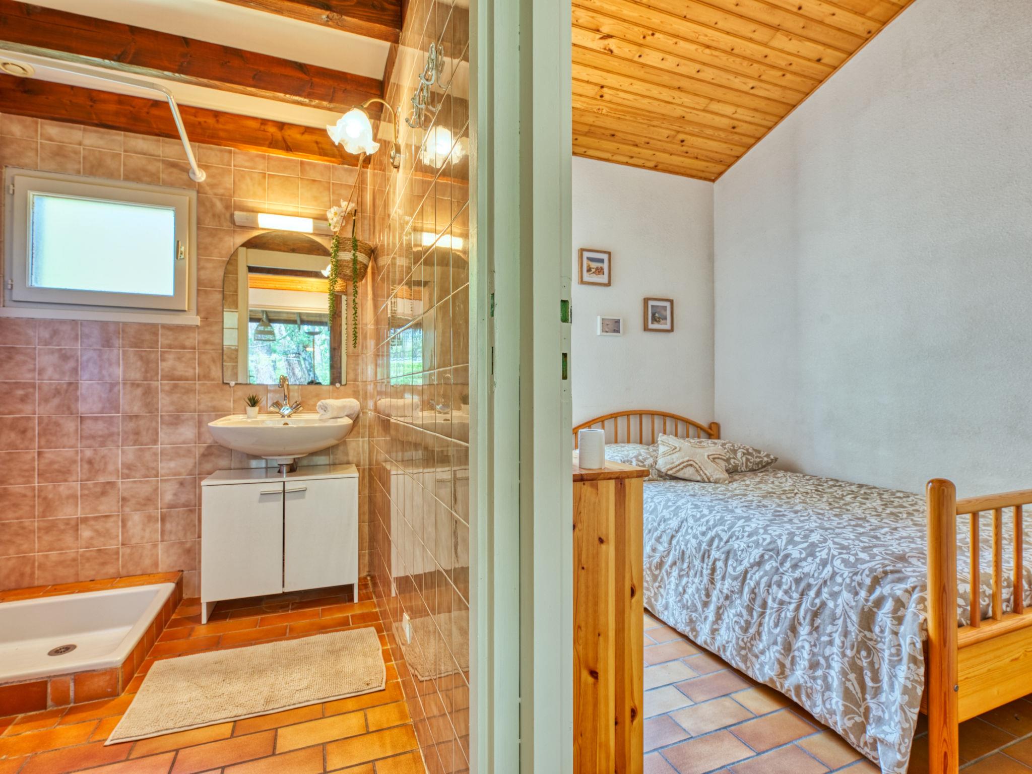 3-room house 40 m2. Beautiful furnishings: living/dining room with 1 sofabed (140 cm, length 190 cm), TV (flat screen). Exit to the garden, to the terrace. 1 room with 1 french bed (140 cm, length 190 cm). Exit to the garden, west facing position. 1 room with 1 bed (90 cm, length 190 cm). Exit to the garden, to the terrace, east facing position. Open kitchen (2 hot plates, oven, dishwasher, toaster, kettle, microwave, electric coffee machine). Shower/WC. Electric heating. Terrace 20 m2, east facing position, large garden. Terrace furniture, barbecue, deck chairs. Beautiful view of the forest. Facilities: washing machine. Internet (WiFi, extra). Parking. Please note: non-smokers only. Maximum 1 pet/ dog allowed. Smoke alarm. Offer by a private individual according to Art. 155, IV of CGI.
