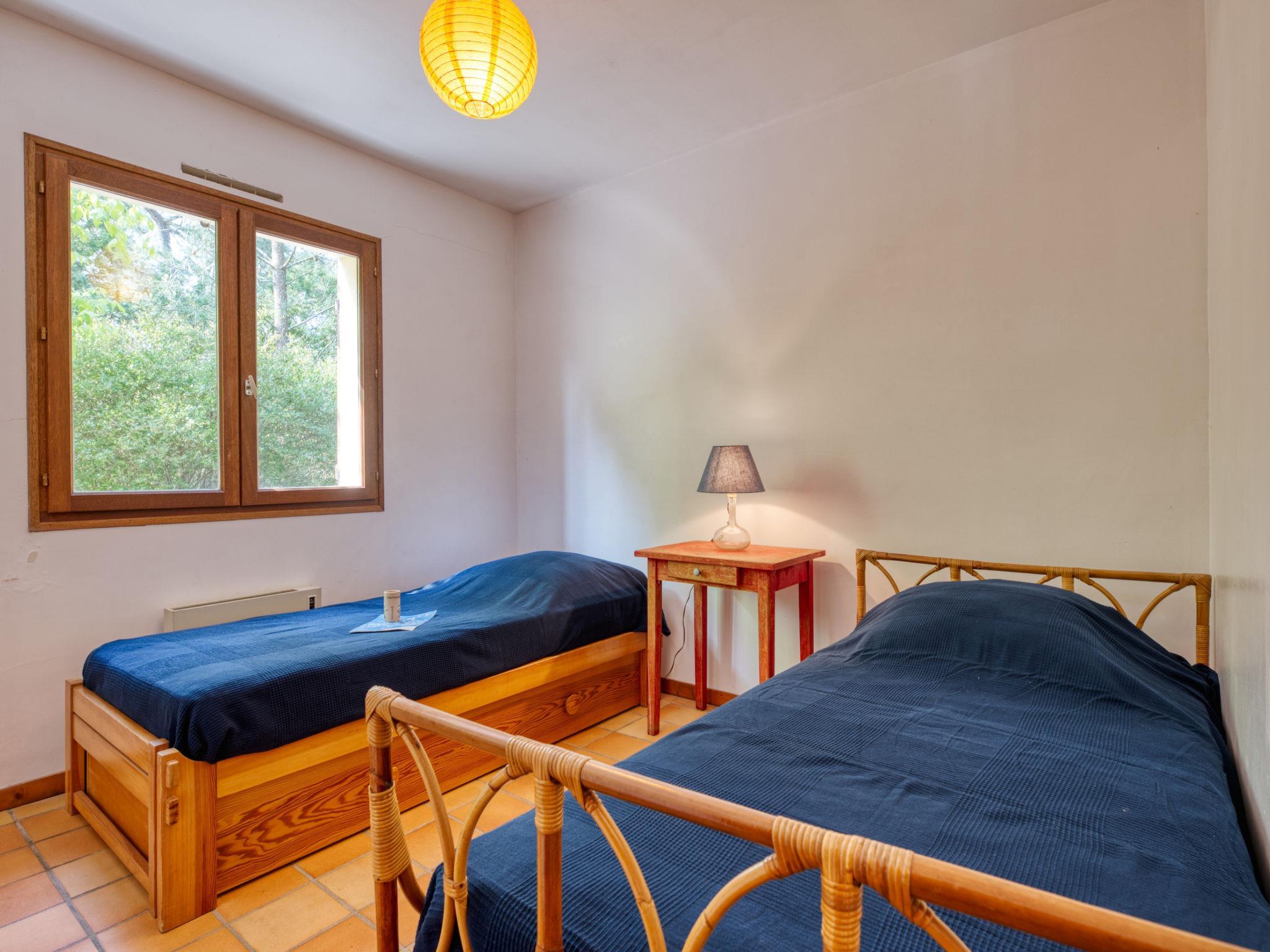 La Grande Escoure 6 km from Lacanau-Océan: Single-family house "Club de la Voile". In a quiet position, 6 km from the sea, 50 m from the lake. Private: natural state property 900 m2 (fenced), parking on the premises. Supermarket 7 km, restaurant 3 km, bus stop "La grande Escoure" 300 m, sandy beach "Lacanau Océan" 9 km, bathing lake "Lac de Lacanau" 100 m. Golf course (18 hole) 4 km, surf school 8 km, tennis 4 km. Nearby attractions: Dune du Pilat 90 m, Bordeaux 60 m, Saint Emilion 98 m, Cap Ferret 48 m. Well-known lakes can easily be reached: Moutchic 100 m, Maubuisson 13 km. Hiking paths: Vélodyssée 5 km. Please note: car recommended. The keys‘ handover takes place by the agency Interhome in Lacanau, 8 km.