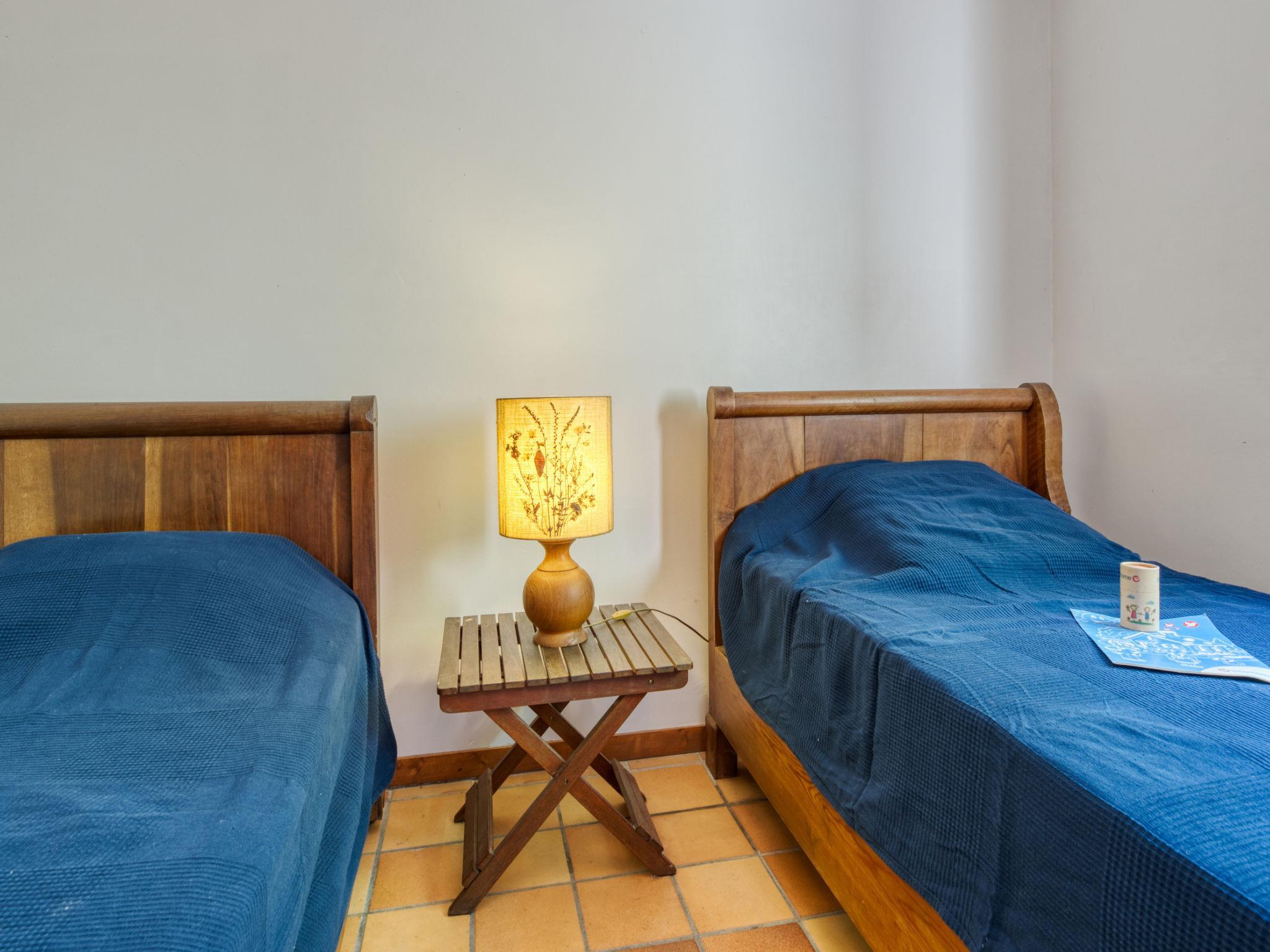 5-room house 100 m2. Living/dining room with open-hearth fireplace and electric heating. Exit to the terrace. 2 rooms, each room with 1 french bed (140 cm, length 190 cm). 2 rooms, each room with 2 beds (90 cm, length 190 cm). Open kitchen (4 hot plates, dishwasher, combination microwave). 2 showers, 2 sep. WC's. Terrace partly roofed. Terrace furniture. Facilities: washing machine. Internet (WiFi, free). Please note: non-smokers only. Smoke alarm.