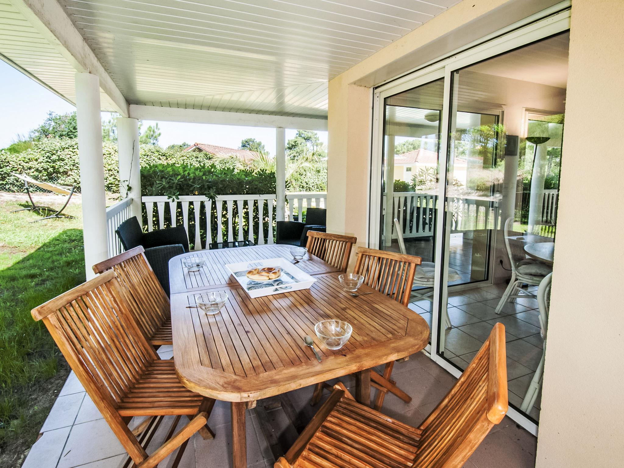 Single-family house "Eden Parc". Outside the resort, 2.5 km from the centre, 3 km from the lake, on the golf course. Private: garden 1'400 m2 (fenced), swimming pool (5 x 9 m, depth 30 - 190 cm, seasonal availability: 01.Jun. - 30.Sep.) with internal staircase and alarm system. Parking on the premises. Shop 2.5 km, grocery 2.5 km, supermarket 4 km, restaurant 250 m, bus stop "Le Huga" 3.3 km, sandy beach 2.5 km. Golf course (18 hole) 500 m, tennis, indoor tennis centre 750 m, riding stable 15 km. Nearby attractions: Parcours Aventure 1 km.
