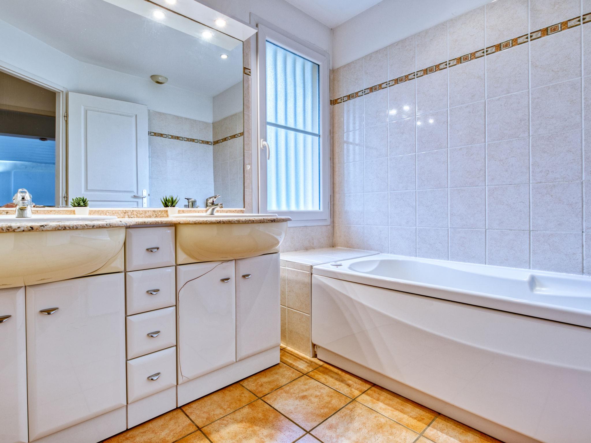 4-room villa 108 m2. Modern furnishings: large living/dining room. 1 large room with Dressing room with 1 french bed (160 cm, length 200 cm), bathroom and separate WC. 1 room with 2 beds (90 cm, length 200 cm). 1 room with 1 bed (160 cm, length 200 cm) with separate WC and shower. Open kitchen (oven, dishwasher, 3 induction hot plates, toaster, kettle, microwave, electric coffee machine, Capsules for coffee machine (Senséo) extra). Large terrace 40 m2, west facing position and north-west facing position. Terrace furniture, deck chairs (4). Facilities: washing machine, dryer. Internet (WiFi, free). Parking (roofed). Please note: non-smokers only. Maximum 1 pet/ dog allowed. Smoke alarm. Offer by a private individual according to Art. 155, IV of CGI.