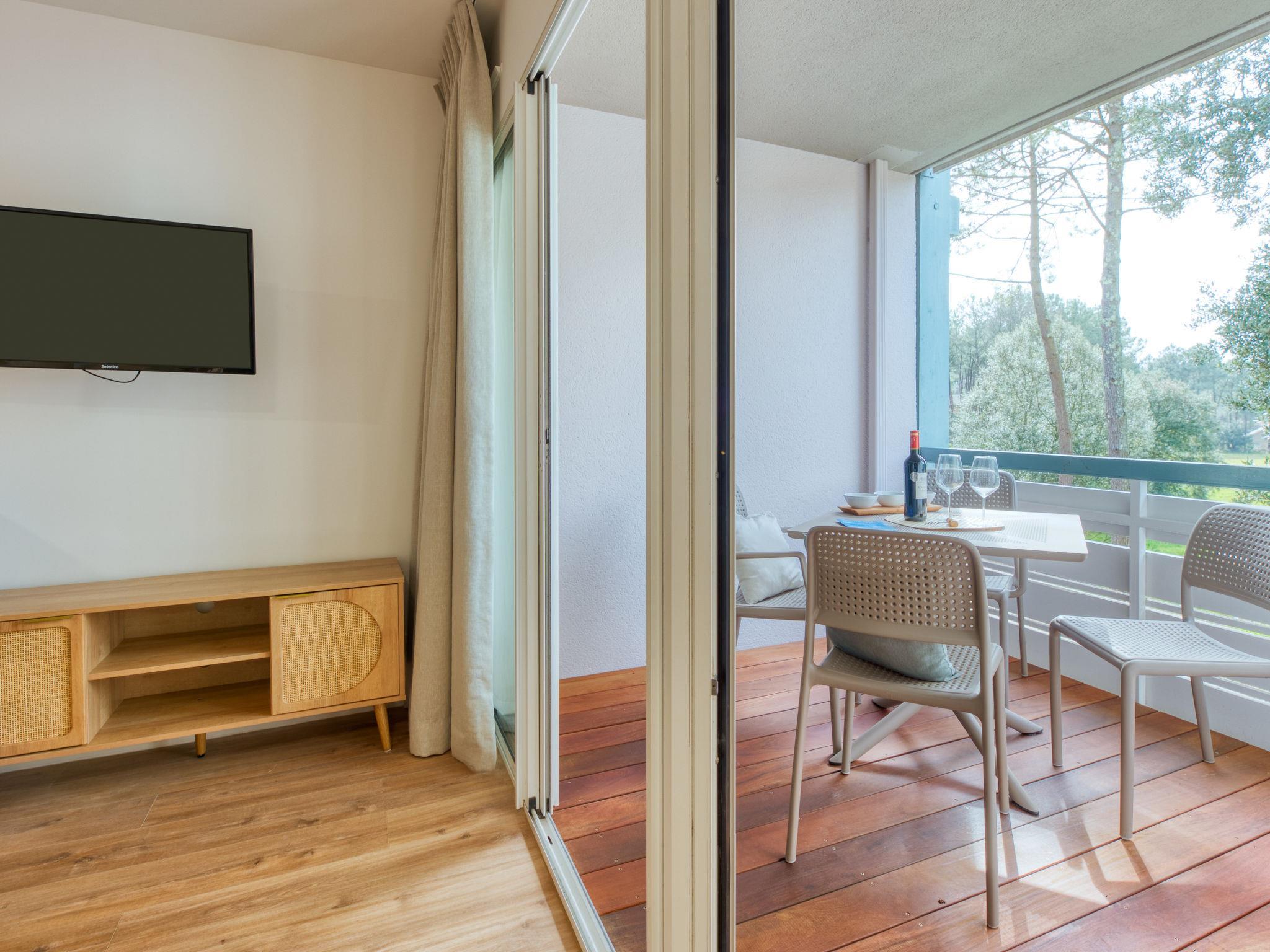 Due to water restrictions implemented in response to drought conditions in certain regions of France, please be aware that the swimming pool may remain closed until the legal restrictions allowing the filling and replenishment of water in private swimming pools and ponds are lifted. For official information on measures to limit or suspend water usage in France, please refer to Propluvia - Accueil (developpement-durable.gouv.fr). Aparthotel "Village Cheval Spa Résidences". On the outskirts, 3 km from the centre of Lacanau Océan, 3 km from the sea, 2.5 km from the lake, in the woods. For shared use: natural state property, swimming pool heated, fenced (10 x 18 m, depth 90 - 170 cm, seasonal availability: 15.May. - 30.Sep. pool opening hours: 10:00-20:00). Table tennis, boccia, children's playground. In the complex: restaurant, bar, sauna (extra). Massage (extra). Spa area (extra), washing machine, tumble dryer (for shared use, extra). Parking on the premises. Shop 3 km, supermarket 3.5 km, restaurant 20 m, bus stop "Marie Curie" 2.1 km, sandy beach "Centrale" 3 km, bathing lake "Le Moutchic" 2.5 km. Golf course (9 hole) 300 m, tennis 1 km, riding stable 13 km. Nearby attractions: Dune du Pilat 60 km, Bordeaux 60 km, Saint Emilion 60 km. Well-known lakes can easily be reached: Le Moutchic 2.5 km, Maubuisson 15 km.