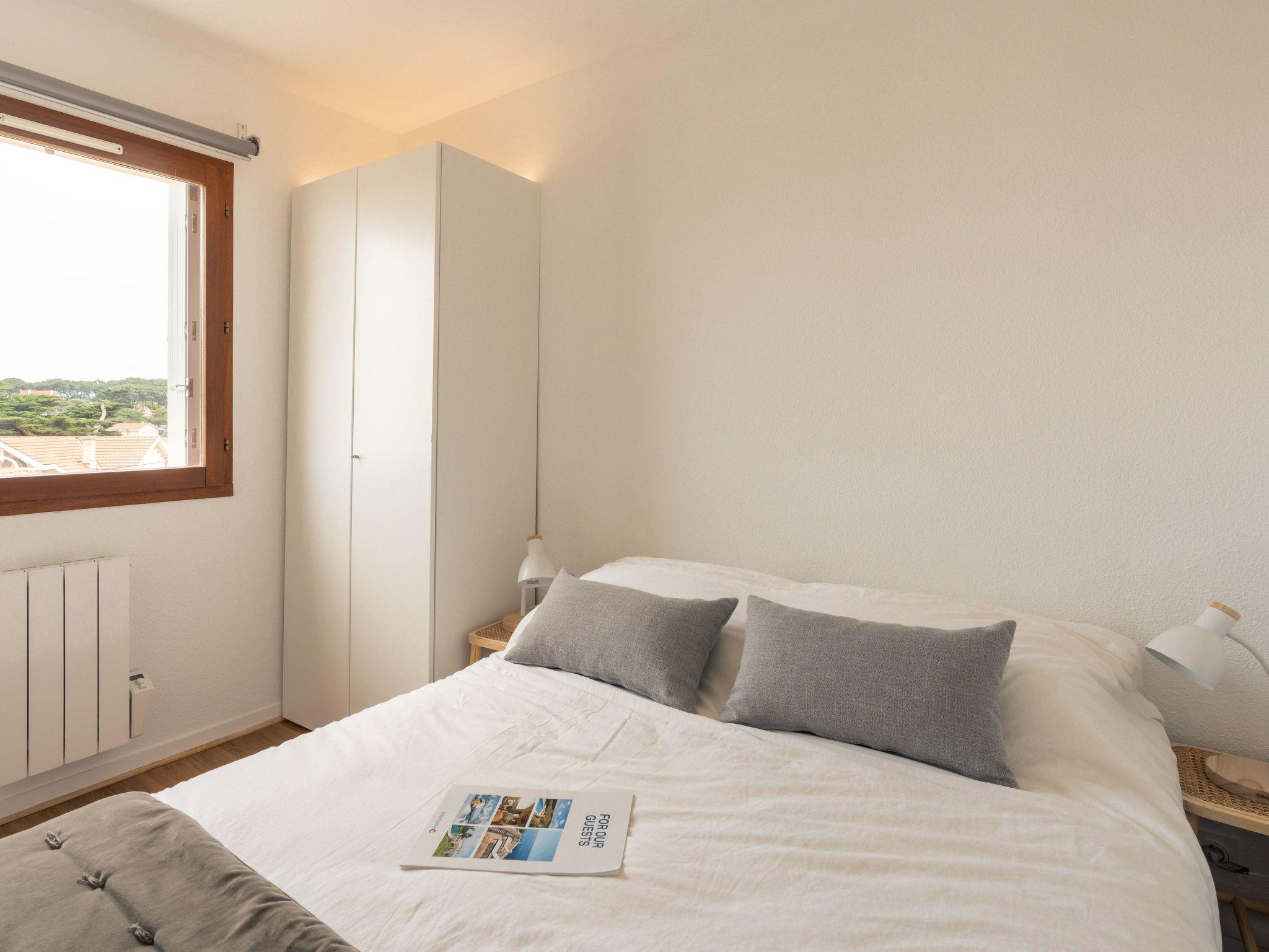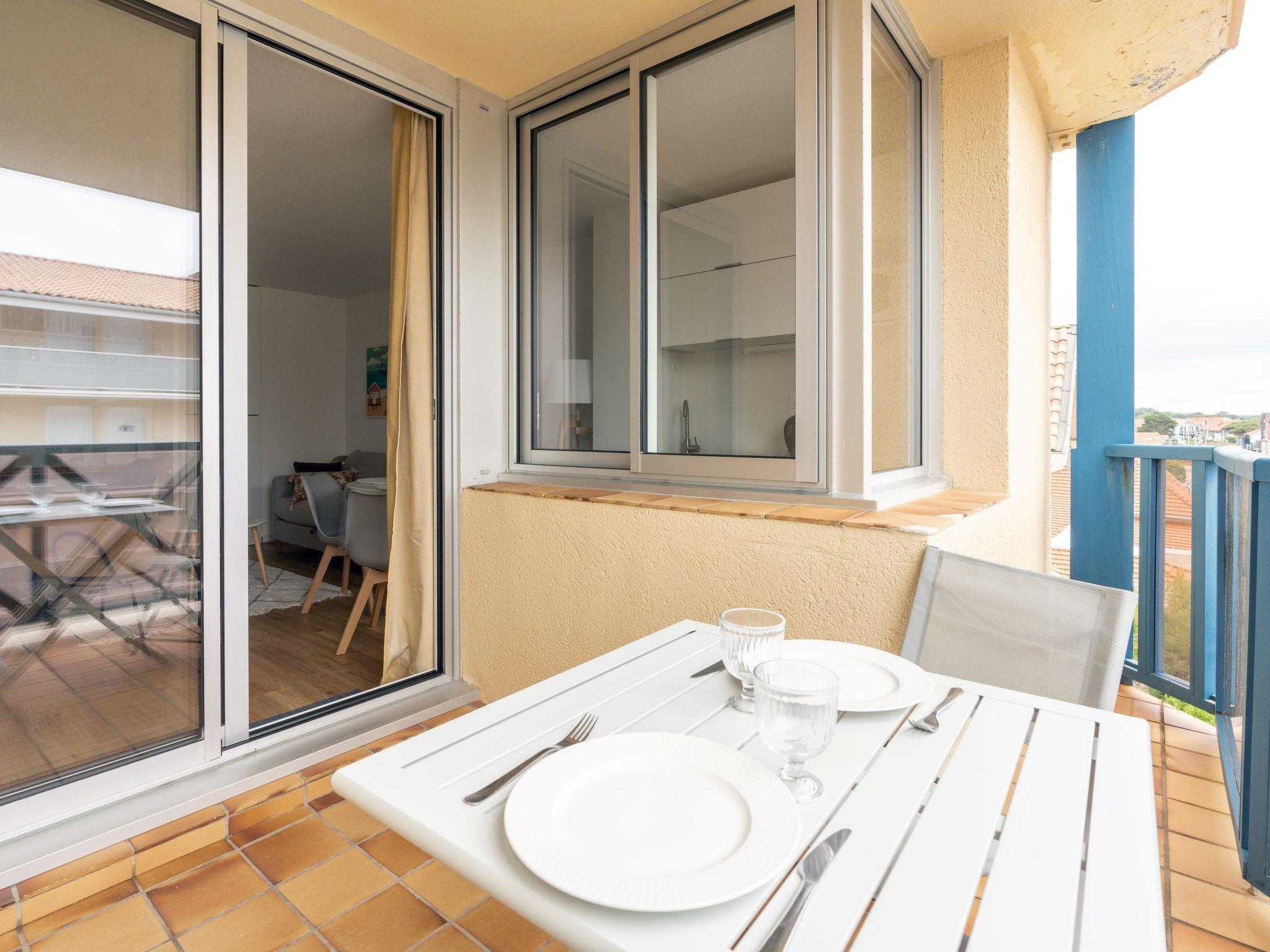 Lacanau Océan: Residence "Les Hélianthes", 3 storeys. In the centre of Lacanau-Océan, in a central, busy position, 100 m from the sea, 6 km from the lake, 100 m from the beach. In the complex: lift. Shop, supermarket 100 m, restaurant 10 m, bar 20 m, bicycle rental 50 m, bus stop "Salle l'Escoure Océan" 450 m. Golf course (18 hole) 4 km, surf school 100 m, tennis 3 km, riding stable 4 km, cycle lane 200 m. Nearby attractions: Bordeaux 60 km, Saint Emilion 85 km, Dune du Pyla 80 km. Hiking paths: Vélodyssée 500 m. Please note: entertainment in the season.