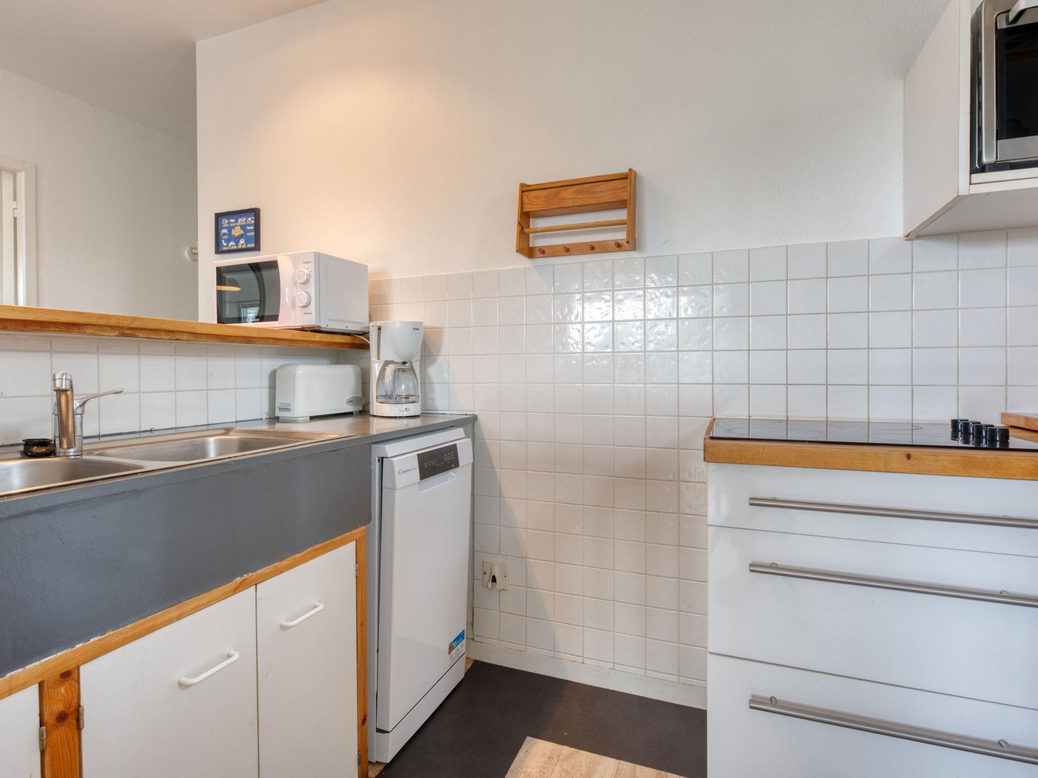 3-room chalet 60 m2. Living/dining room with 1 double sofabed. 2 rooms, each room with 1 french bed (140 cm, length 19 cm). Open kitchen (4 hot plates, mini-oven, dishwasher). Shower, sep. WC. Electric heating. Terrace 16 m2, south-east facing position. Terrace furniture. Facilities: Internet (WiFi, extra). Please note: non-smokers only. Maximum 1 pet/ dog allowed. Smoke alarm.