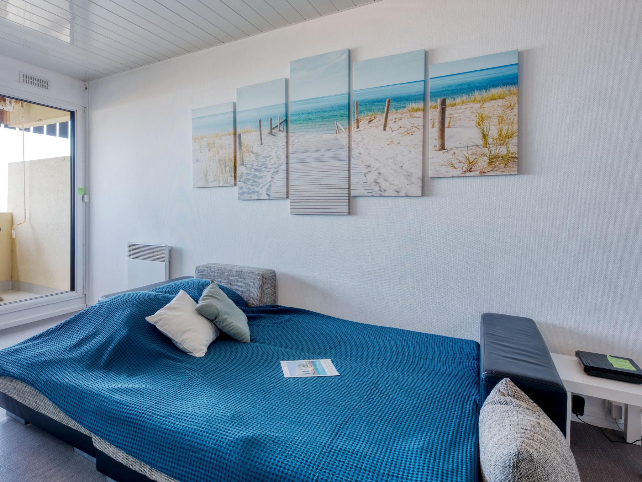 2-room apartment 37 m2 on 2 levels on 1st floor. Comfortable furnishings: 1 room with 1 french bed (140 cm, length 190 cm). On the lower ground floor: living/dining room with 1 double sofabed (140 cm, length 200 cm), TV (flat screen). Exit to the balcony. Kitchen (2 hot plates, toaster, kettle, microwave, electric coffee machine). Shower, sep. WC. Heating. Balcony 7 m2, west facing position. Balcony furniture. Marvellous view of the ocean. Facilities: washing machine, dryer. Internet (WiFi, free). Parking space n 39. Please note: non-smokers only. Smoke alarm. Offer by a private individual according to Art. 155, IV of CGI.