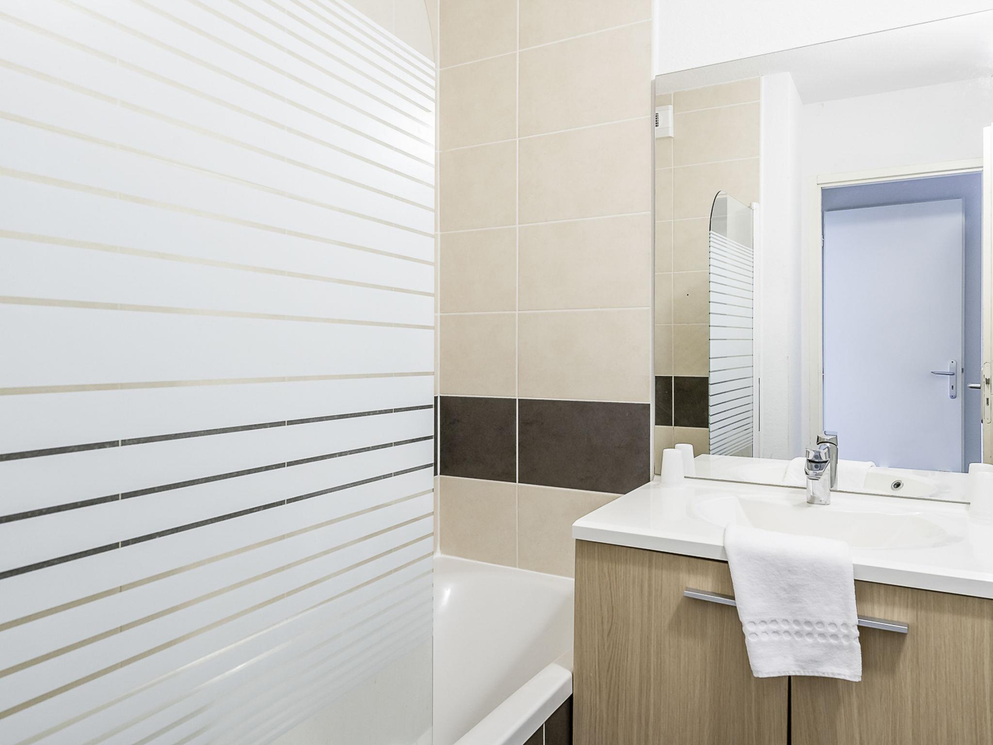 Resort "Les Rives du Lac". 11 houses in the residence. 37 apartments in the residence. 6 km from the centre of Lacanau, 6 km from the centre of Lacanau-Océan, 55 km from the centre of Bordeaux, 7 km from the sea, 150 m from the lake. For shared use: property with plants and trees, swimming pool heated (9 x 6 m, depth 120 cm, seasonal availability: 01.May. - 24.Sep.). Boccia, terrace. In the complex: reception, WiFi, sauna, steam room, washing machine (extra), tumble dryer (for shared use, extra). Parking (limited number of spaces). Supermarket 6 km, restaurant 200 m, sandy beach "Lac de Lacanau/Plage Le Moutchic" 400 m. Golf course (18 hole) 4 km, riding stable 4 km. Please note: the photograph shows a typical example. The holiday properties may differ in living space, floorplan, equipment and furnishing. Access to the sauna, steam bath permitted from age 18 only.