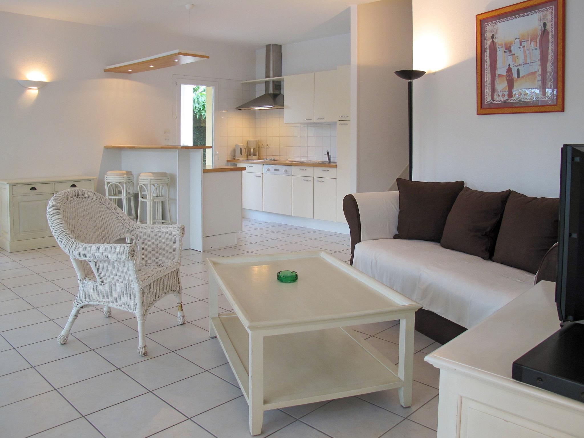 "Eden Parc Golf de l'Ardilouse V6I", 4-room villa 95 m2. Beautiful furnishings: living/dining room with panoramic window with dining table and satellite TV (flat screen). Exit to the terrace. 1 room with 1 french bed (160 cm, length 200 cm), bathroom and double hand-basin. 2 rooms, each room with 2 beds (90 cm, length 190 cm). Exit to the terrace. Open kitchen (oven, dishwasher, 4 ceramic glass hob hotplates, toaster, kettle, microwave, freezer, electric coffee machine) with bar. Shower, 2 sep. WC's. Electric heating. Terrace roofed. Terrace furniture, barbecue (portable), deck chairs (3), box-room. Facilities: washing machine, dryer, children's high chair, baby cot (extra). Please note: non-smoking house. Maximum 2 pets/ dogs allowed. Smoke alarm.