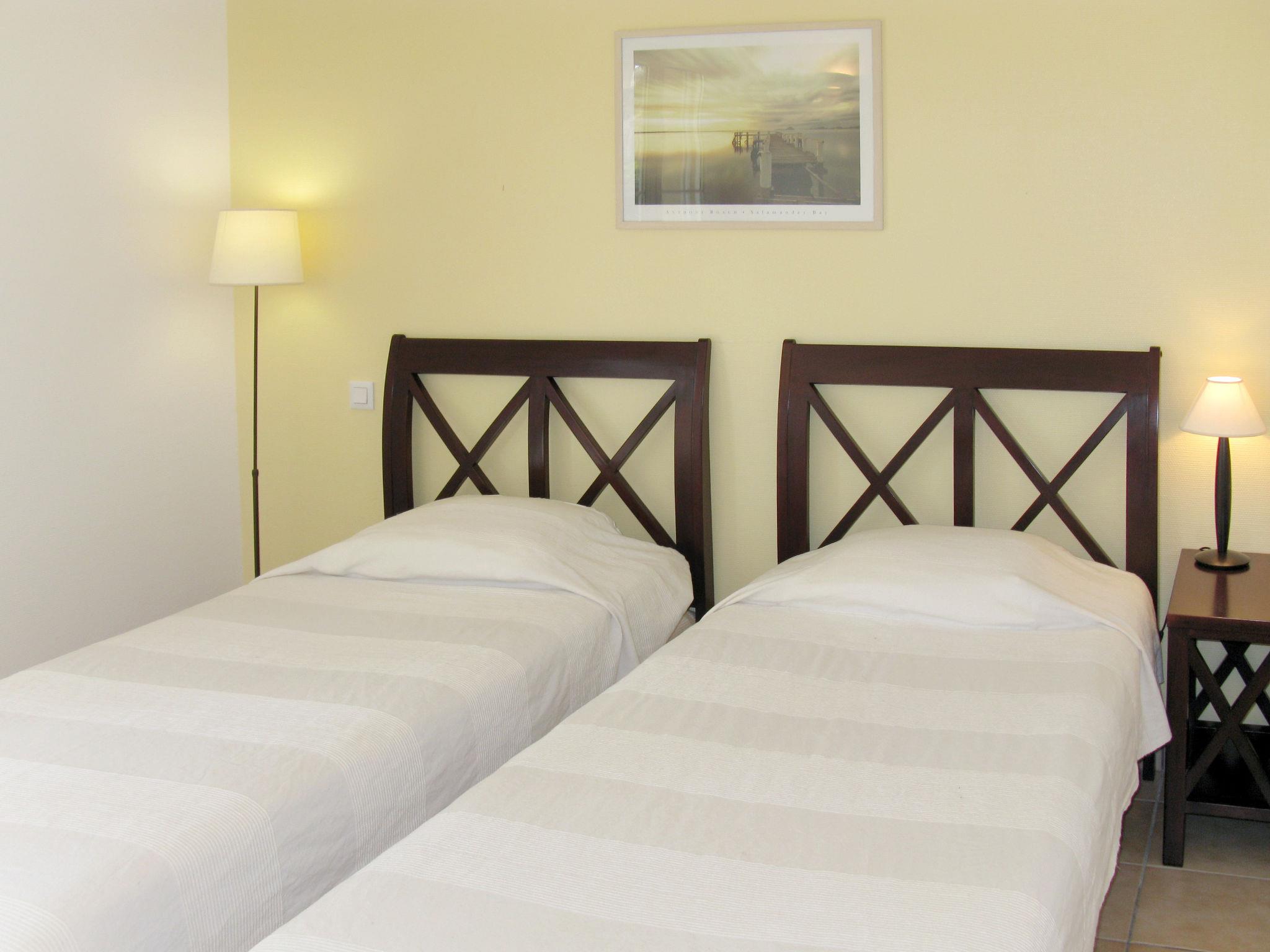 Beautiful, comfortable resort "Atlantic Green". 39 houses in the residence. 3.5 km from the centre of Lacanau-Océan, 12 km from the centre of Lacanau, 60 km from the centre of Bordeaux, on a slope, 3.5 km from the sea. Private: property 1'200 m2 with lawn and trees, swimming pool (8 x 4 m, seasonal availability: 15.Apr. - 15.Oct.). Terrace, roofed, parking. Shop 3.5 km, bus stop "Marie Curie" 2.9 km, sandy beach 3.5 km, lake de Lacanau 3.5 km. Golf course (18 hole) 500 m. Please note: the photograph shows a typical example. The holiday properties may differ in living space, floorplan, equipment and furnishing. Each type of house can have one or two floors. Internet connection is via mobile WIFI hotspot (rental).