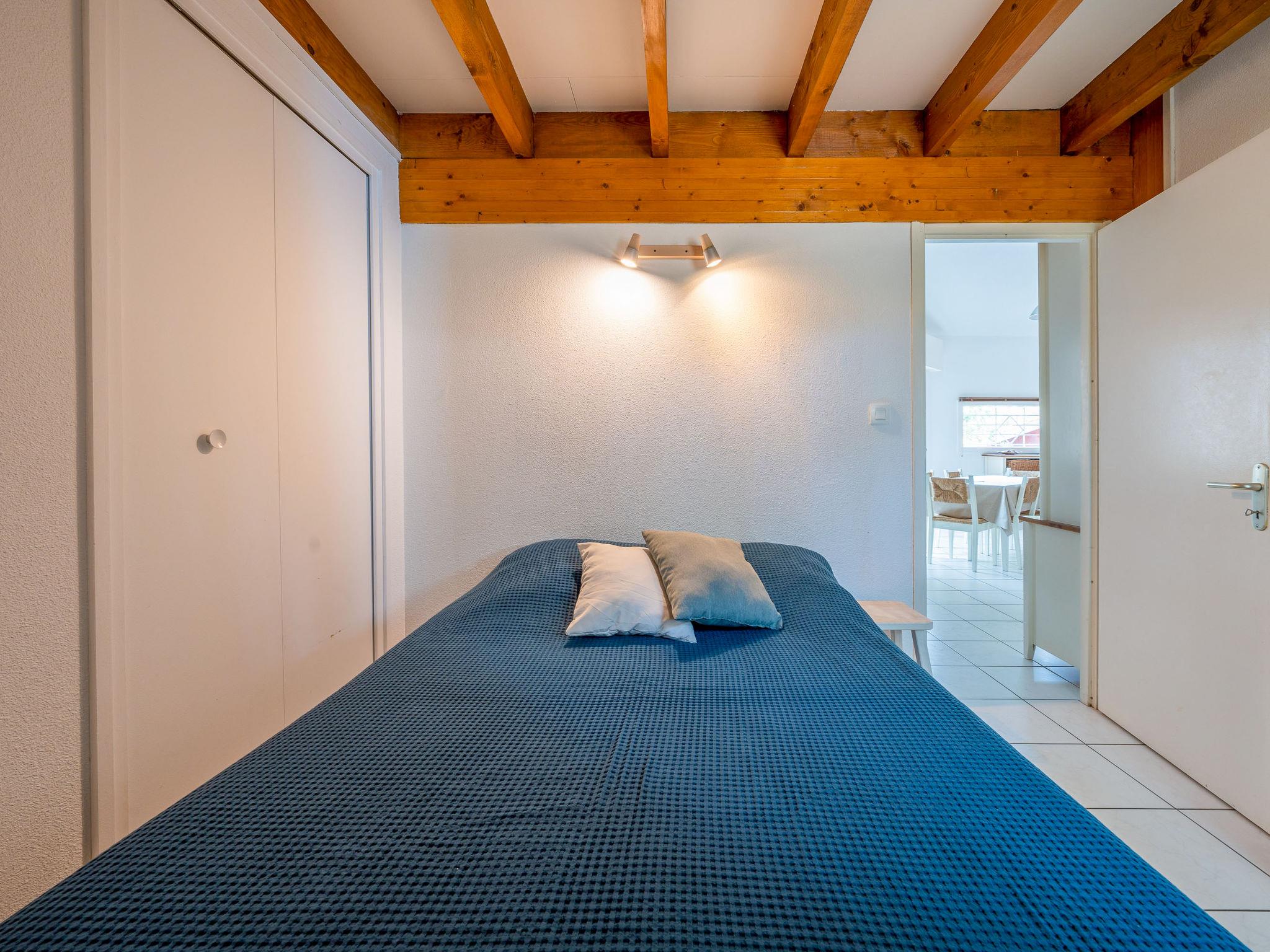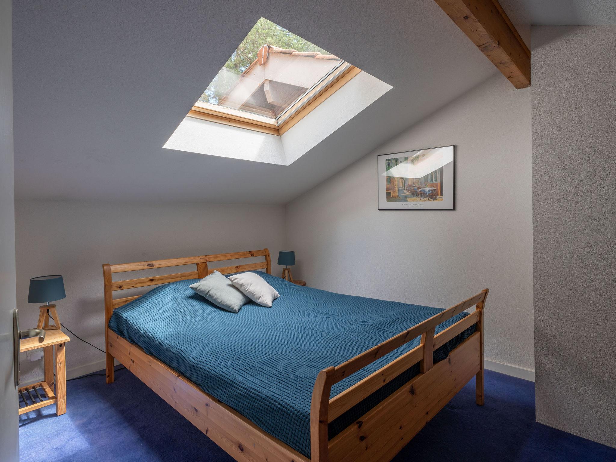 4-room terraced house 70 m2 on 2 levels. Comfortable furnishings: living/dining room with open-hearth fireplace and flat screen. 1 room with 1 french bed. Large kitchenette (4 hot plates, oven, dishwasher, 4 ceramic glass hob hotplates, electric coffee machine). Shower/WC. Upper floor: 1 room with 1 pull-out bed (2 pers.). 1 room with 1 french bed. Bath/WC. Electric heating, air-conditioning. Terrace, west facing position, patio. Terrace furniture, deck chairs. Facilities: washing machine, iron. Internet (WiFi, free). Parking space n 18 (2 cars). Please note: non-smokers only. Maximum 1 pet/ dog allowed. Smoke alarm.