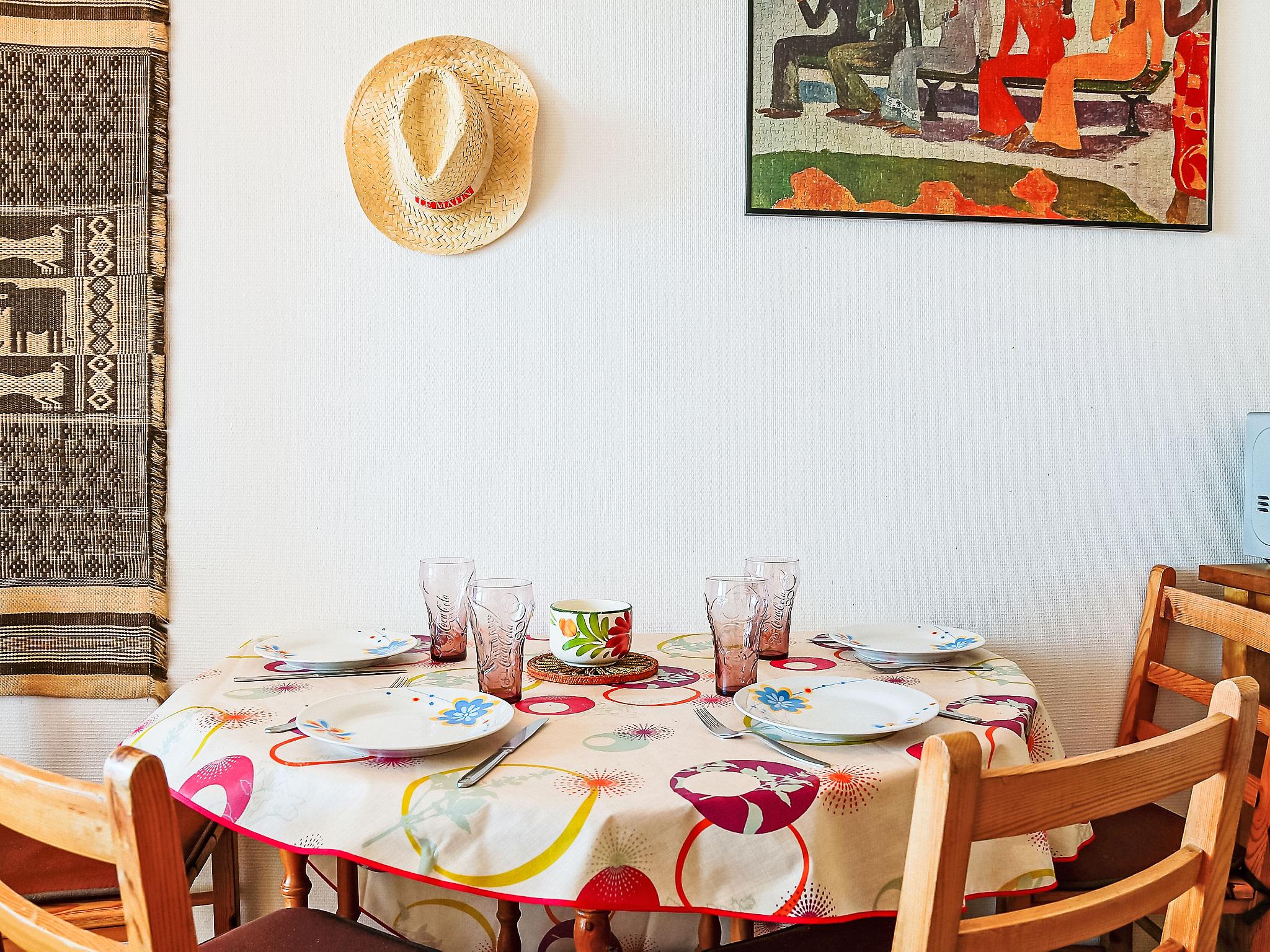 2-room apartment 30 m2 on 1st floor. Living/dining room with 1 double sofabed (140 cm), TV. 1 room with 1 pull-out bed (2 pers.). Kitchenette (oven, 4 ceramic glass hob hotplates, microwave). Bathroom, sep. WC. Heating. Balcony, north-west facing position. Terrace furniture. View of the sea. Facilities: Internet (WiFi, extra). Parking space n 16. Please note: non-smokers only. Maximum 1 pet/ dog allowed. Smoke alarm.