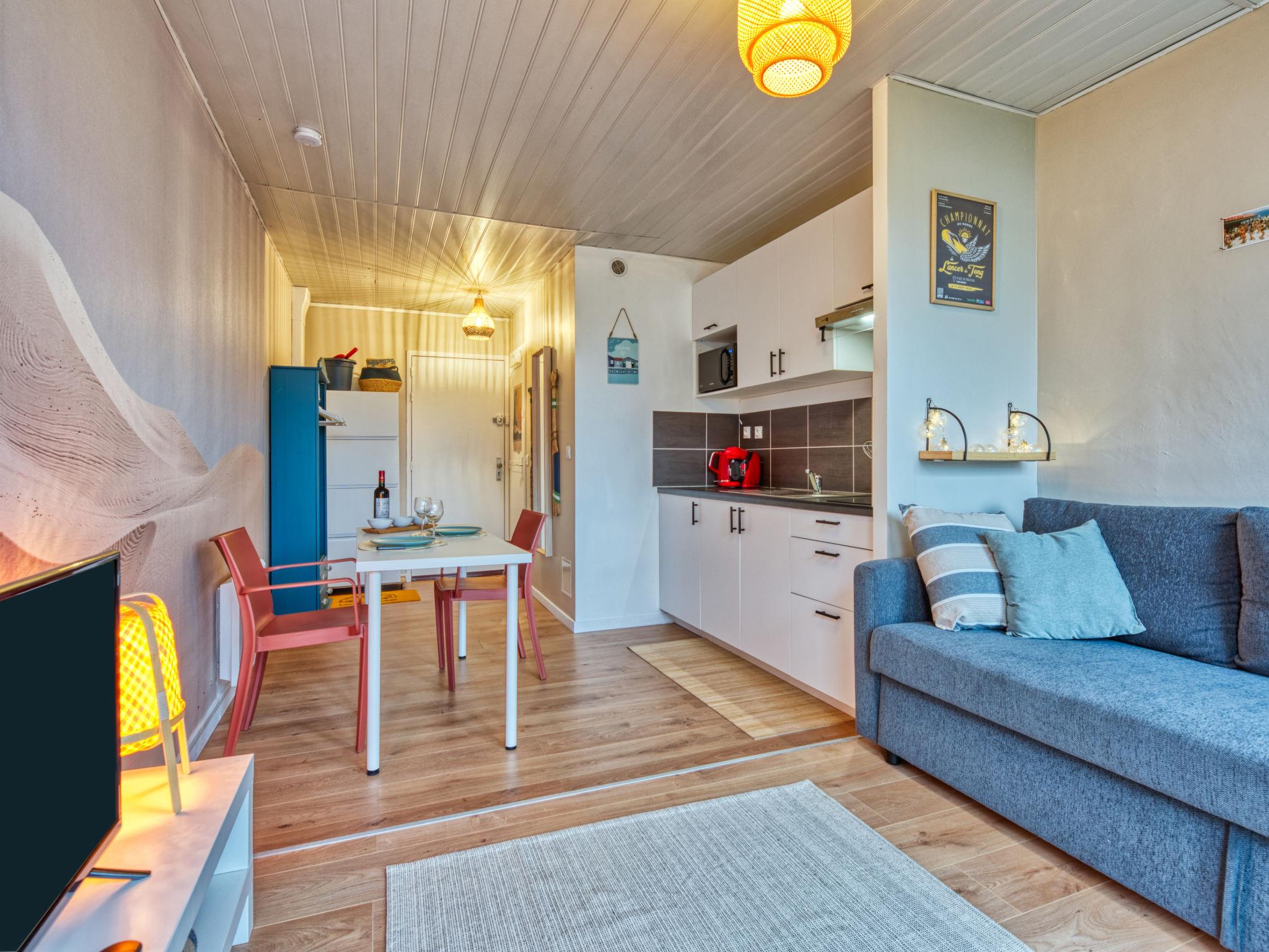 1-room studio 20 m2, on the ground floor. Comfortable furnishings: living/dining room with 1 double sofabed (140 cm, length 190 cm), TV (flat screen). Kitchen (2 induction hot plates, toaster, kettle, microwave, electric coffee machine, Capsules for coffee machine (Tassimo) extra). Shower/WC. Electric heating. Partial view of the ocean. Facilities: Internet (WiFi, extra). Please note: non-smokers only. Smoke alarm. Offer by a private individual according to Art. 155, IV of CGI.
