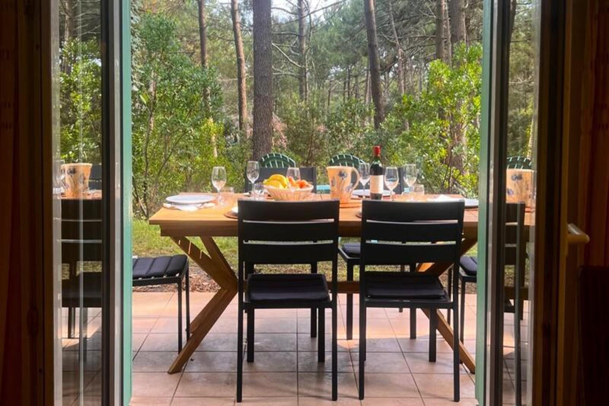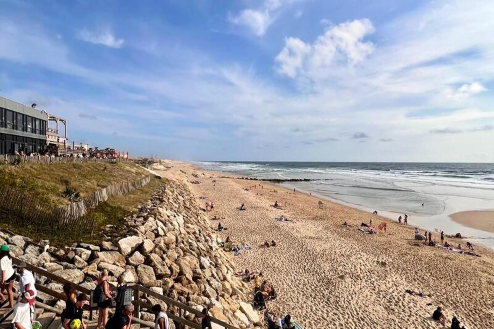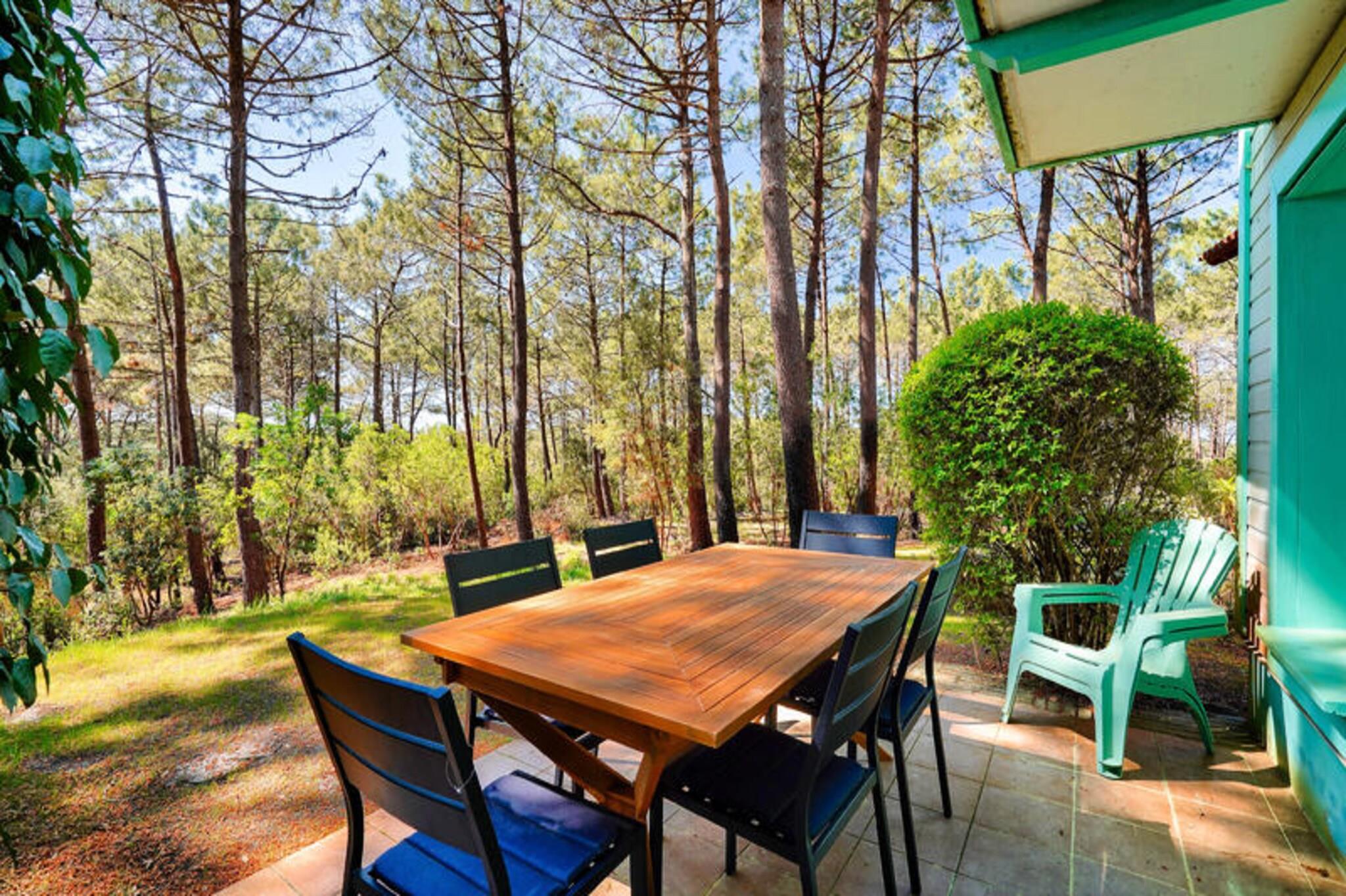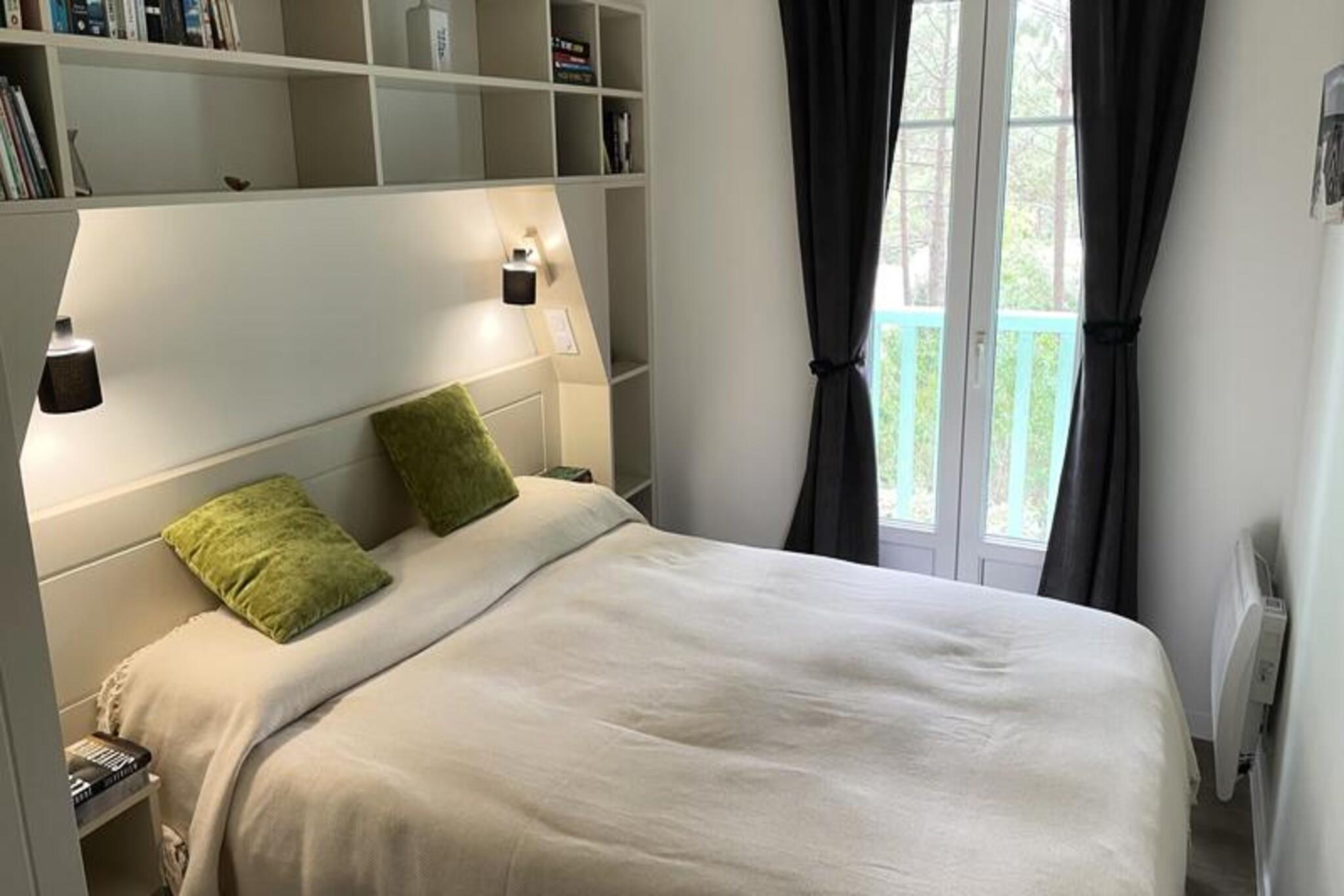 Beliggende midt i en fyrreskov på 4,6 hektar, tilbyder dette charmerende feriehus med 2 soveværelser i Lacanau Les Pins et afslappende tilflugtssted kun 2 km fra stranden. Ejendommen er en del af Village Lacanau og kan prale af farverig arkitektur, der er karakteristisk for Landes-regionen. Gæsterne kan nyde gratis adgang til stedets vandområde (swimmingpool + soppebassin), en beachvolleybane, en multisportsbane og meget mere. Bicy'cool tilbyder cykeludlejning, og Evolution 2 tilbyder aktiviteter for alle aldre, fra yoga til svømmeundervisning. Området er et paradis for cyklister med lange strækninger af strande, der er ideelle til surfing. Selve Lacanau by er også inden for rækkevidde. Mod et tillægsgebyr kan gæsterne få adgang til spa-området på en partnerfacilitet, som inkluderer rabat på massage og et gratis glas champagne til aftensmaden. Denne smagfuldt renoverede duplex har en stue med en sovesofa, et veludstyret køkken, to soveværelser, to badeværelser, et separat toilet, en terrasse, en have og parkering. Den sydvendte ejendom byder på smuk skovudsigt. Det store soveværelse har en dobbeltseng, det andet soveværelse har to enkeltsenge, og et kabineområde med køjesenge giver ekstra soveplads. På badeværelset er der bruser, badekar, elektrisk håndklædetørrer og hårtørrer. Bemærk venligst, at Wi-Fi, sengetøj, håndklæder og slutrengøring er alle tilgængelige mod et tillægsgebyr.