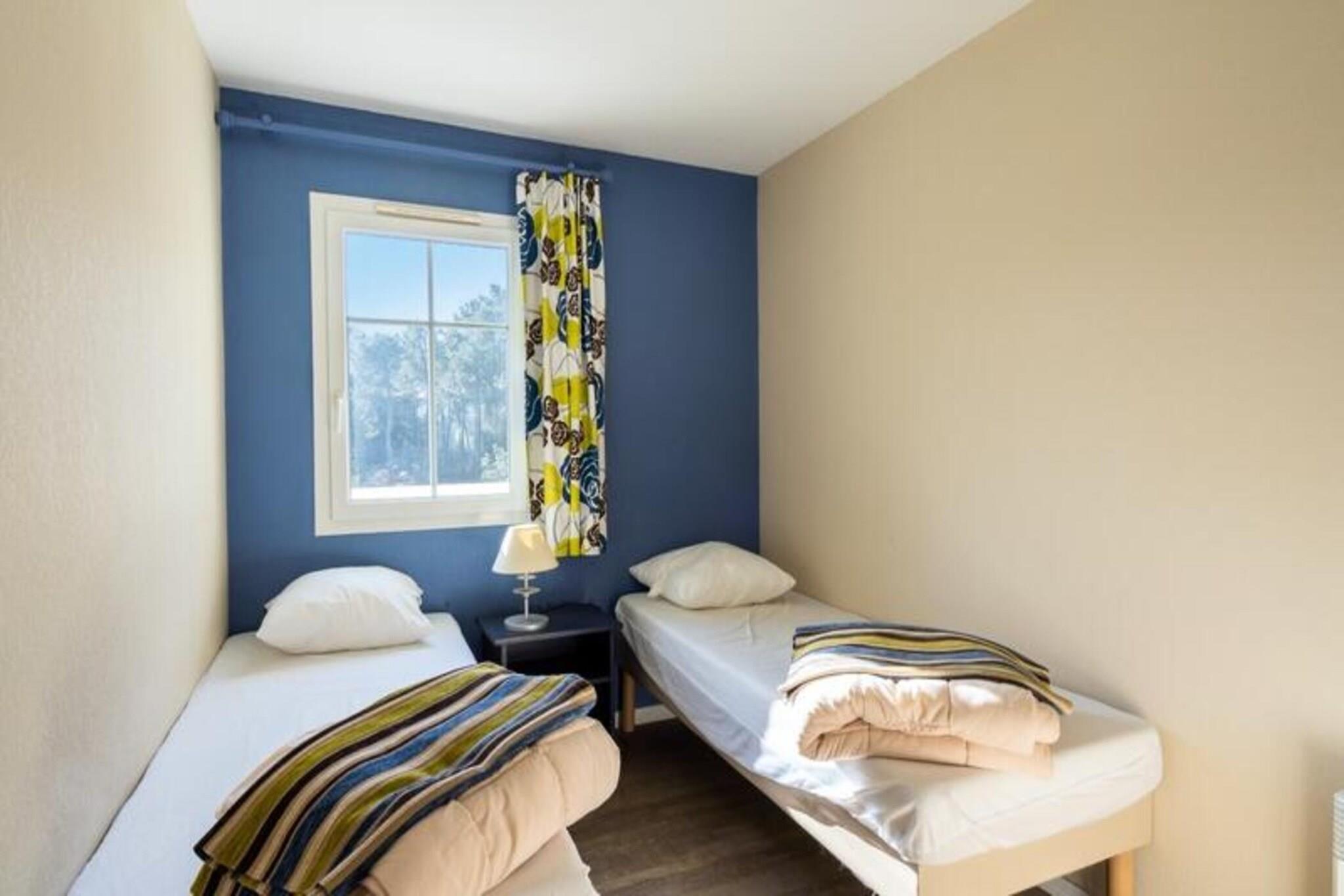 Beliggende i hjertet af en fyrreskov på 4,6 hektar, tilbyder dette charmerende feriehus et perfekt tilflugtssted for familier eller grupper på op til 6 gæster. Det har en komfortabel stue med en sovesofa (sover 2), to soveværelser - det ene med en dobbeltseng og det andet med to enkeltsenge - og et badeværelse med badekar-bruser. Hjemmet er ikke kæledyrsvenligt, men giver et afslappende miljø med sin private have, terrasse og gratis parkering for nemheds skyld. Beliggende kun 2 km fra de fantastiske strande i Lacanau, er feriehuset omgivet af to golfbaner og tilbyder nem adgang til en række aktiviteter. Gæsterne kan nyde gratis adgang til vandområdet, som omfatter en 400 m² stor swimmingpool og et soppebassin. Området har også en beachvolleybane, en multisportsbane, et legeområde for børn og en petanquebane. Cykelentusiaster vil elske at udforske områdets lange strandstrækninger og de nærliggende surfspots. Cykeludlejning er tilgængelig direkte på ejendommen. Feriehuset er udstyret med et halvåbent køkken, ideelt til at tilberede måltider med familie eller venner. Køkkenet har alle nødvendige faciliteter, og opholdsstuen giver et hyggeligt sted at slappe af. Boligen er desuden udstyret med separat toilet og praktisk vaskeplads. For et strejf af luksus kan du nyde rabatter på en nærliggende spa.