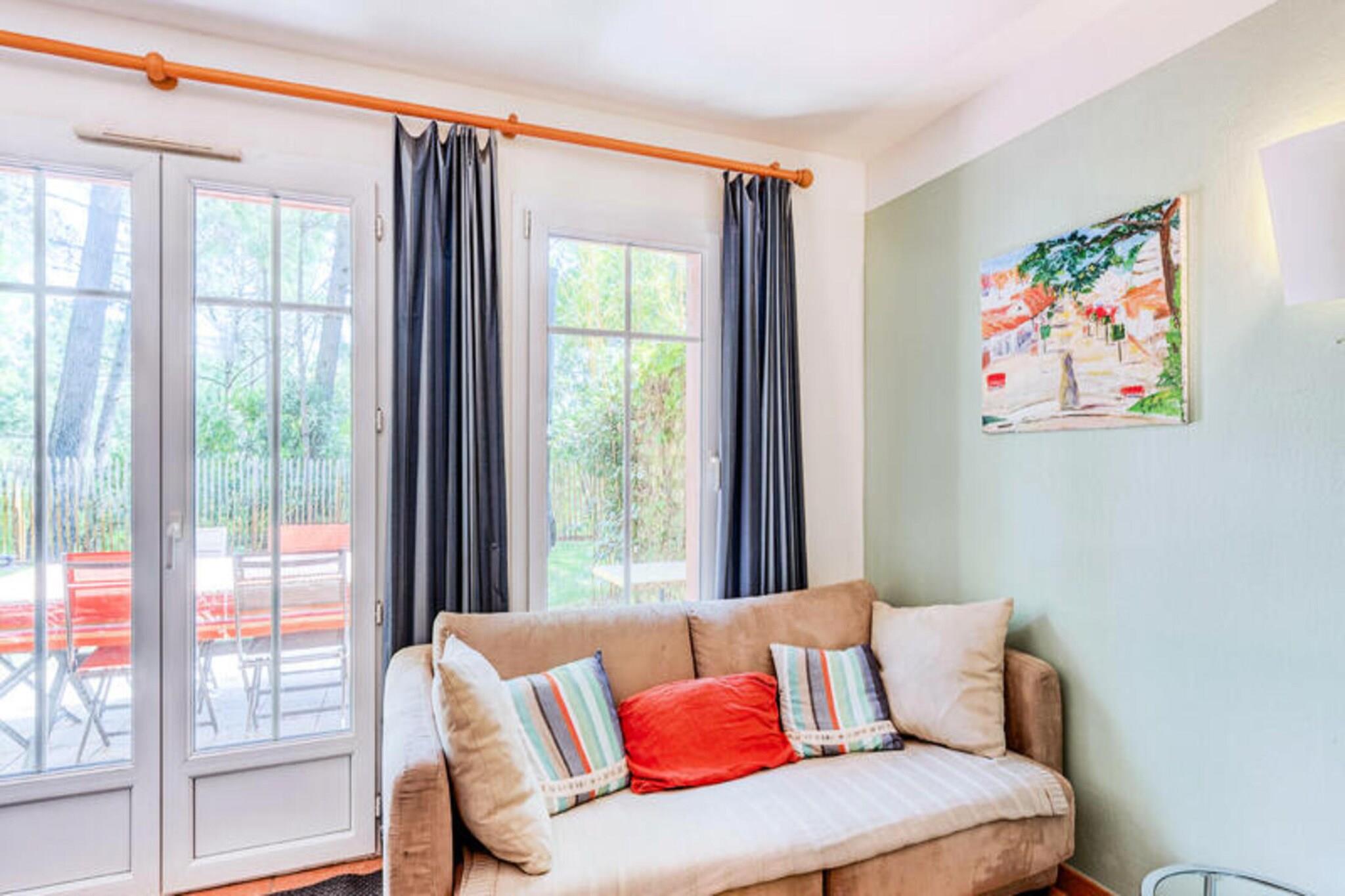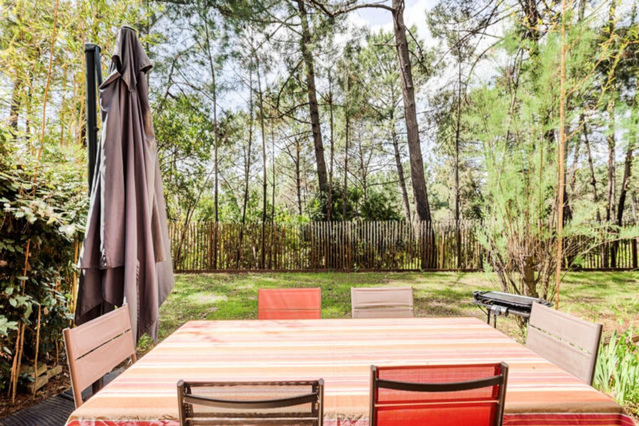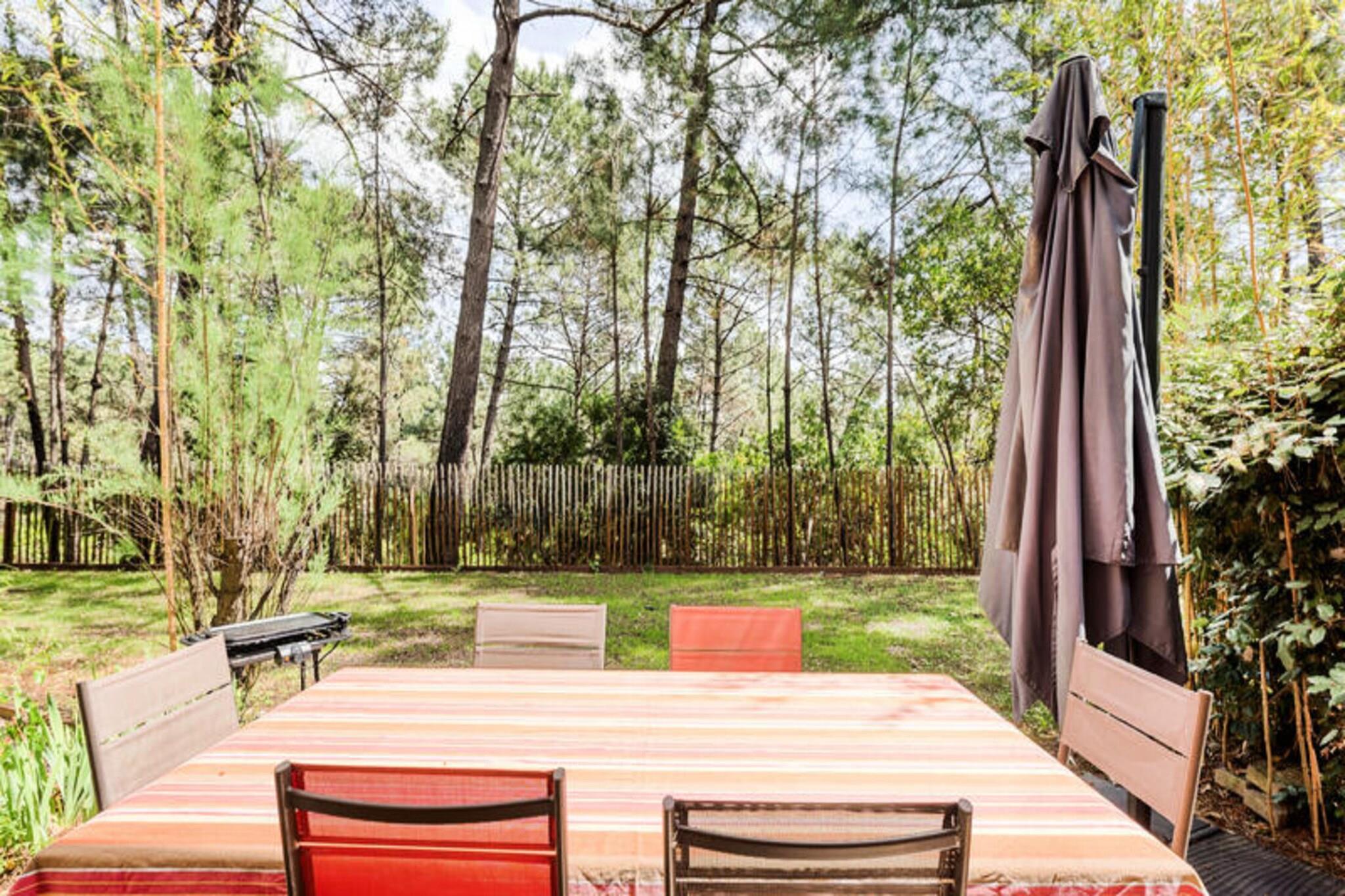 Dette livlige feriehus ligger i en 4,6 hektar stor fyrreskov kun 2 km fra strandene i Lacanau. Der er 2 sovev?relser, badev?relse med bruser og separat toilet. Den rummelige opholdsstue har en sofa og spisebord til seks. Dette k?ledyrsfrie hjem tilbyder en privat have, balkon med udsigt over skoven og er ideel til familier eller grupper. Der kr?ves et depositum for booking. Beliggende i La R?sidence Lacanau Les Pins, har g?sterne gratis adgang til en 400 m² stor pool, soppebassin, beachvolleybane og meget mere. Lacanau er kendt for sine surfstrande, cykelstier og lokale caf?er. Cykeludlejning og aktiviteter s?som yoga og sv?mmeundervisning er tilg?ngelige p? stedet. Huset har et fuldt udstyret amerikansk k?kken med k?leskab, ovn, mikroovn og opvaskemaskine. Badev?relset har h?ndkl?det?rrer og h?rt?rrer. Terrassen og haven tilbyder et fredeligt udend?rs tilflugtssted. Yderligere faciliteter s?som sengelinned, h?ndkl?der og Wi-Fi er tilg?ngelige mod et ekstra gebyr. Parkering er gratis p? stedet.