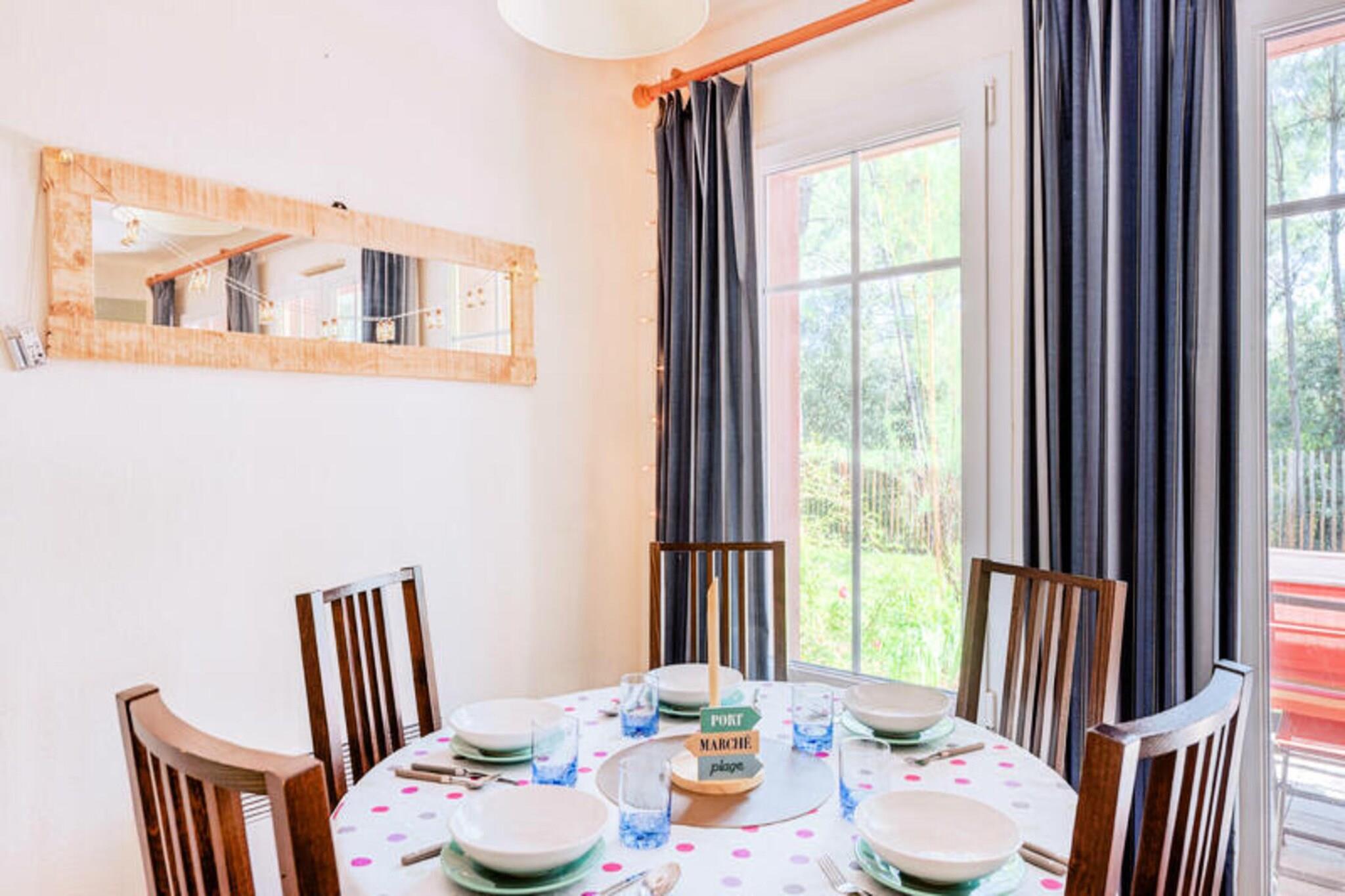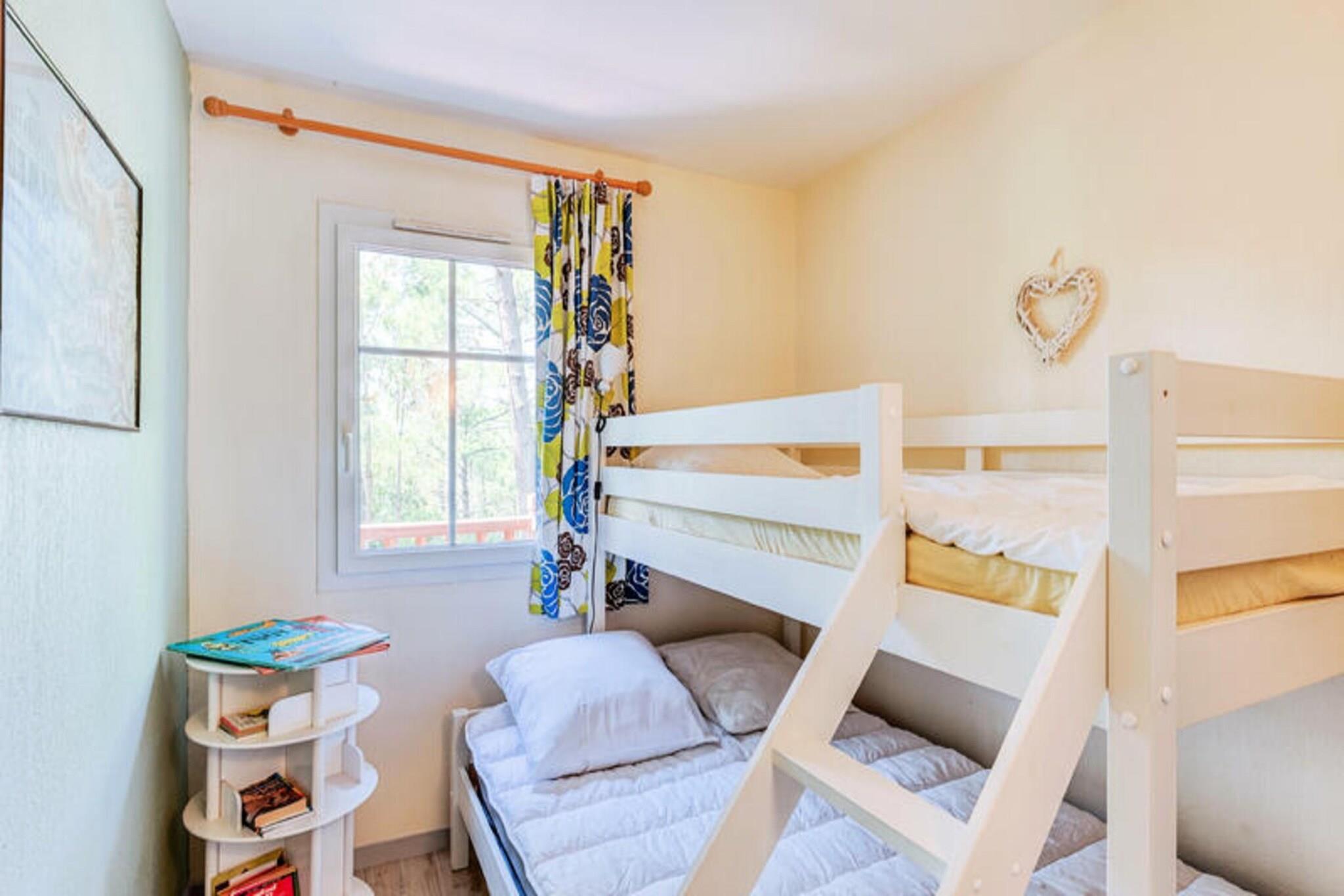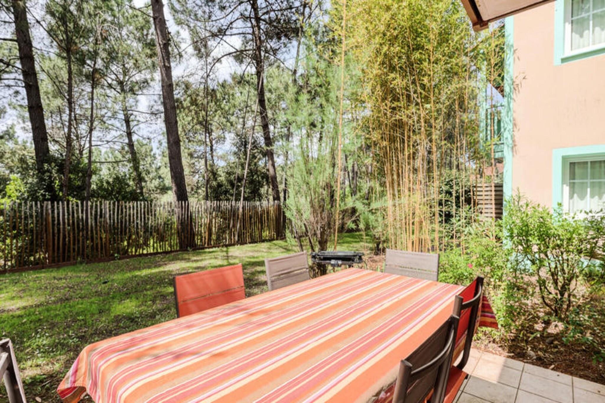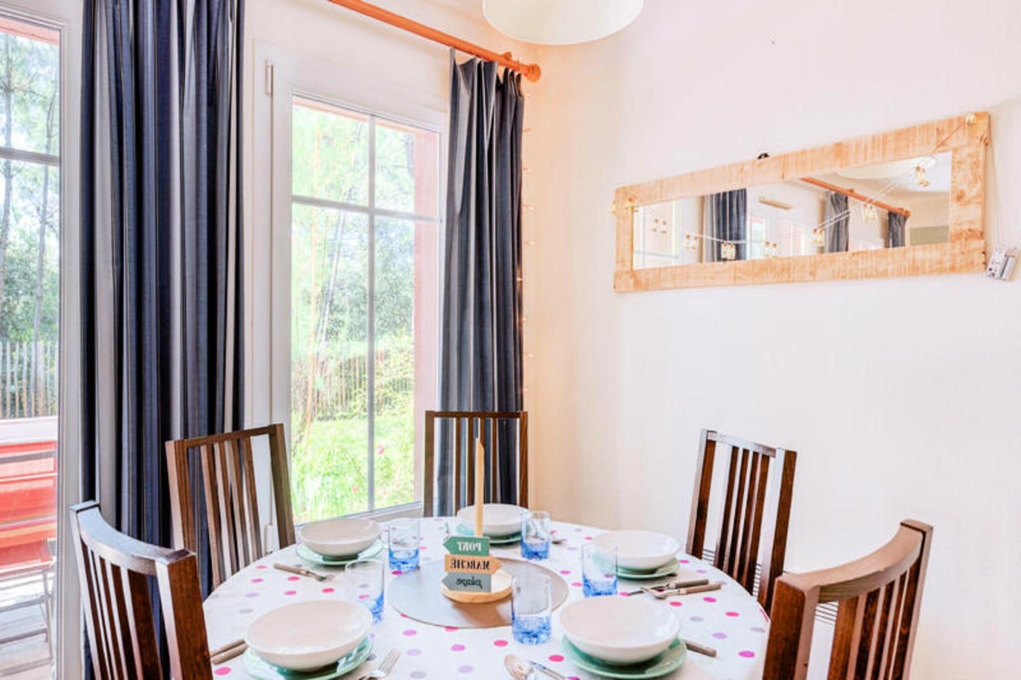 Dette livlige feriehus ligger i en 4,6 hektar stor fyrreskov kun 2 km fra strandene i Lacanau. Der er 2 sovev?relser, badev?relse med bruser og separat toilet. Den rummelige opholdsstue har en sofa og spisebord til seks. Dette k?ledyrsfrie hjem tilbyder en privat have, balkon med udsigt over skoven og er ideel til familier eller grupper. Der kr?ves et depositum for booking. Beliggende i La R?sidence Lacanau Les Pins, har g?sterne gratis adgang til en 400 m² stor pool, soppebassin, beachvolleybane og meget mere. Lacanau er kendt for sine surfstrande, cykelstier og lokale caf?er. Cykeludlejning og aktiviteter s?som yoga og sv?mmeundervisning er tilg?ngelige p? stedet. Huset har et fuldt udstyret amerikansk k?kken med k?leskab, ovn, mikroovn og opvaskemaskine. Badev?relset har h?ndkl?det?rrer og h?rt?rrer. Terrassen og haven tilbyder et fredeligt udend?rs tilflugtssted. Yderligere faciliteter s?som sengelinned, h?ndkl?der og Wi-Fi er tilg?ngelige mod et ekstra gebyr. Parkering er gratis p? stedet.