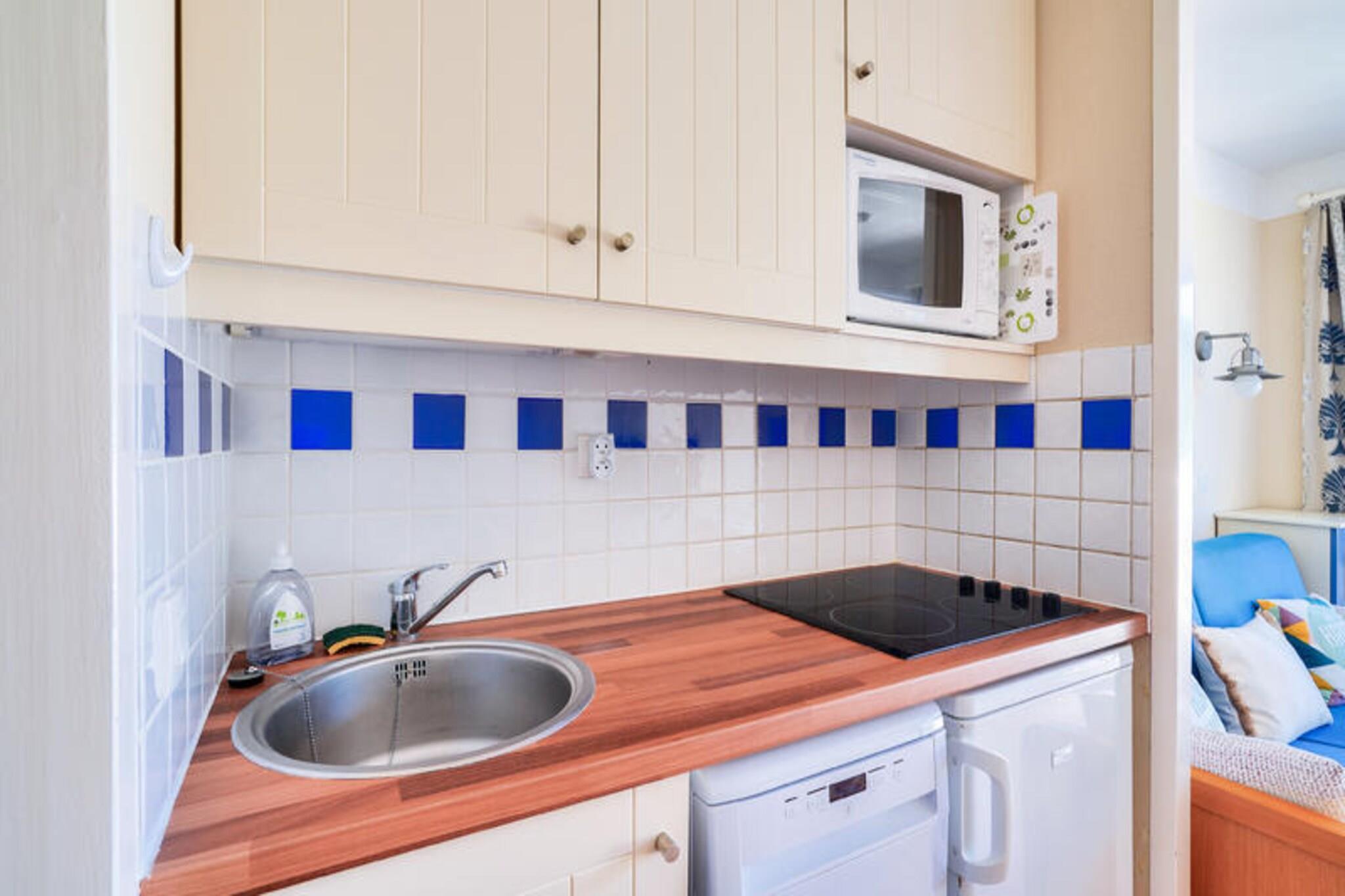 Beliggende i en fredelig 5 hektar stor fyrreskov tilbyder denne charmerende ferielejlighed et hyggeligt tilflugtssted for op til fire gæster. Lejligheden har et soveværelse med to enkeltsenge, en komfortabel sovesofa i opholdsstuen og en fredfyldt balkon med udsigt over skoven. Gæsterne kan nyde moderne bekvemmeligheder såsom gratis udendørs parkering og valgfri kæledyrsvenlig indkvartering mod et ekstra gebyr. Ejendommen inkluderer også adgang til en stor udendørs swimmingpool og soppebassin, der er sæsonåbent fra maj til september. Beliggende kun 2 km fra sandstrandene i Lacanau og tæt på to kendte golfbaner, er denne ejendom et paradis for udendørsentusiaster. Cykelentusiaster vil sætte pris på de nærliggende naturskønne stier, mens vandsportselskere kan nyde surfing, paddleboarding eller bodyboarding. Det omkringliggende område byder på en række familievenlige aktiviteter, herunder yogaklasser, legepladser og en petanquebane. Gæsterne kan også udforske de charmerende lokale caféer og markeder, der er perfekte til at prøve regionale specialiteter. Lejligheden indeholder et veludstyret halvåbent køkken, komplet med spisebord og stole til fire. Badeværelset har et badekar med brusesøjle, en elektrisk håndklædetørrer og rigelig opbevaringsplads. Et separat toilet tilføjer bekvemmelighed for gæsterne. Yderligere tjenester såsom Wi-Fi, babysæt, sengetøj og håndklæder er tilgængelige mod et nominelt gebyr, hvilket sikrer et behageligt og stressfrit ophold.