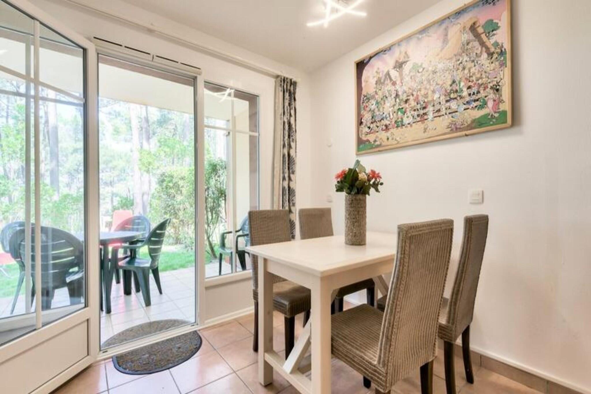 Dette charmerende feriehus ligger i en 5 hektar stor fyrreskov og tilbyder et fredfyldt og afslappende milj?. Indkvarteringen har en komfortabel stue med en sofa og en k?jeseng, perfekt til familier. Sovev?relset har en dobbeltseng, og badev?relset har bruser med separat toilet. K?ledyr er tilladt, og der kan forekomme till?gsgebyrer. Der tilbydes gratis udend?rs parkering, og g?sterne kan nyde en privat terrasse og have til afslapning. Lacanau, der ligger mellem Lacanau Oc?an og Lacanau, er et ideelt sted for udend?rsentusiaster. Omr?det byder p? cykelstier, uber?rte strande kun 2 km v?k og to golfbaner i n?rheden. Vandsport s?som surfing, paddleboarding og bodyboarding er popul?re i omr?det. Boligen ligger t?t p? den pulserende bymidte, hvor du finder caf?er, markeder og spisemuligheder, hvilket skaber en perfekt ferieramme. Feriehuset er udstyret med et fuldt ?bent k?kken, ideelt til at tilberede m?ltider, og tilbyder en komfortabel spiseplads. Nyd fordelene ved et velholdt badev?relse og separat toilet. Boligen har ogs? en swimmingpool, soppebassin, beachvolleybane og meget mere. G?ster kan v?lge yderligere tjenester, s?som et babys?t, h?ndkl?der og slutreng?ring.