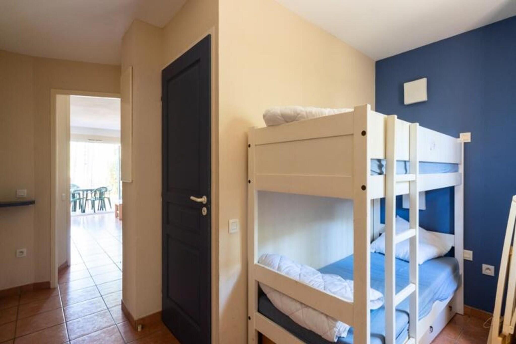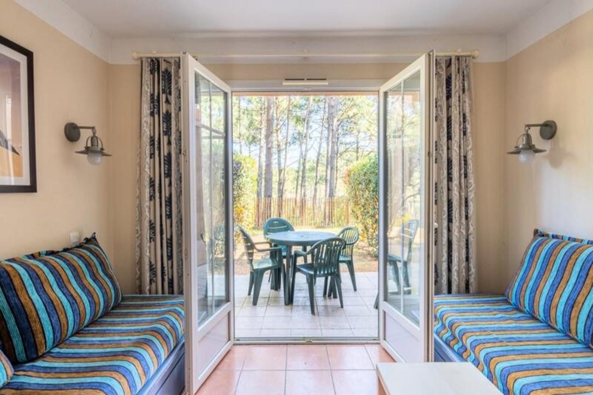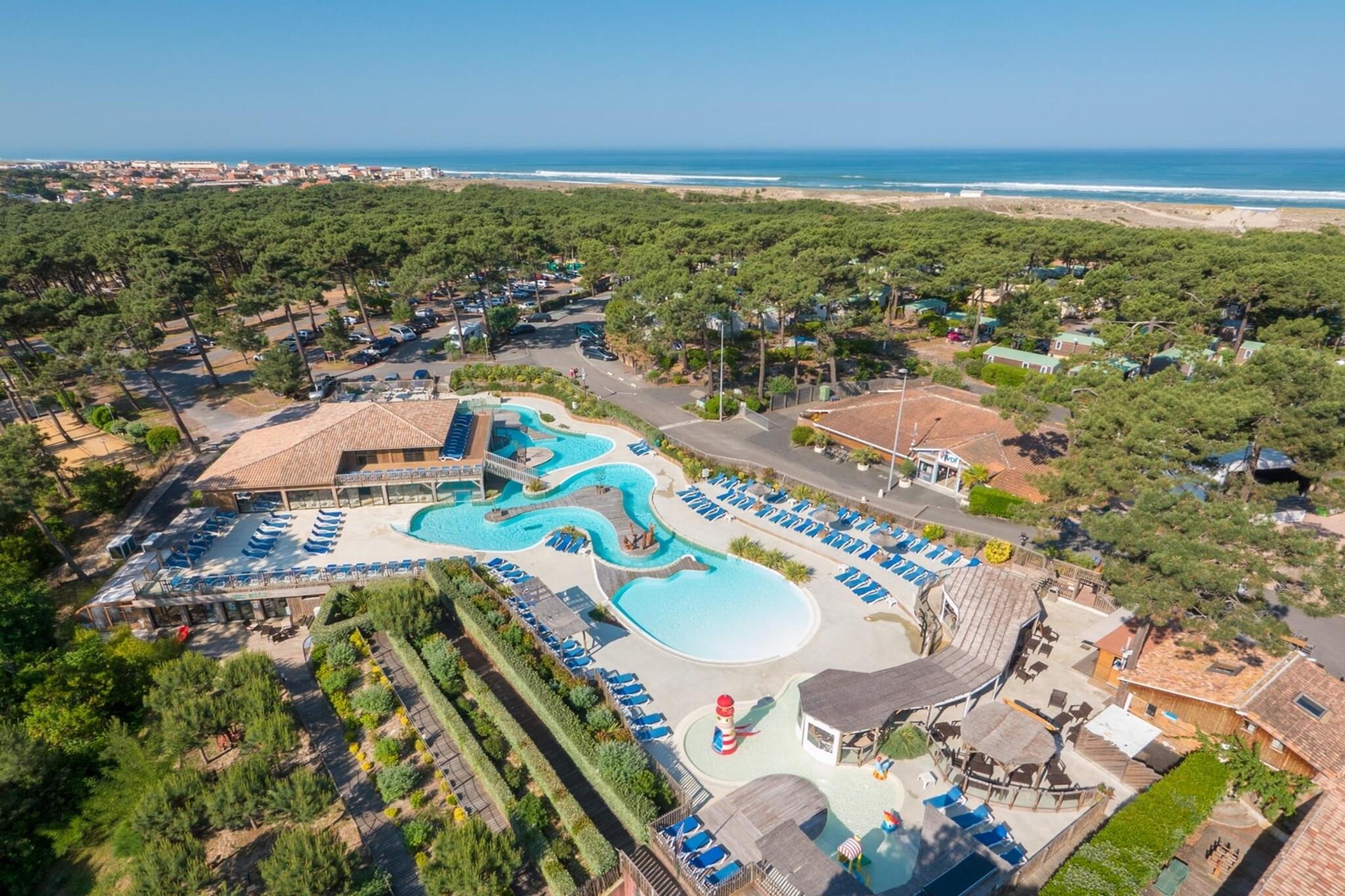 Dette hyggelige feriehus ligger i en fredelig 5 hektar stor fyrreskov og tilbyder en fredfyldt flugt. I stuen er der to enkeltb?nke og en udtr?ksseng, perfekt til familier. Kahytsomr?det har to enkeltk?jesenge, og badev?relset har badekar med separat toilet. K?ledyr er tilladt, og gratis udend?rs parkering er tilg?ngelig, afh?ngigt af tilg?ngelighed. Beliggende kun 2 km fra stranden, er boligen ideel for strandg?ngere, surfere og vandsportsentusiaster. Omr?det byder ogs? p? gode cykelstier sammen med to n?rliggende golfbaner. G?sterne kan nyde aktiviteter s?som yoga, sv?mmeundervisning og cykeludlejning fra Bicy'cool. Ejendommen har en beachvolleybane, multisportsbane, legeplads og petanquebane for ekstra sjov. Boligen indeholder et ?bent k?kken med moderne hvidevarer, en privat terrasse og en have til udend?rs afslapning. Yderligere tjenester s?som sengelinned og h?ndkl?der er tilg?ngelige mod et till?gsgebyr. G?sterne kan nyde det s?sonbetonede vandomr?de med swimmingpool og soppebassin, perfekt til at k?le af efter en dag med aktiviteter.