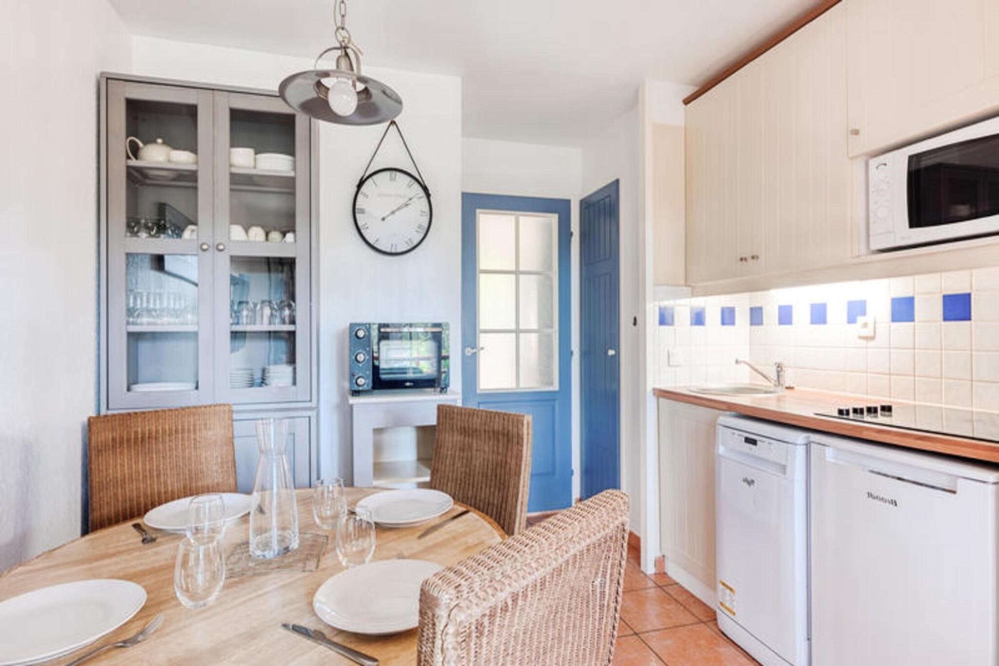 Beliggende i en rolig fyrreskov tilbyder denne charmerende lejlighed en fredelig flugt for op til fire gæster. Nyligt renoveret og gennemtænkt designet, det har en hyggelig opholdsstue med en sovesofa til to, et halvåbent køkken og et komfortabelt soveværelse med to enkeltsenge. Nyd skovudsigten fra den østvendte altan. Ejendommen er kæledyrsvenlig (ekstra gebyrer), og gratis udendørs parkering er tilgængelig, afhængigt af tilgængelighed. En swimmingpool og soppebassin, åben fra maj til september, bidrager til appellen, hvilket gør det til et ideelt sted for afslapning. Beliggende kun 2 km fra stranden, er denne ejendom perfekt for naturelskere og eventyrlystne. Udforsk de naturskønne cykelstier, nærliggende golfbaner og muligheder for vandsport som surfing og paddleboarding. Lokalområdet byder også på charmerende caféer, markeder og butikker, alt sammen inden for en kort køretur eller cykeltur. De frodige omgivelser og nærheden til Lacanau Ocean sikrer en dejlig blanding af ro og aktivitet. Indenfor finder du et veludstyret køkken med moderne hårde hvidevarer, et spisebord med plads til fire og et badeværelse med badekar. Wi-Fi, sengetøj og håndklæder er tilgængelige mod et ekstra gebyr, og valgfri tjenester omfatter babyudstyr og slutrengøring. Med sin fredfyldte beliggenhed og fremragende faciliteter giver denne lejlighed en uforglemmelig ferieoplevelse.